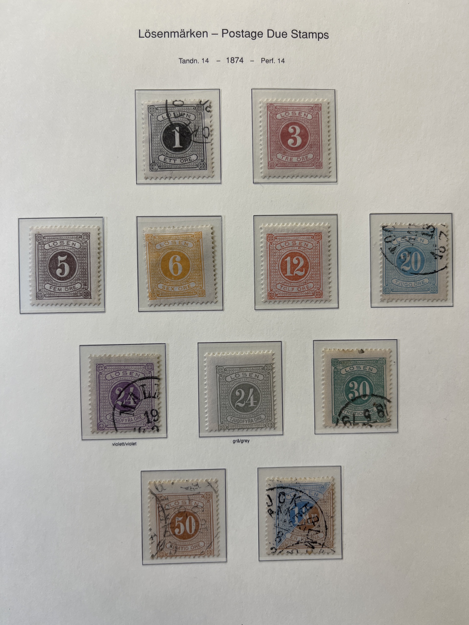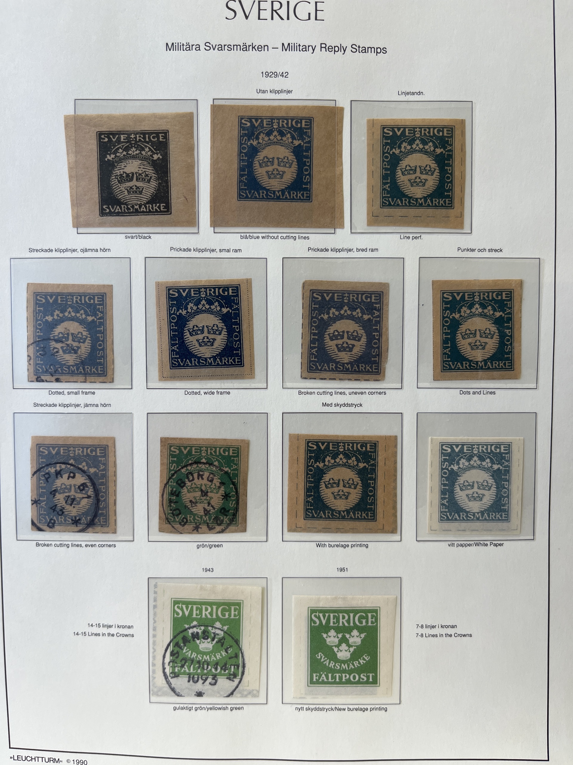 Sweden. Collection ★★/★/⊙ on leaves with postage due stamps, official stamps and military reply stamps. The entire lot is presented at www.philea.se.