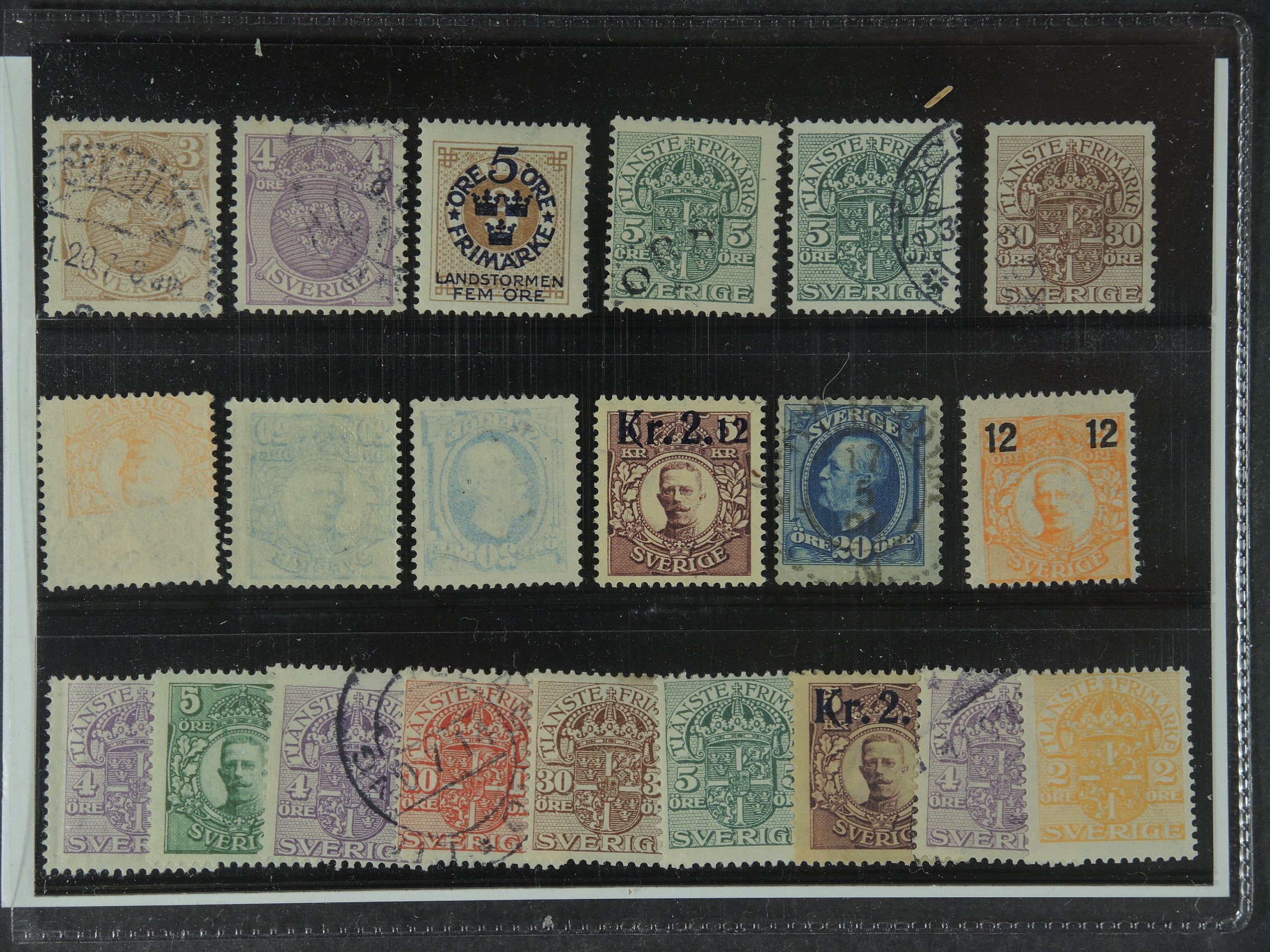 Sweden. ★★/⊙ 1911–1919. Different watermarks, etc. All different, e.g. F 56v2, 57v2, 66v1, 73cx, 74cx, 107cz, Tj30vm, Tj44cx, Tj52cx. Mostly good quality. SEK > 4000 (15)