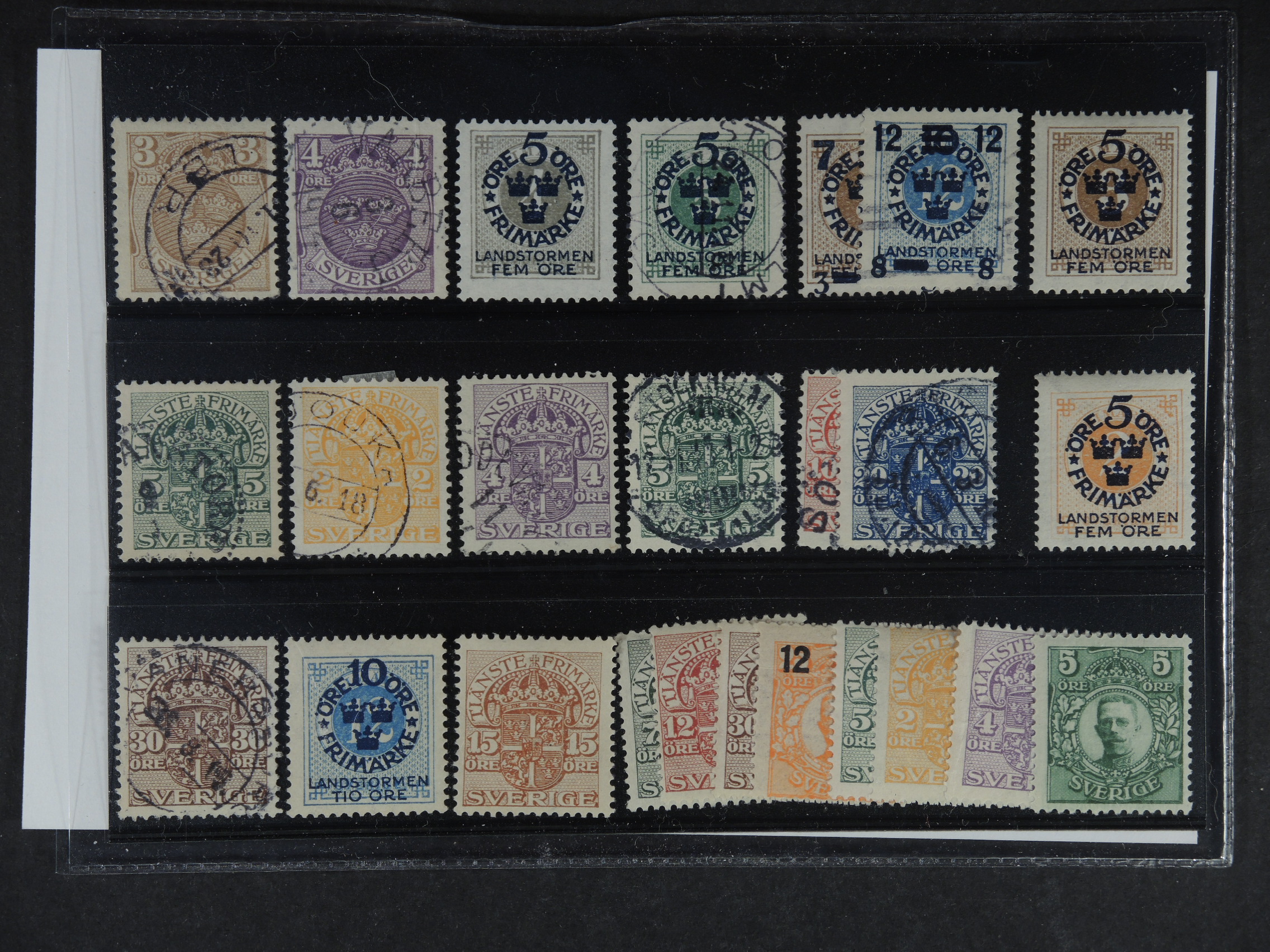Sweden. ★★/★/⊙ 1917–1919. Differing watermarks. All different, e.g. F 73–74cx, 105cx, 107cz, 126cz, Tj30vm, Tj33vm, Tj44cx. Mostly good quality. F 3455 (25)