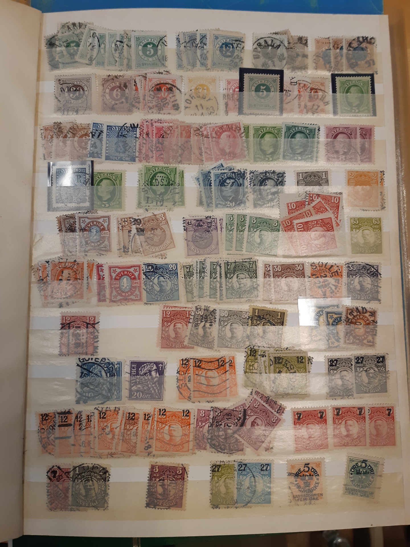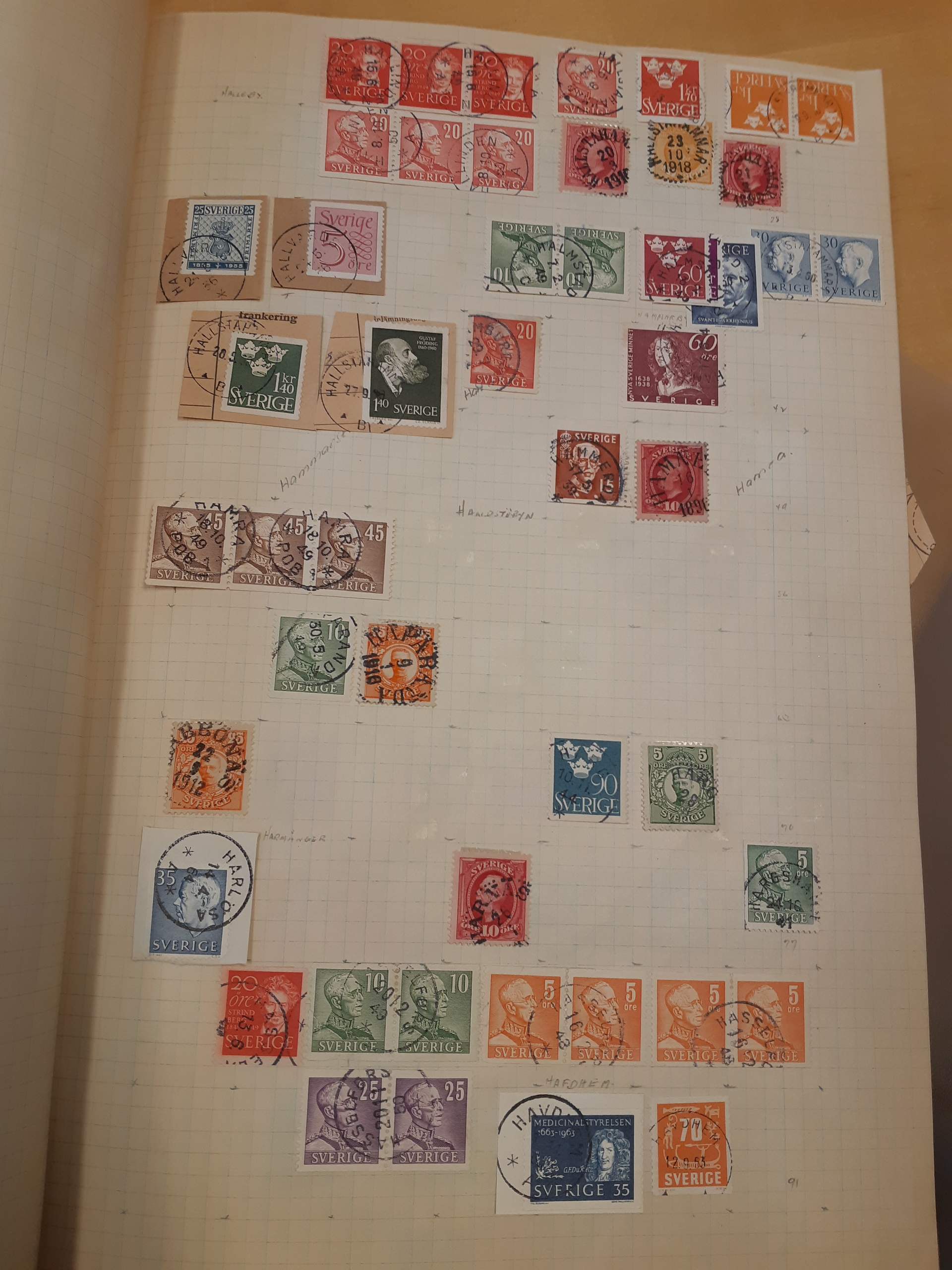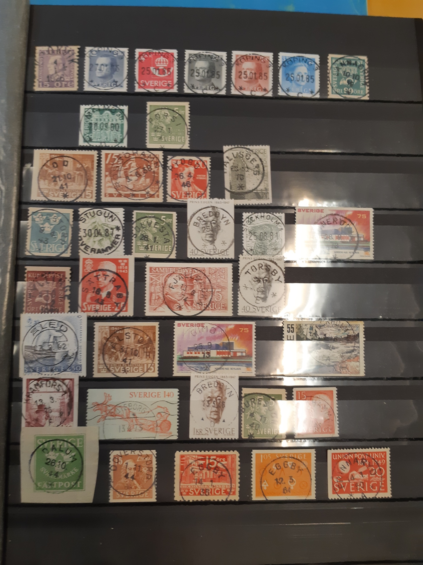 Sweden. Cancellations, collection/accumulation mostly Circle type–1980 in two stockbooks and on leaves in two folders. On/off paper, readable–superb.