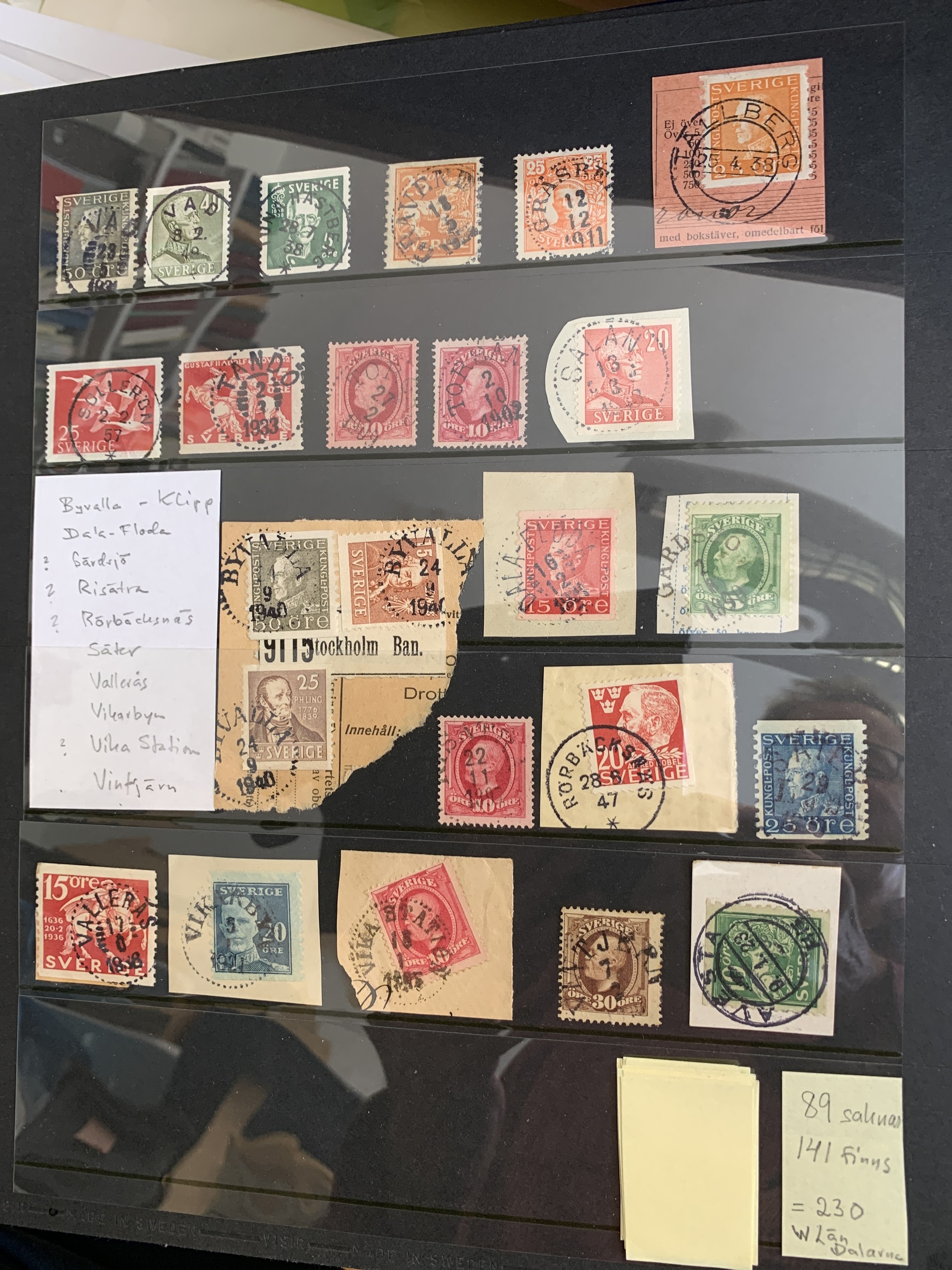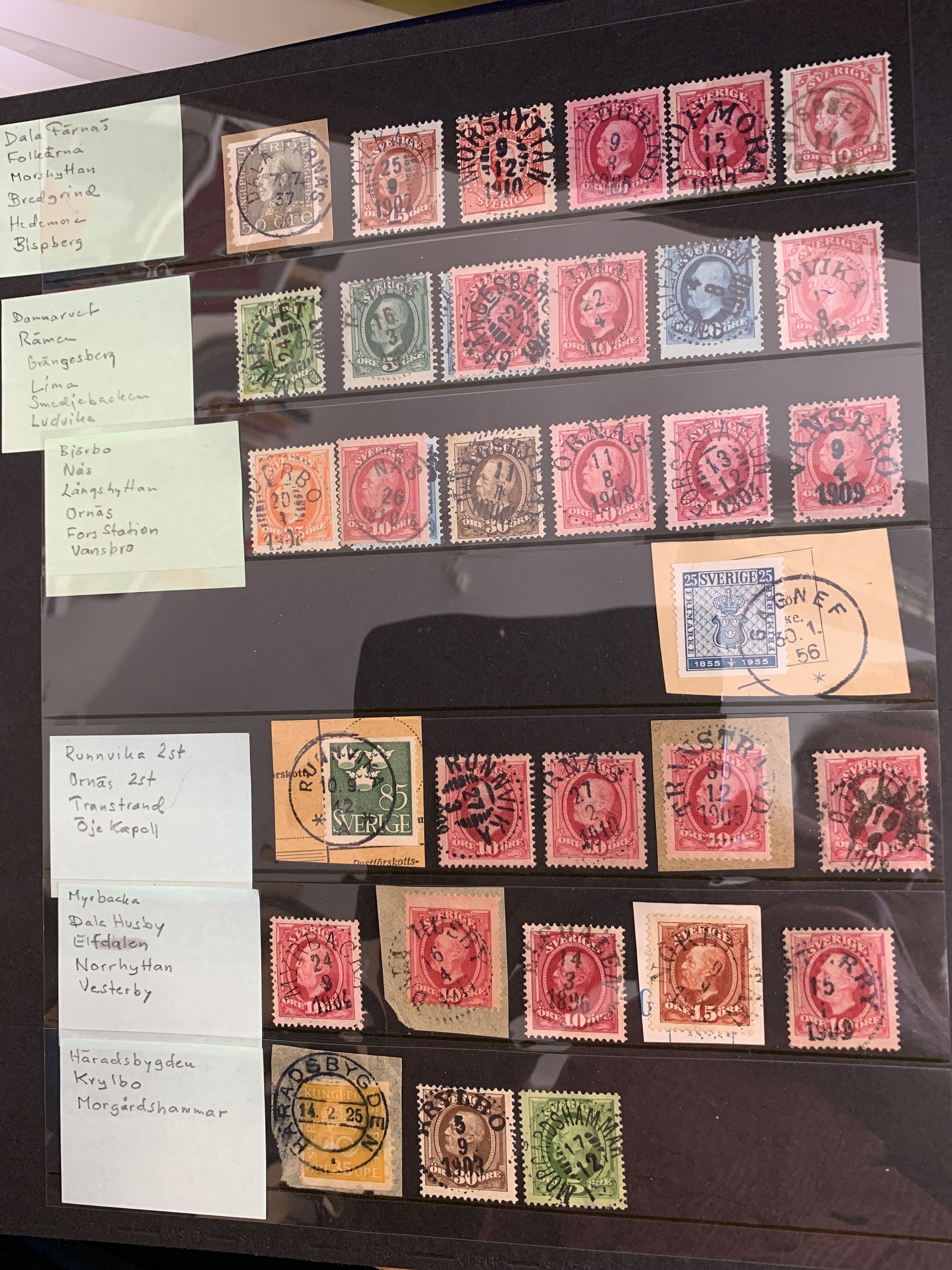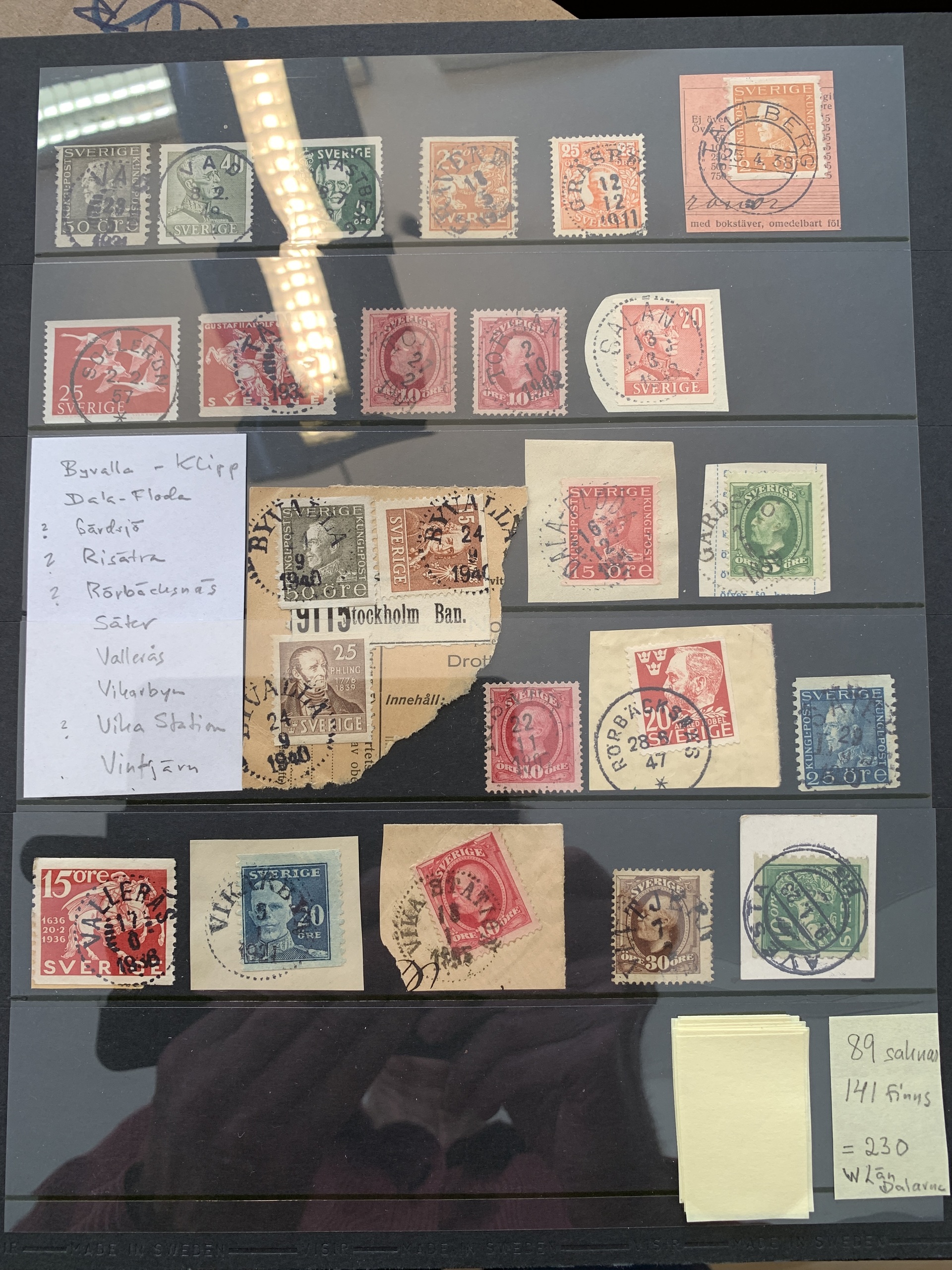 Sweden. Cancellations. Collection with cancellations from Dalarna/Dalecarlia in blue Visir album with slip case. 318 stamps, including cut pieces and ten covers. Please see a selection of scans at www.philea.se.