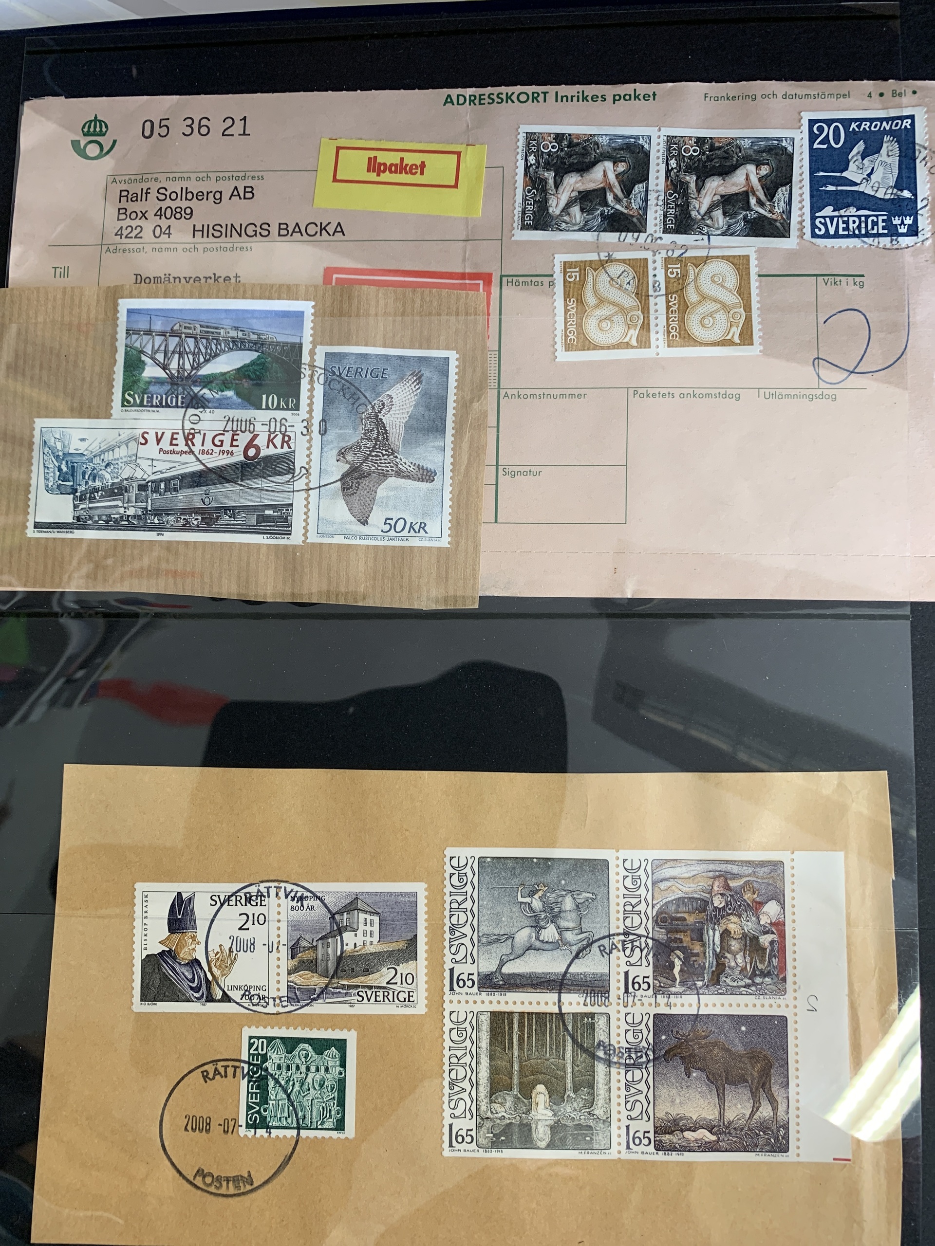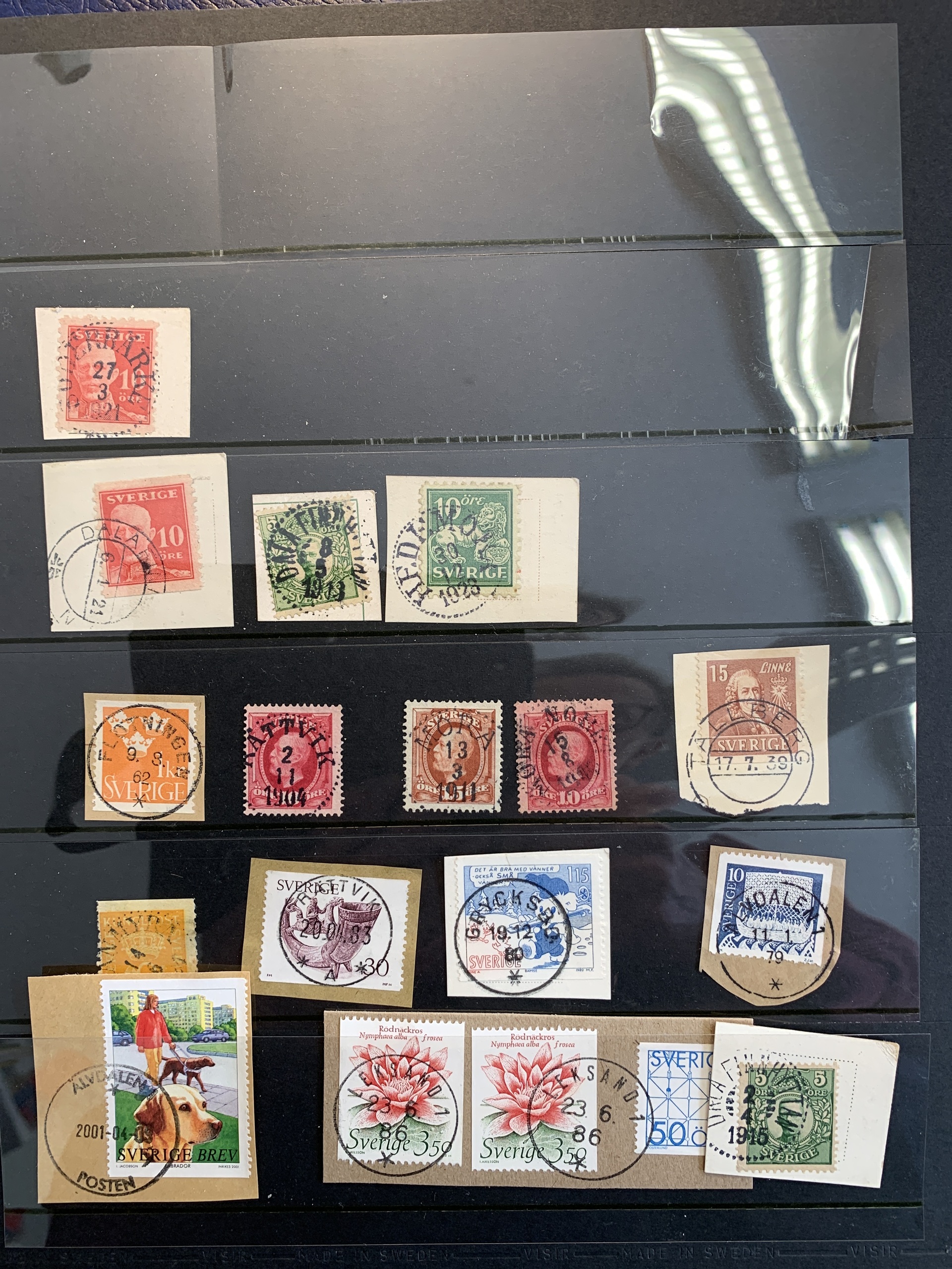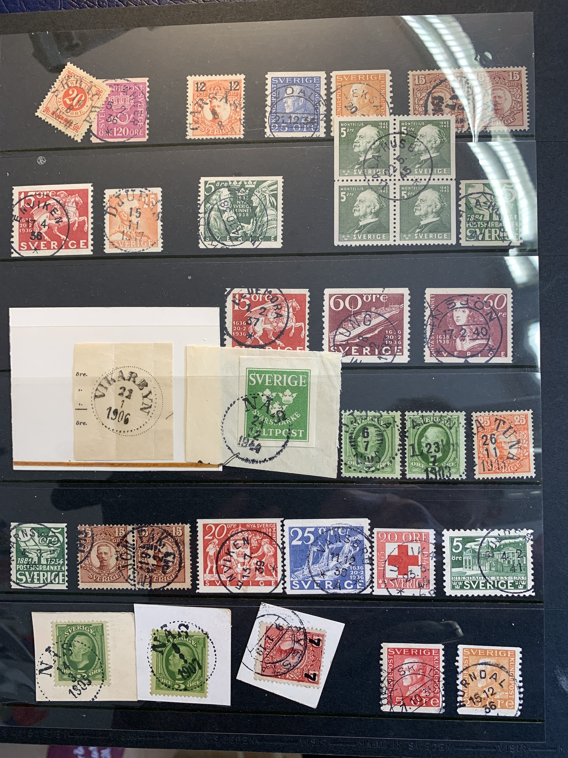 Sweden. Cancellations. Collection with cancellations from Dalarna/Dalecarlia in blue Visir album with slip case. 318 stamps, including cut pieces and ten covers. Please see a selection of scans at www.philea.se.