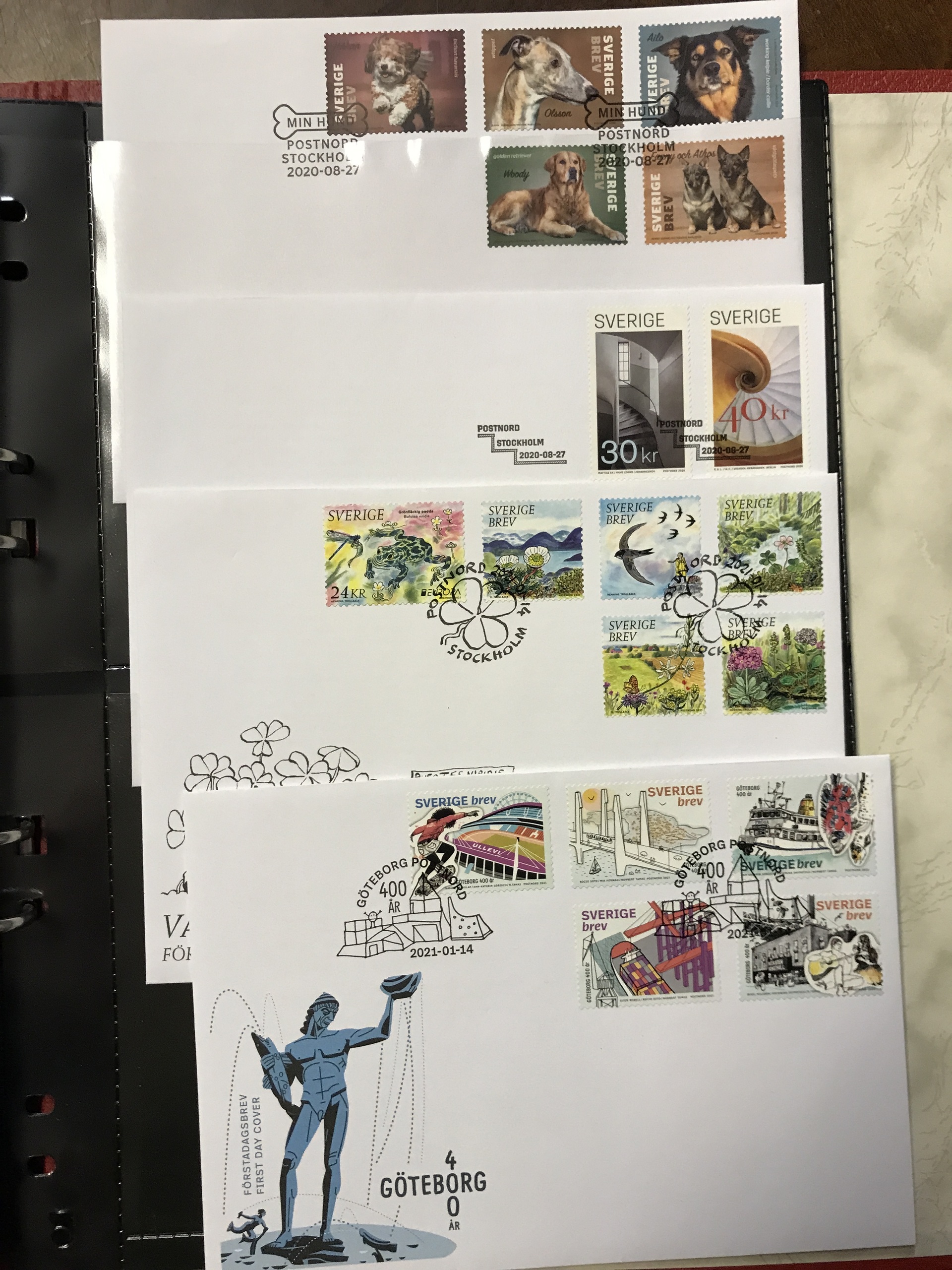 Sweden. FDCs. Collection 1941–2021 (January) in seven binders + five bindes with various covers and cards old–modern. E.g. 23.10.61 BB and various vignettes, etc. Please see a selection of scans at www.philea.se. Approx. 18 kg. (770)