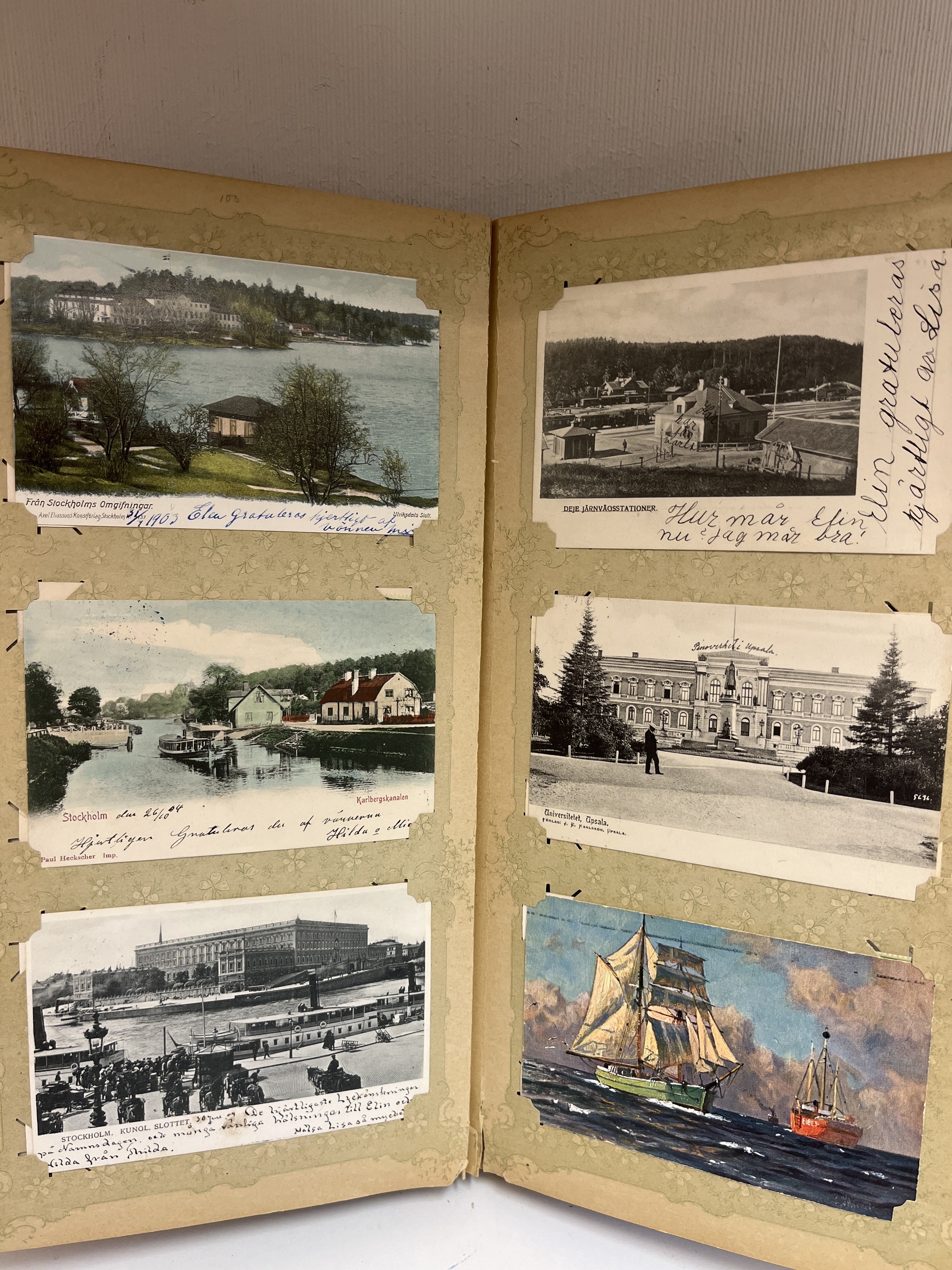 Sweden. Picture postcards, lot most 1902–1907 in album. Including several nice cards from the Stockholm archipelago e.g. Sandhamn. Some foreign cards are also included. (300)