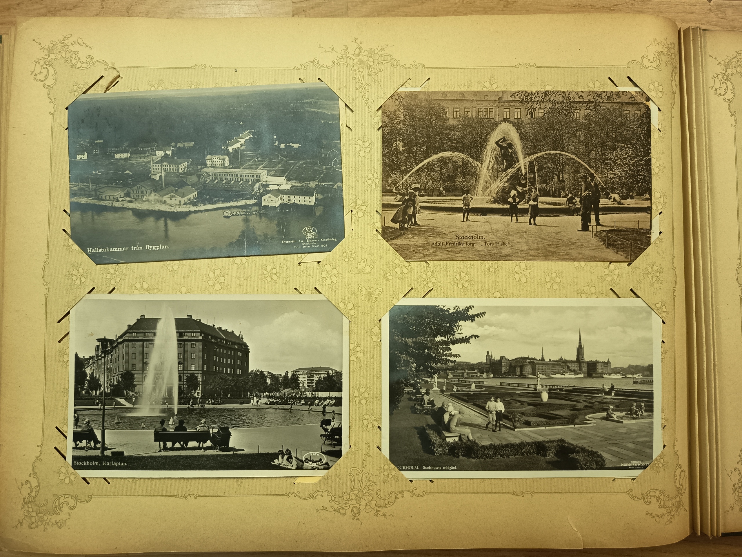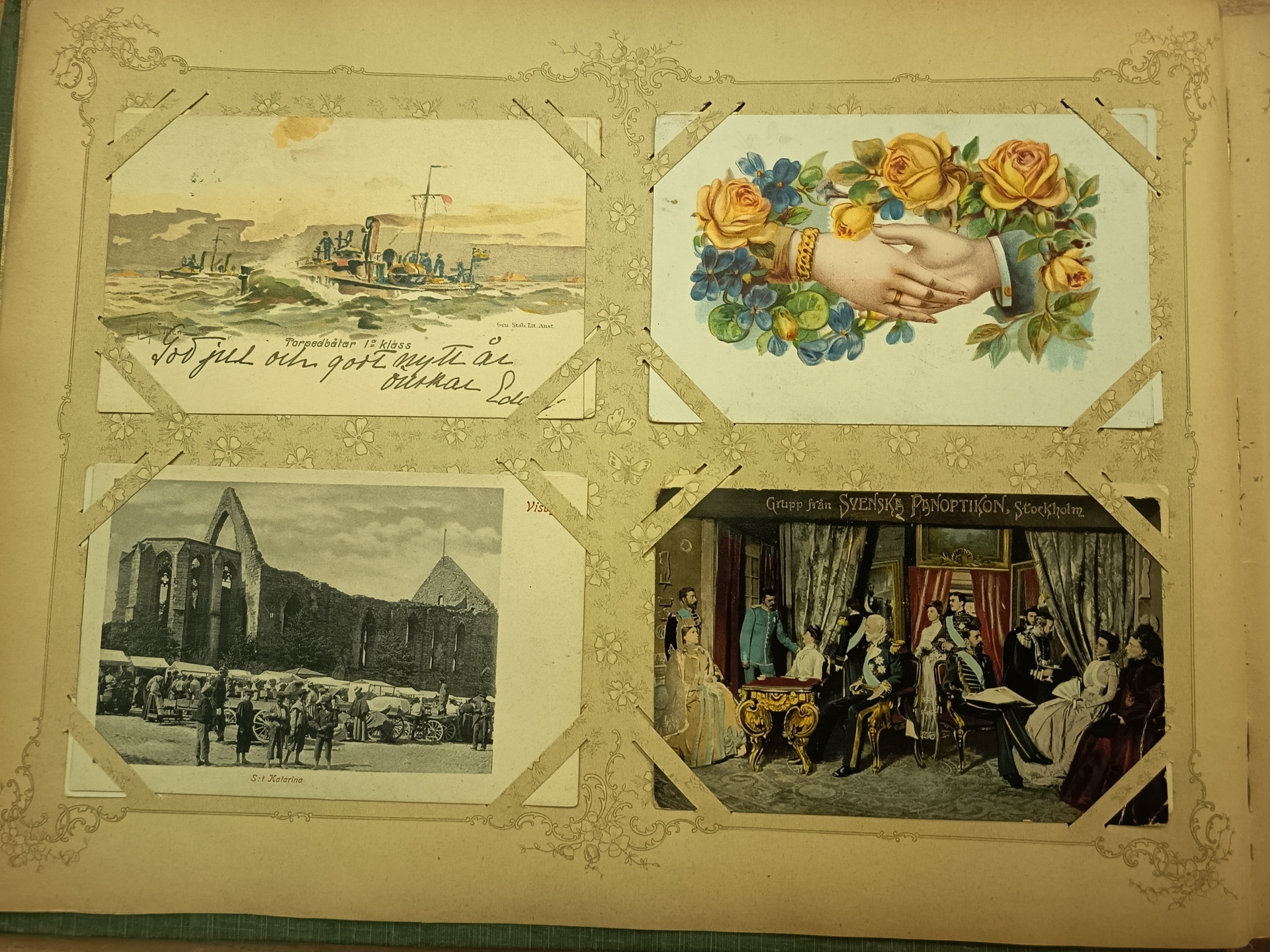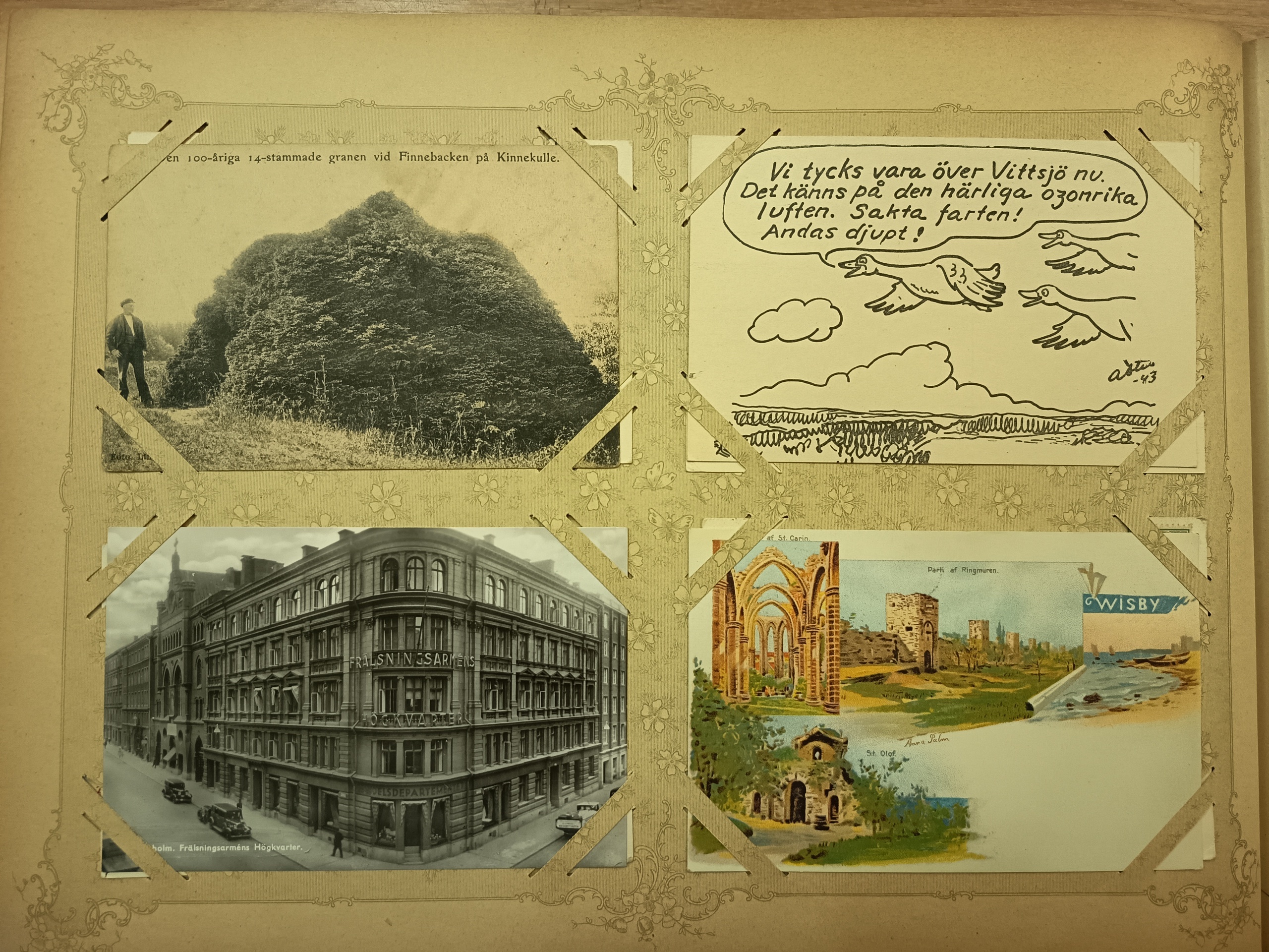 Sweden. Picture postcards. Postcard album mostly Sweden topo, greetings and thematic 1900–1950. Please see a selection of scans at www.philea.se. Mostly good quality. (320)