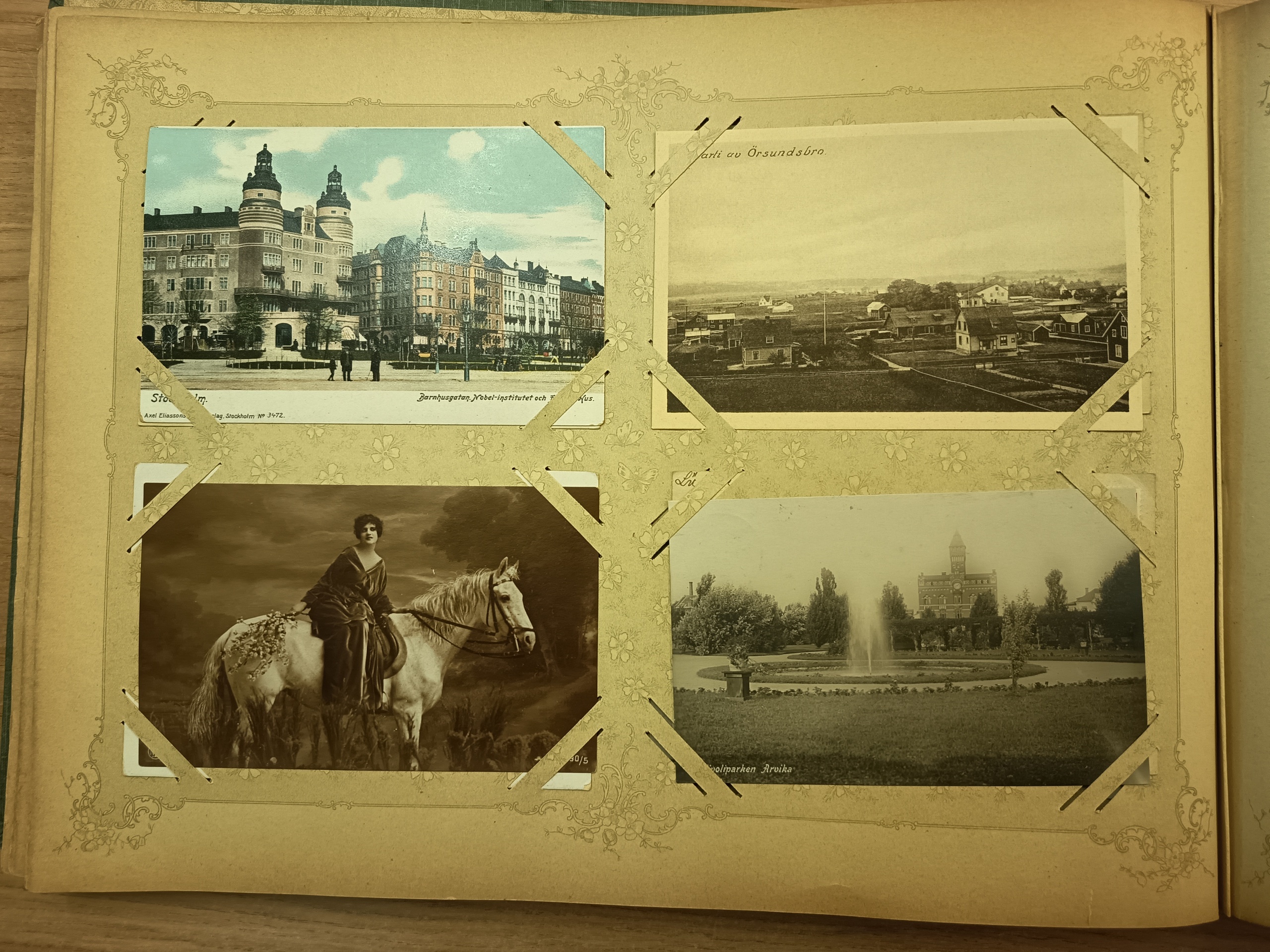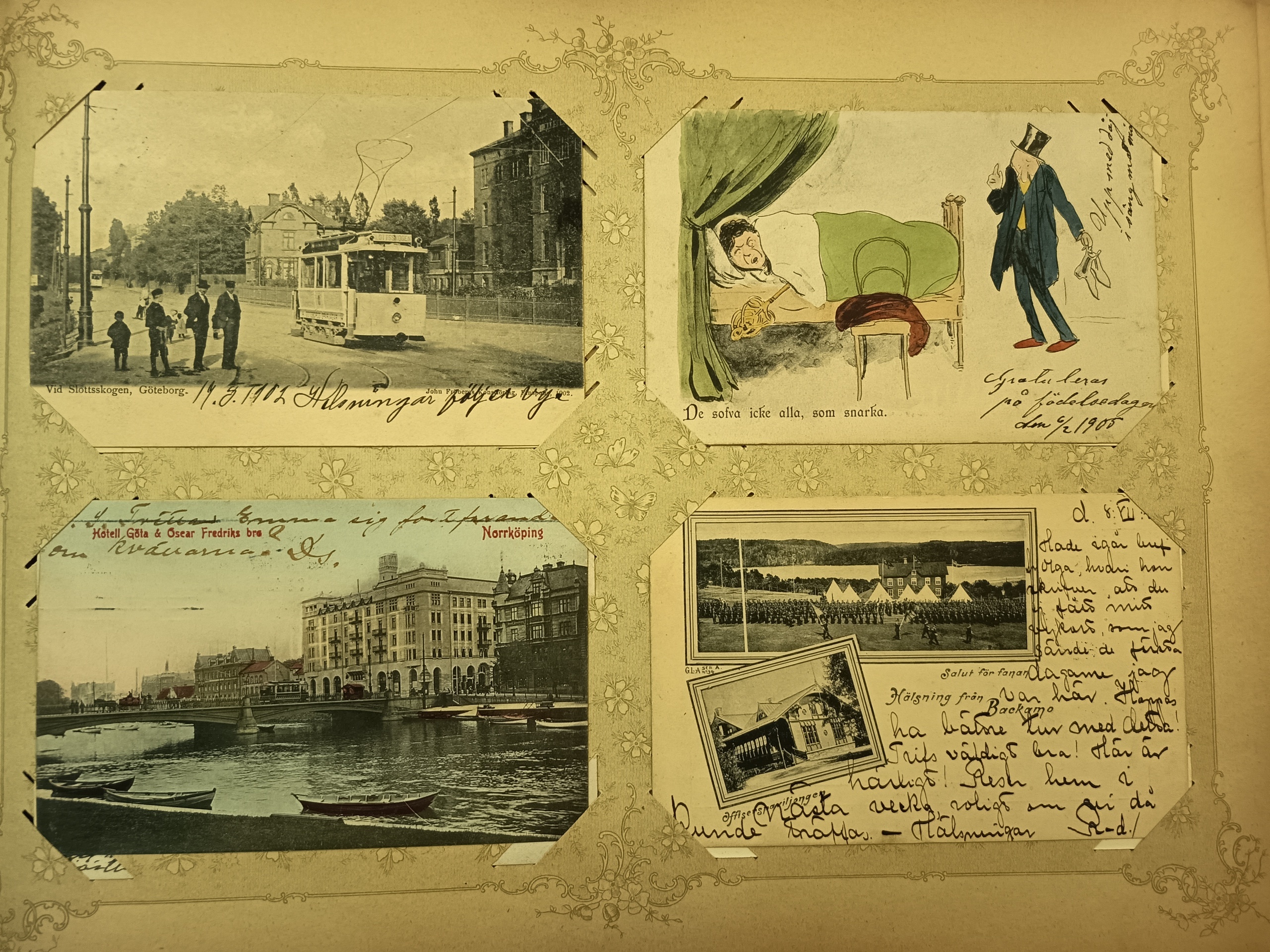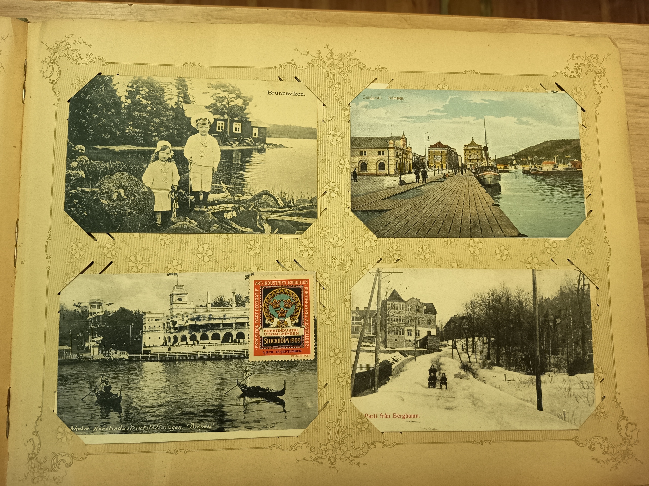 Sweden. Picture postcards. Postcard album mostly Sweden topo, greetings and thematic 1900–1950. Please see a selection of scans at www.philea.se. Mostly good quality. (320)
