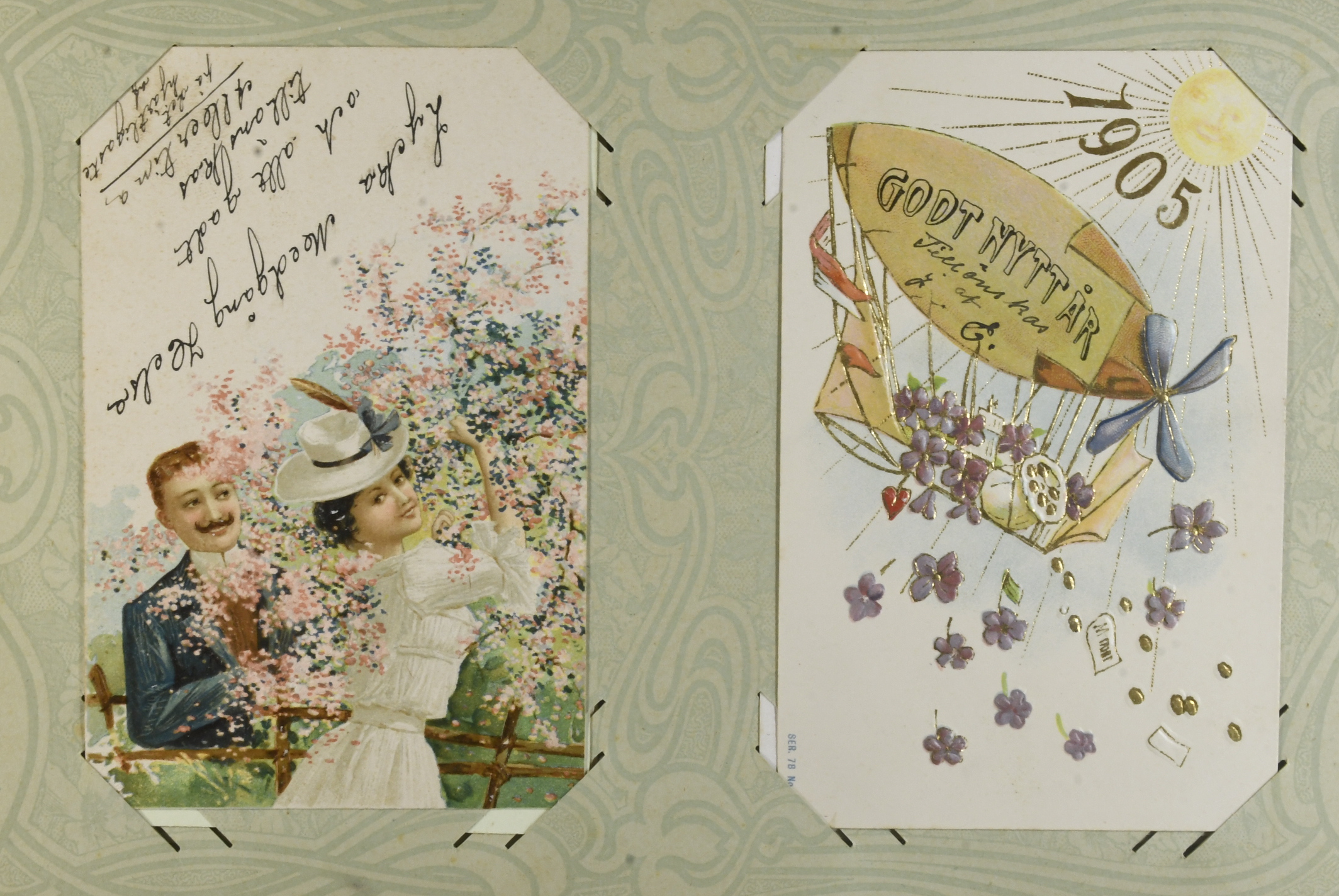 Sweden. Picture postcards, accumulation 1900–1915 in album. 96 coloured postcards, mostly celebration of holidays, birthdays or important private events. Also a number of topographic cards from Stockholm with surroundings incl. a very nice material. Please see a selection of scans at www.philea.se. Mostly fine quality.