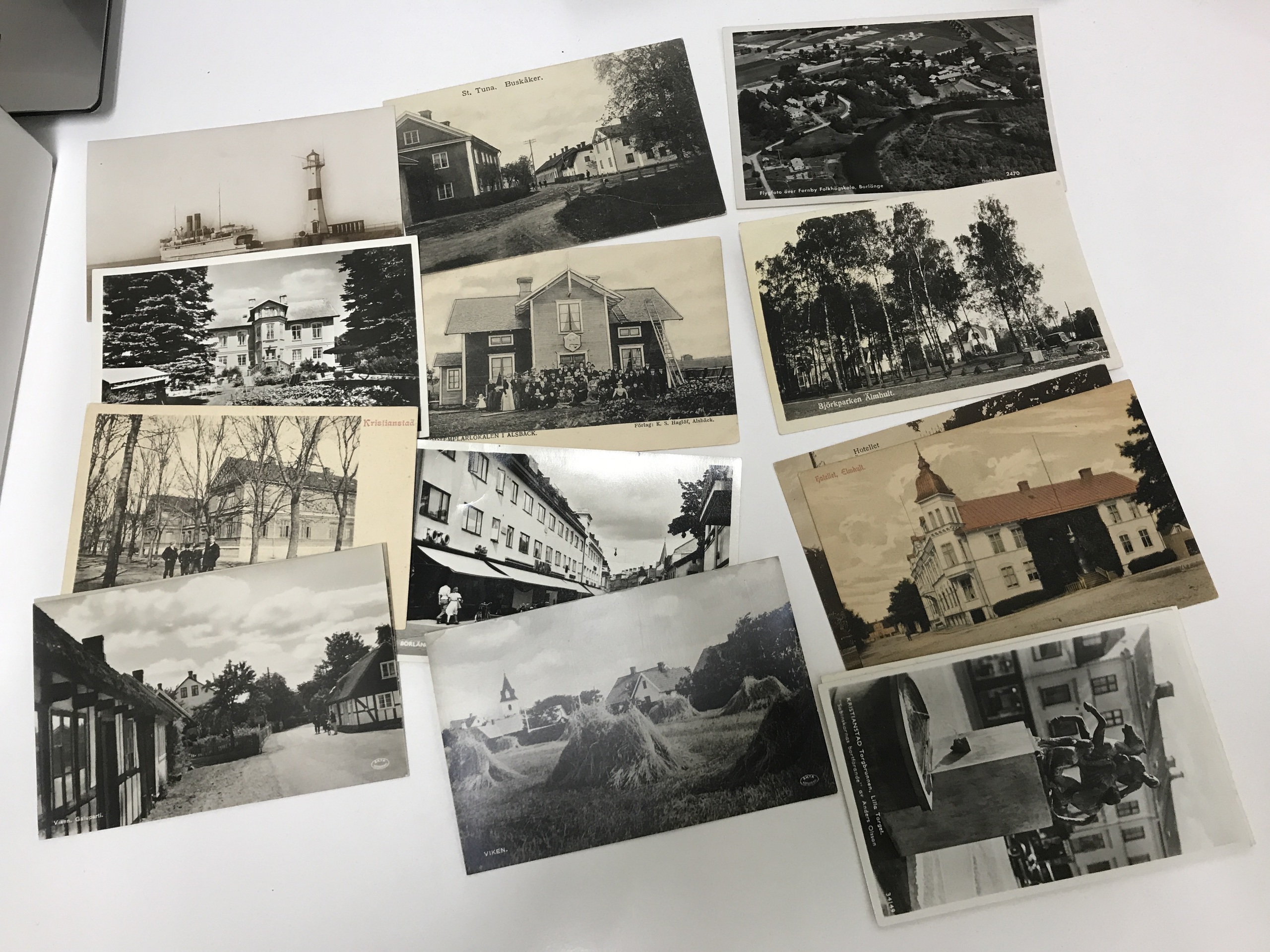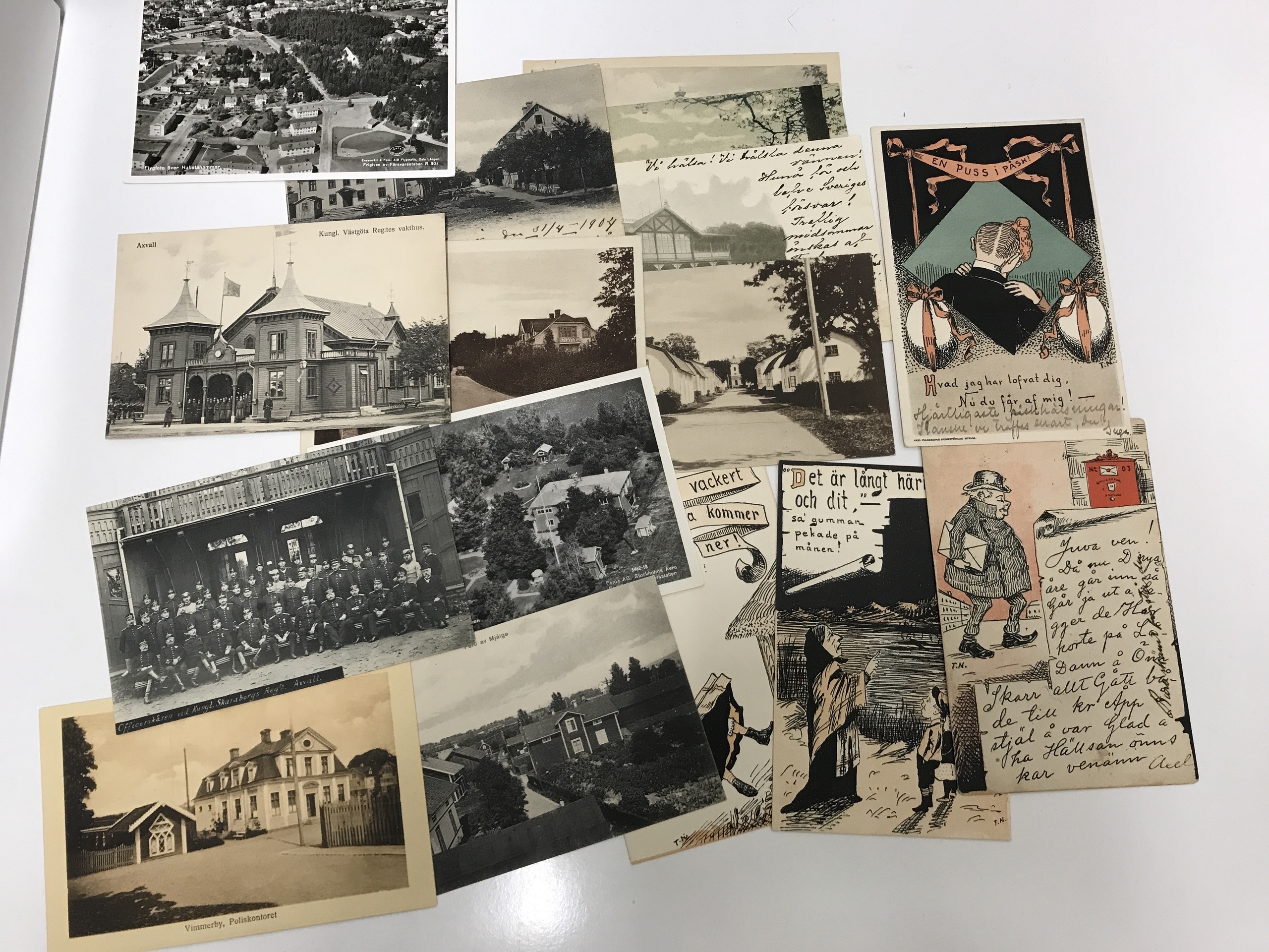 Sweden. Picture postcards, accumulation 1900–1960s. 500–600 cards in older format mainly topographic, but also some signed, for instance Tage Nilsson and others. There is also about 100 cards in plastic pockets in A6-format.