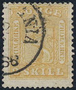 Norway. Facit 6 used, 1863 Coat-of-Arms 2 skilling yellow. SEK 2000