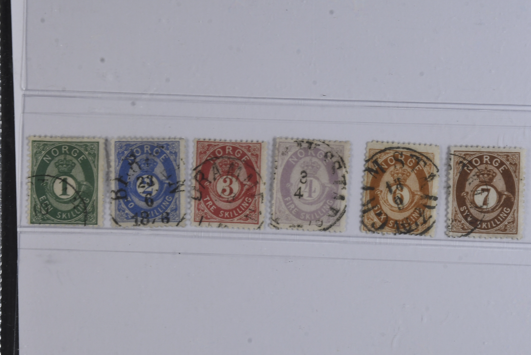 Norway. Facit 16–21 used, 1873 Shaded Posthorn SET (6). SEK 2900