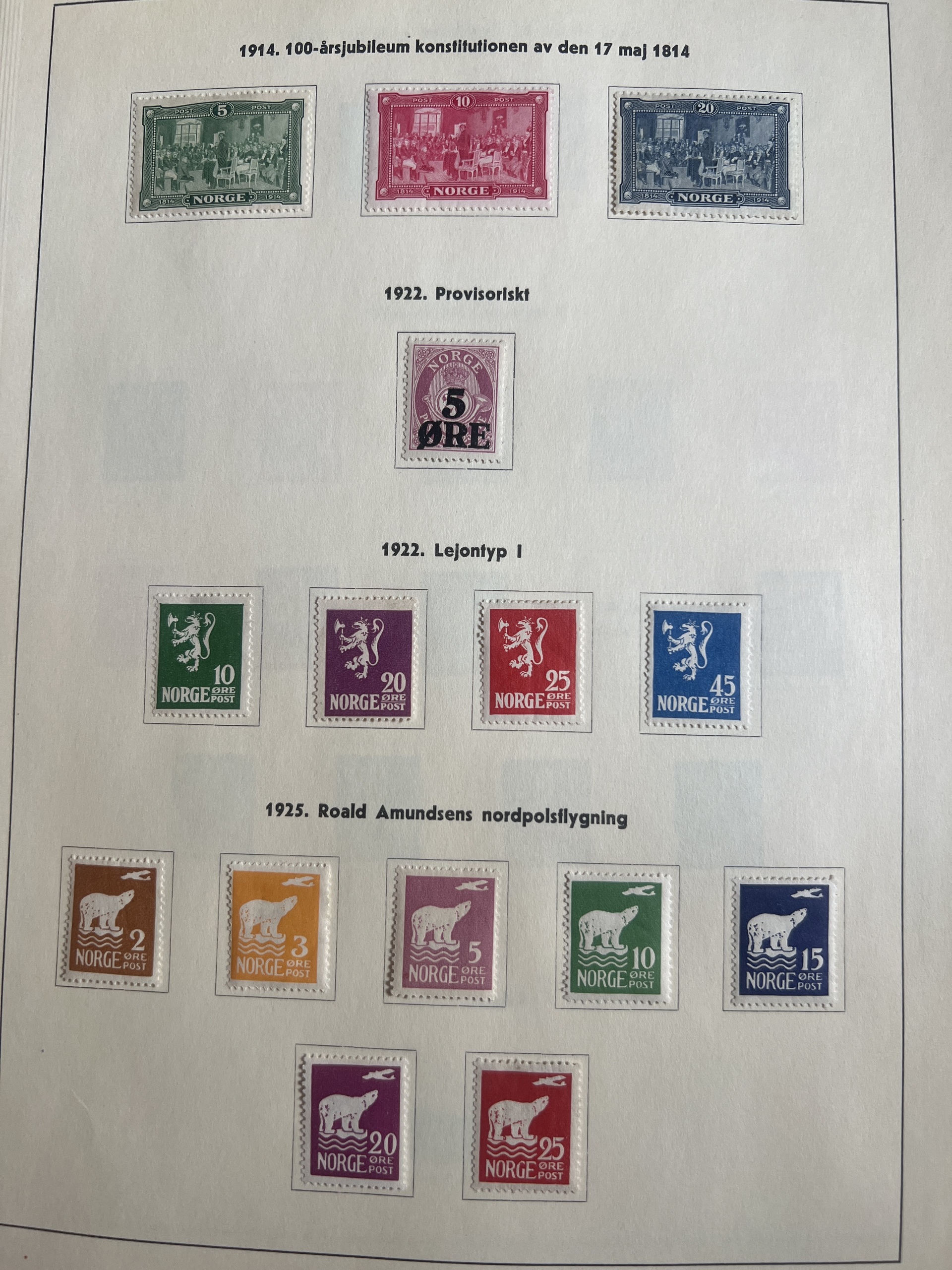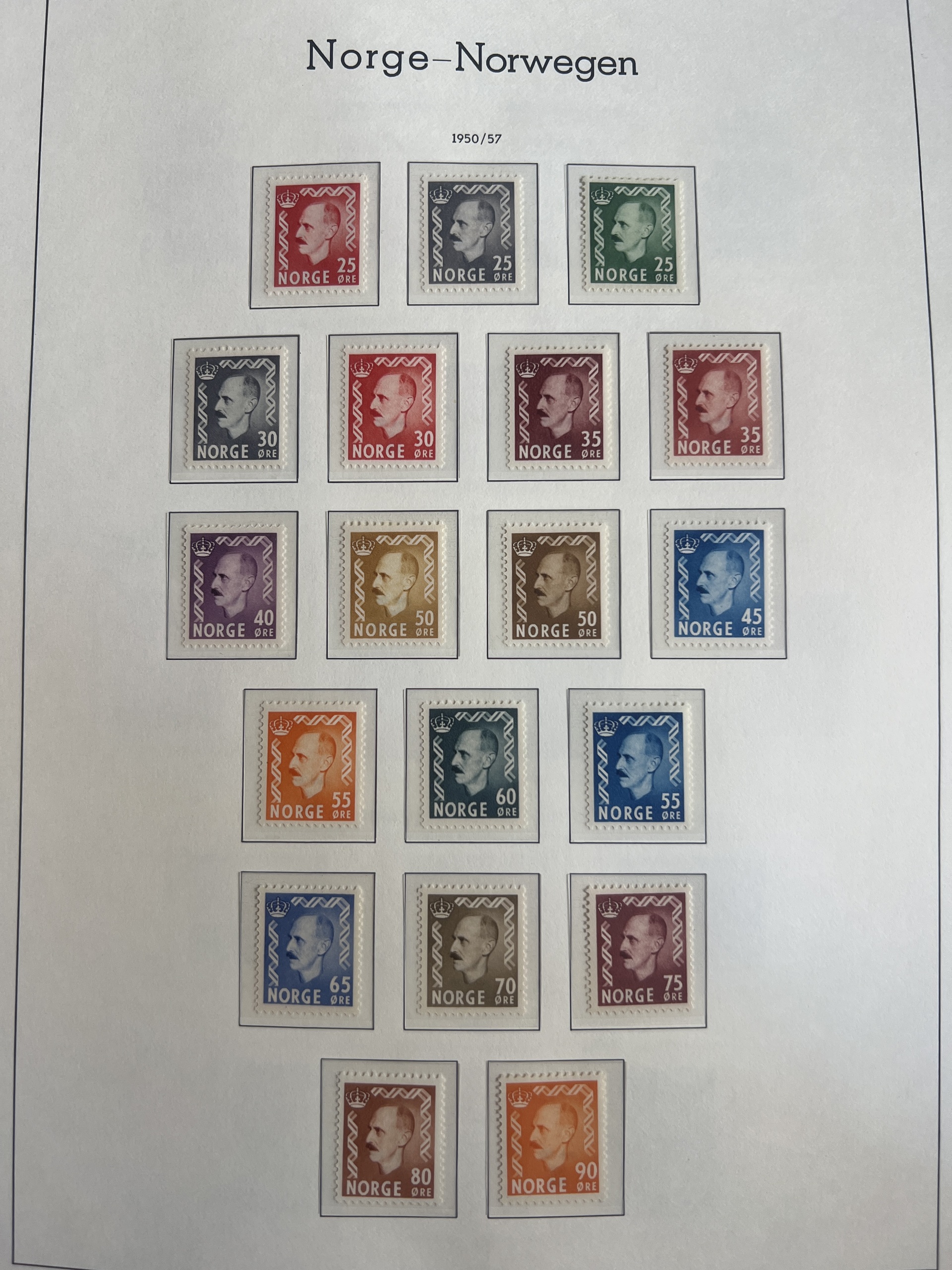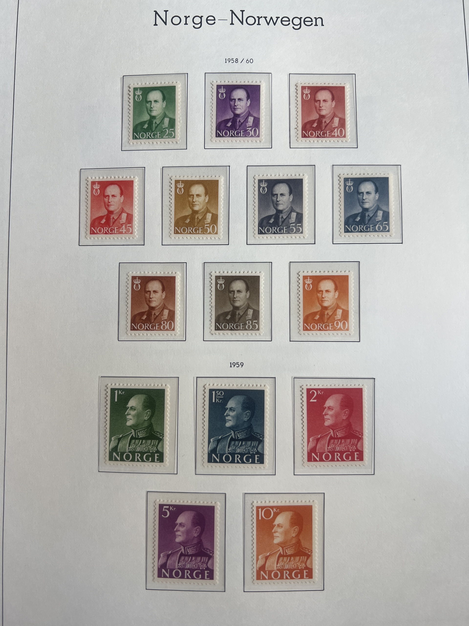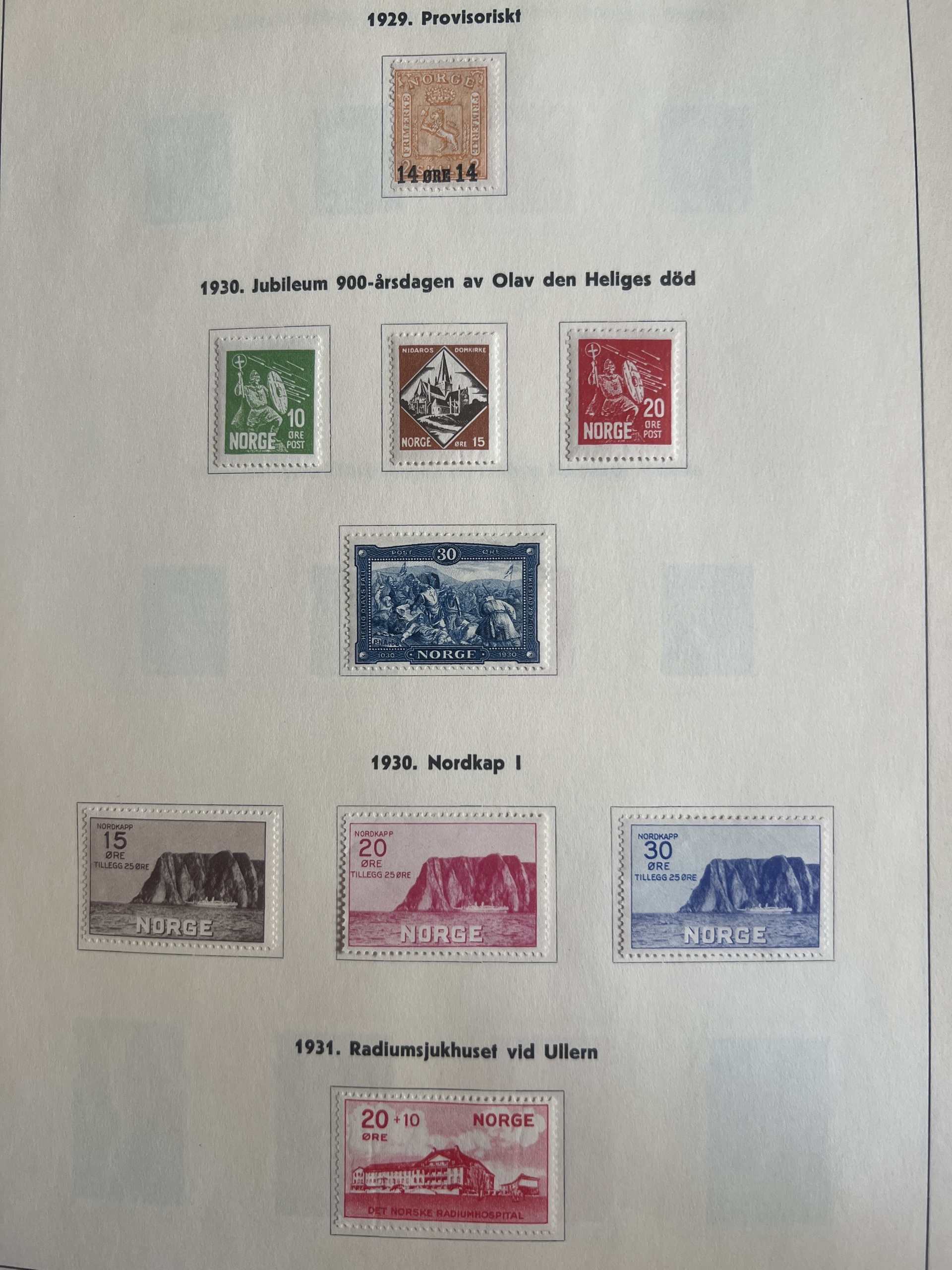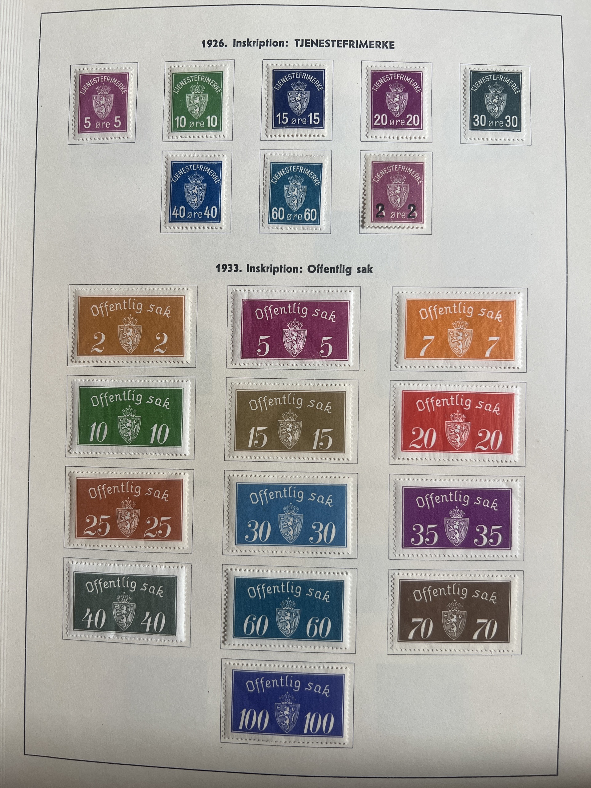 Norway. Collection ★ 1863–1974 on leaves partly with stamp mounts. On two different sets of leaves with a little bit of overlap. Some better sets and stamps. Please see a selection of scans at www.philea.se. Mostly fine quality. (ca. 600–700)