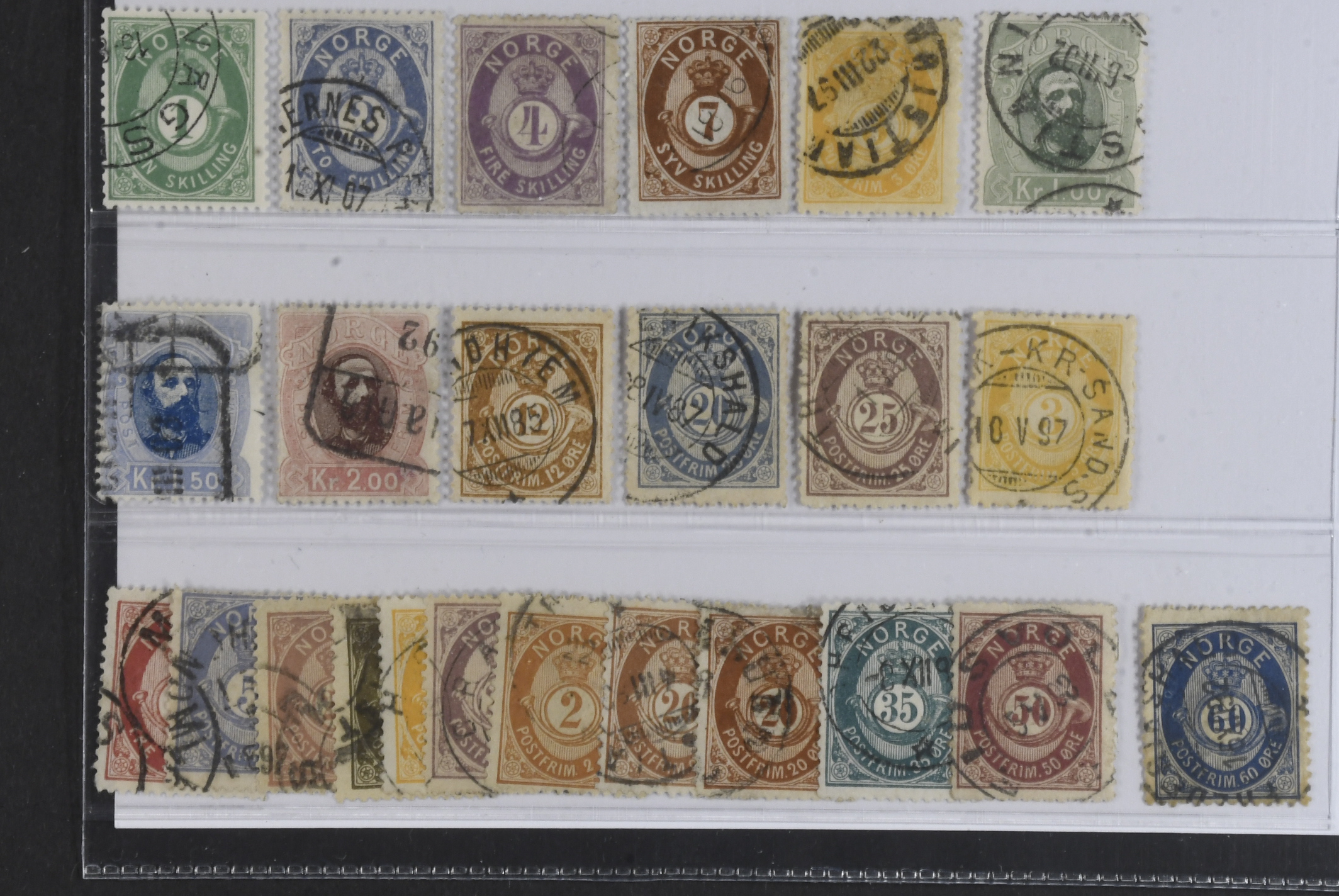 Norway. Used 1871–1893. All different, e.g. F 16–17, 19, 21, 23, 34–36, 42, 44, 46, 48. Mostly good quality. F SEK 5310 (24)