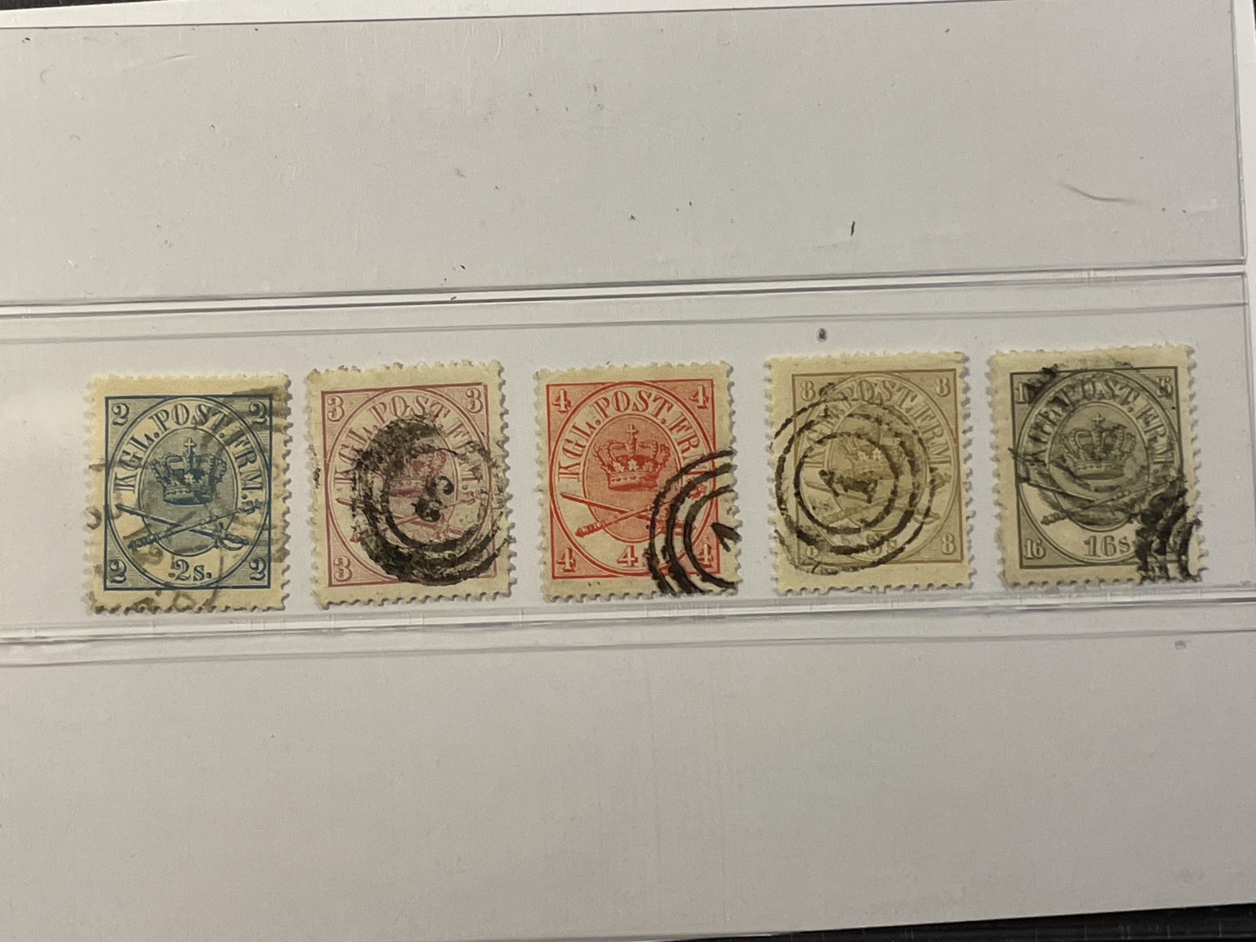 Denmark. Facit 11–15 used, 1864–1870 SET (5). 16 sk with short perf. SEK 4280