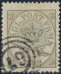 Denmark. Facit 15 used, 1868 Large oval type 16 skill greenish dark grey. Numeral cancellation 67. SEK 1600