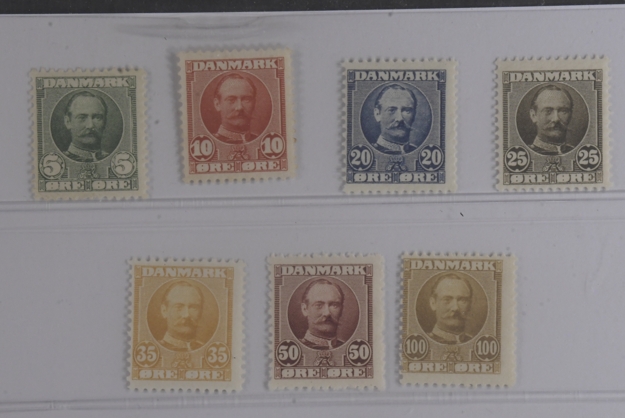 Denmark. Facit 69–75 ★★, 1907 King Frederik VIII SET (7). SEK 3550