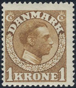 Denmark. Facit 165 ★★, 1913 King Christian X 1 Kr brown. Almost off-centered. SEK 2500