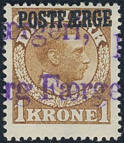 Denmark. Ferry Facit PF10 used, 1919 POSTFÆRGE overprint on King Christian X 1 Kr brown. SEK 1500