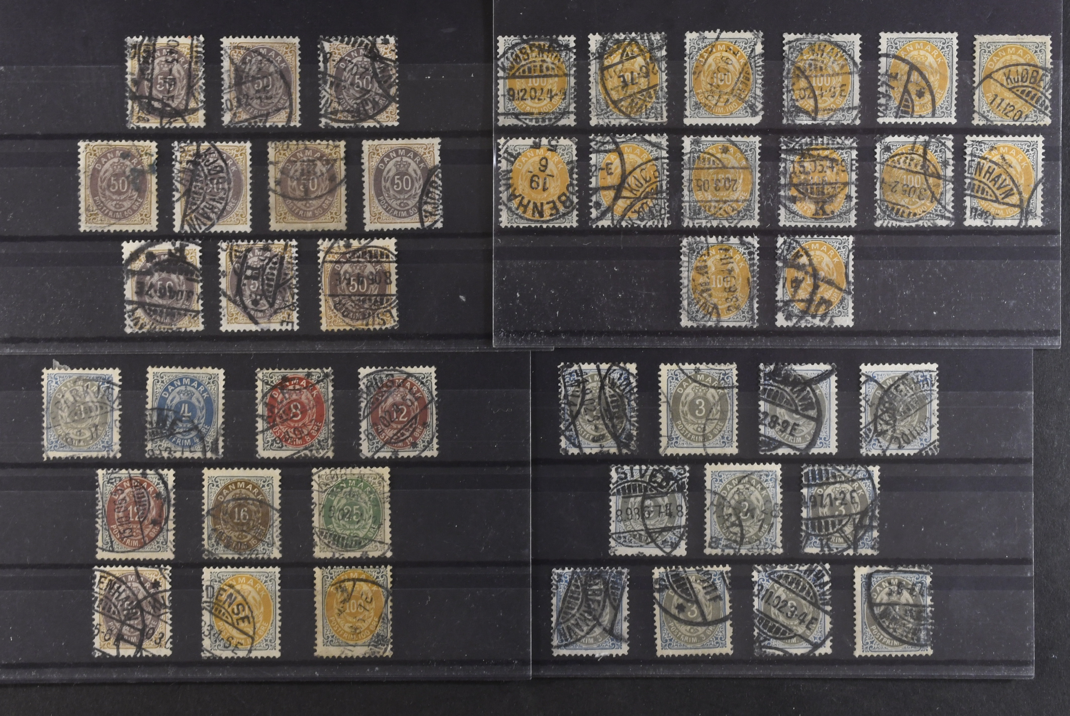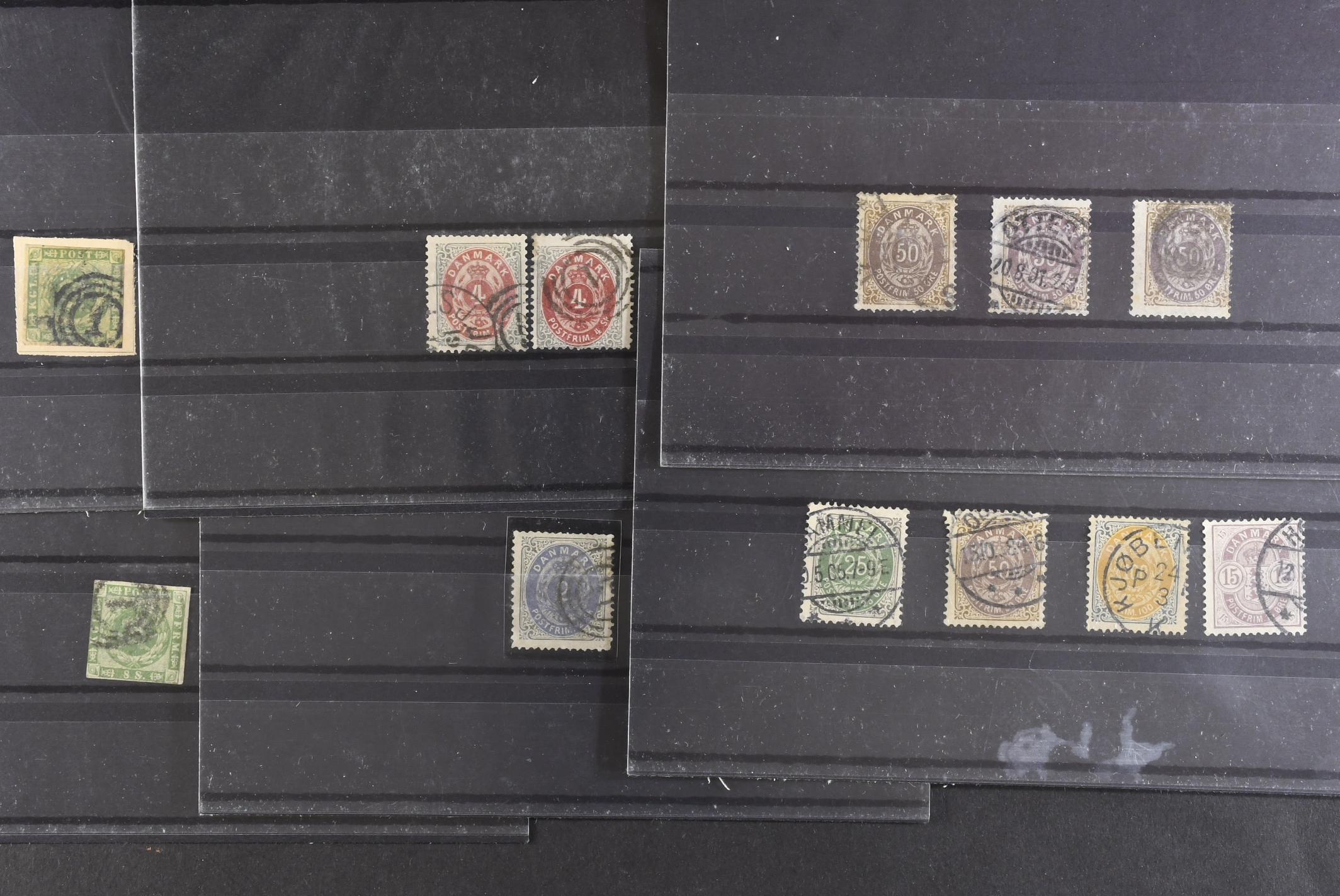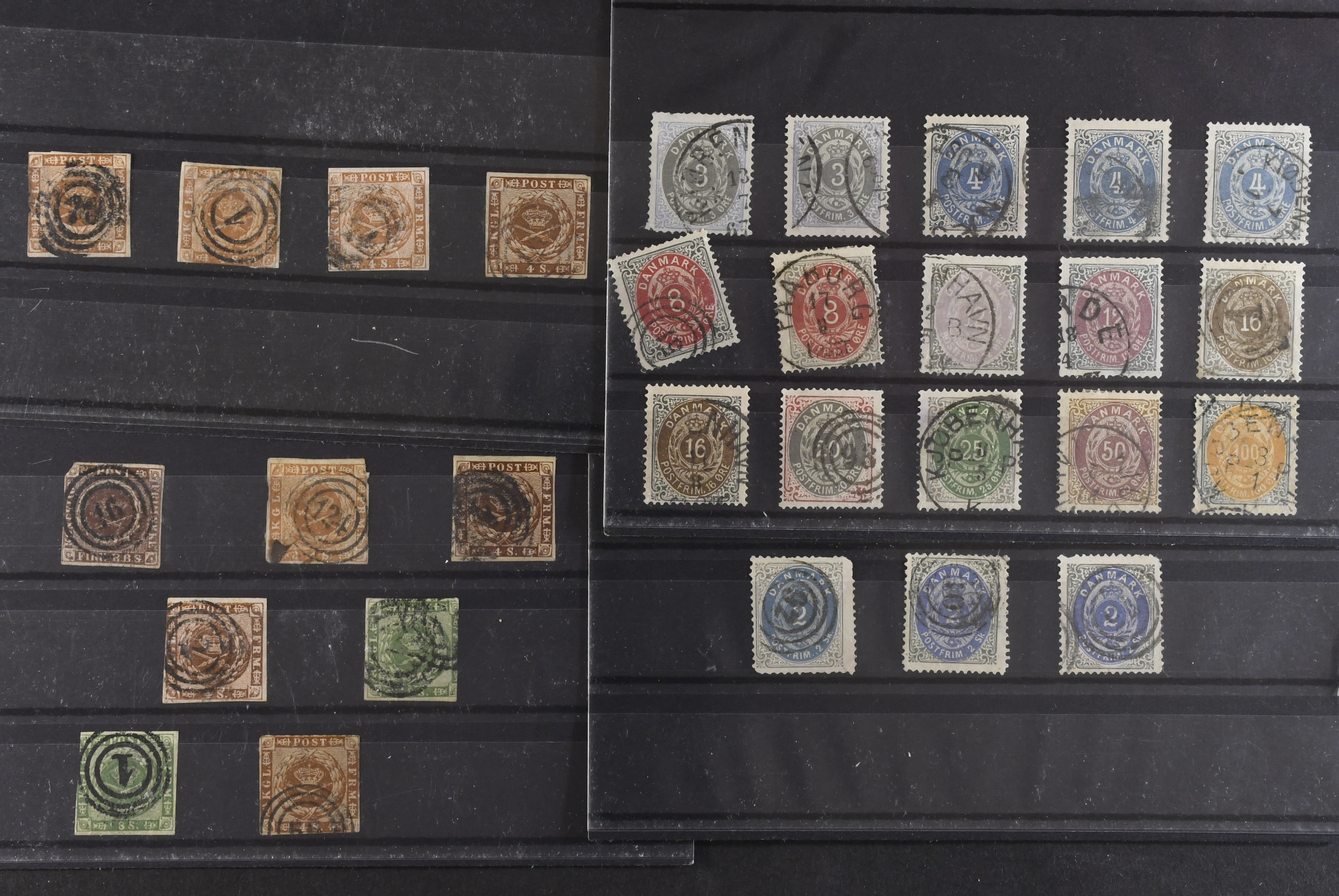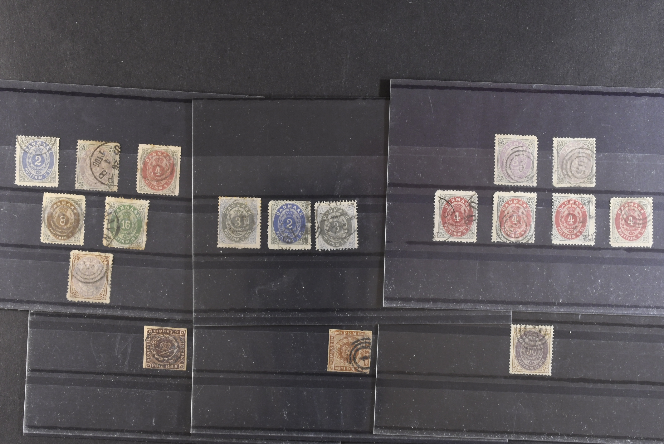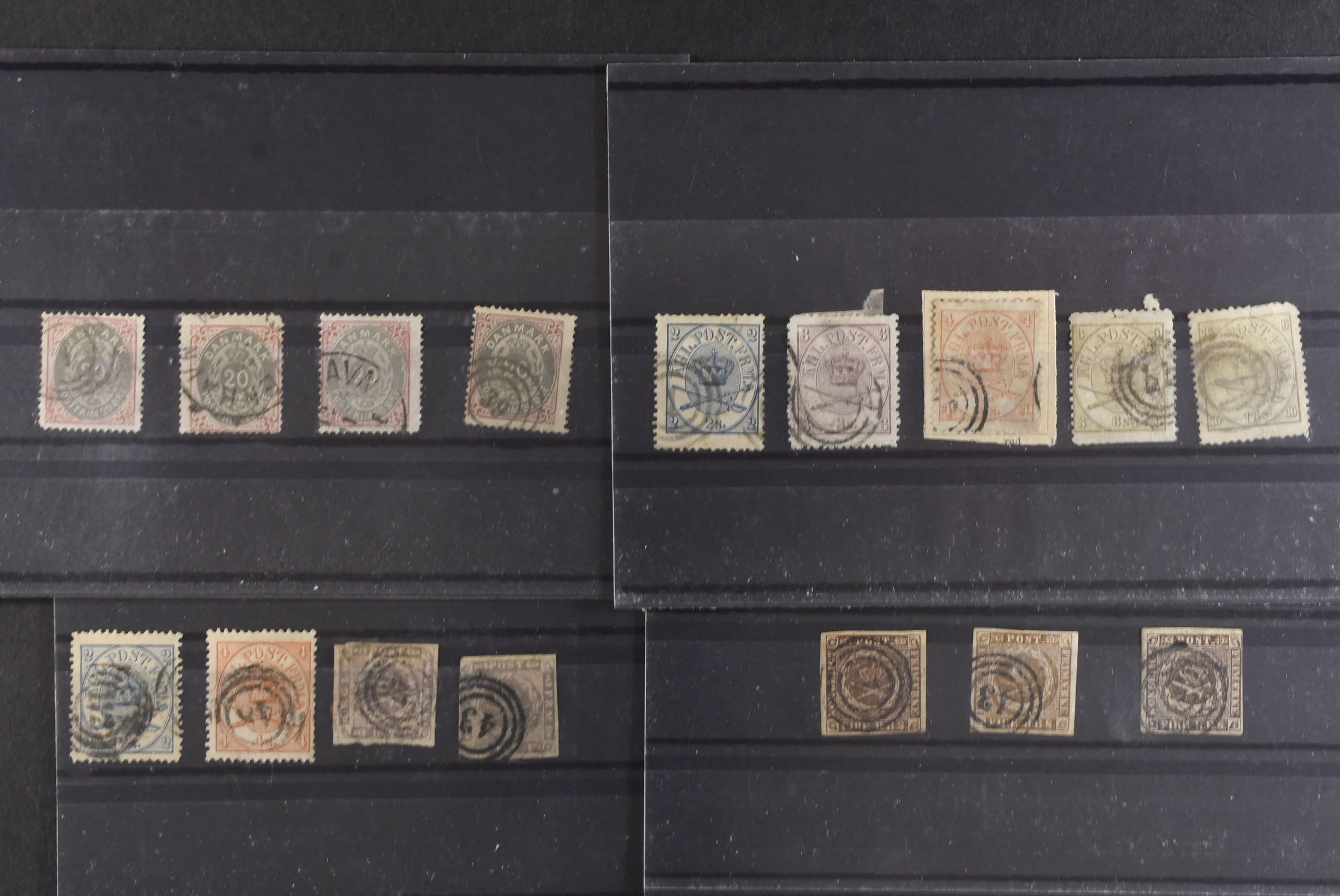 Denmark. Used. Lot classic stamps on cards. Many skilling values. Mixed quality. (170)