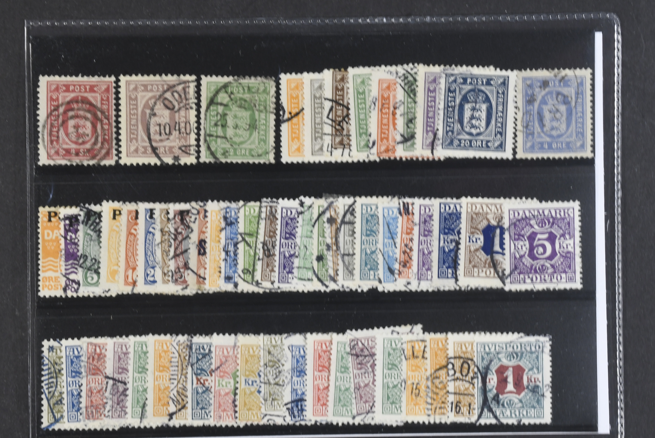 Denmark. Used 1871–1934. Back-of-the-book. All different, e.g. Tj 2, Tj6, Tj9, Tj16–24 except Tj18, L1–25, TI 1–20. Mostly good quality. F SEK 6630 (58)