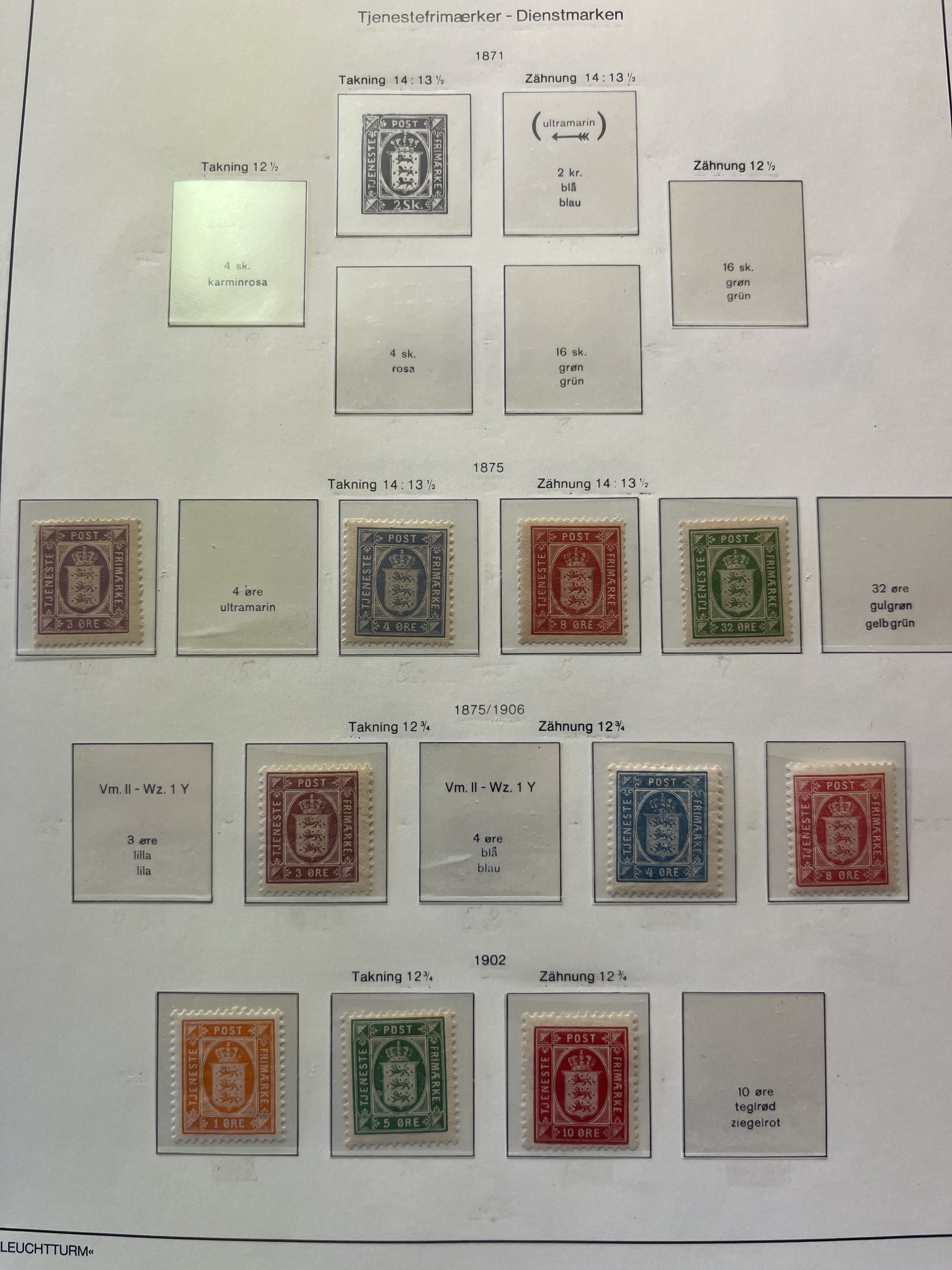 Denmark. Collection ★★/★. Most officials, postage due and postal ferry stamps on Leuchtturm leaves. The entire lot is presented at www.philea.se.