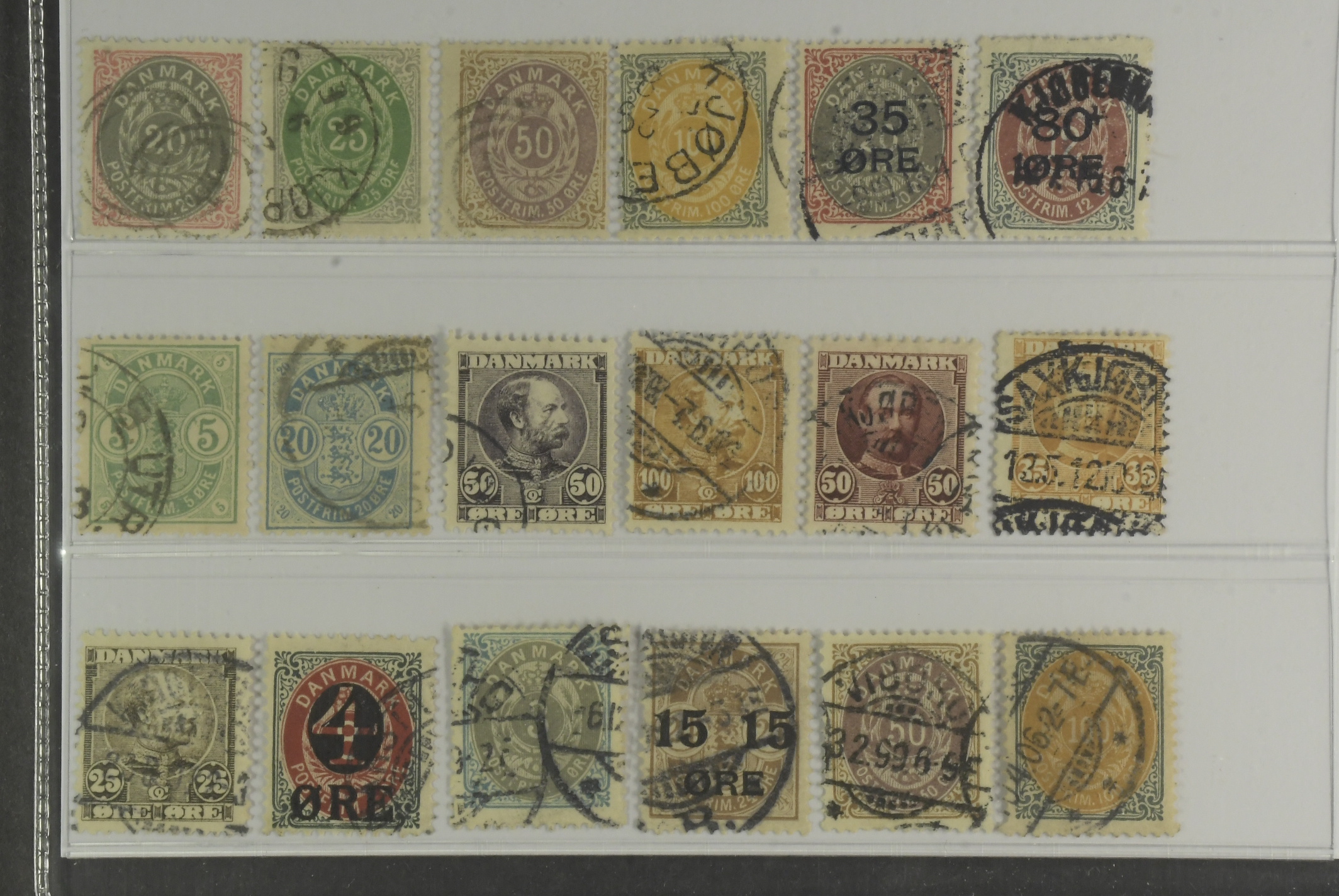 Denmark. Used 1875–1912. All different, e.g. F 34–37, 48–50, 52, 67–68. Mostly good quality. F SEK 6570 (18)