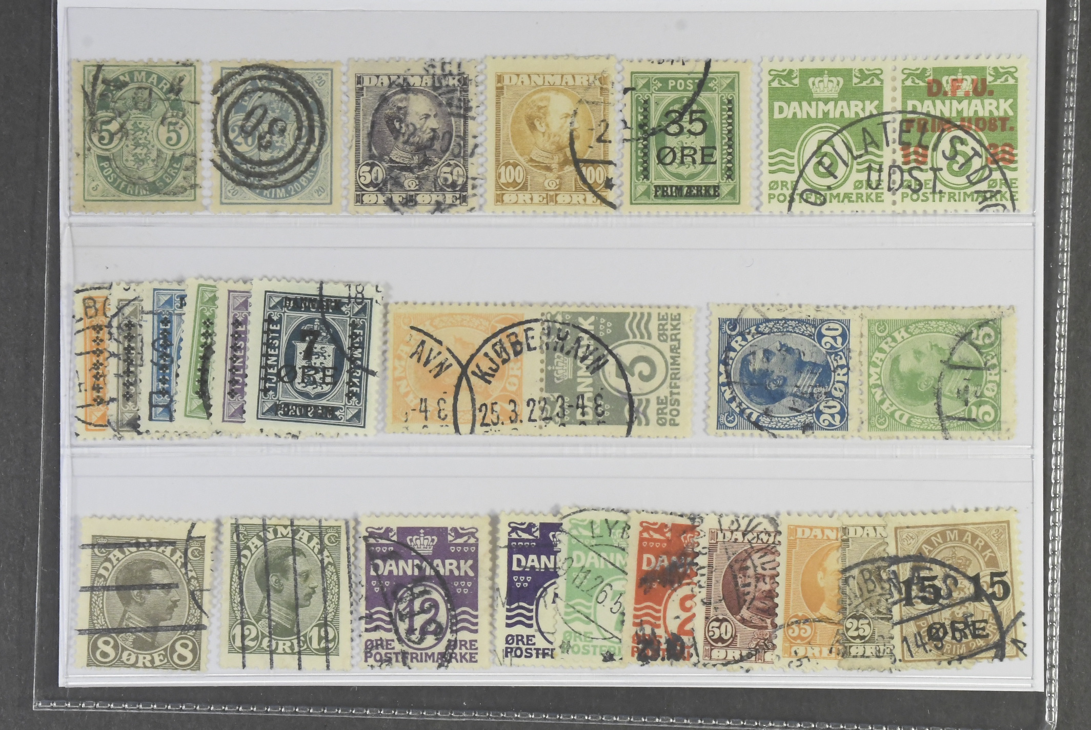 Denmark. Used 1882–1928. All different, e.g. F 50, 52, 67–68, 122, 130, 132sx1, 137sx1. Mostly good quality. F SEK 6595 (24)