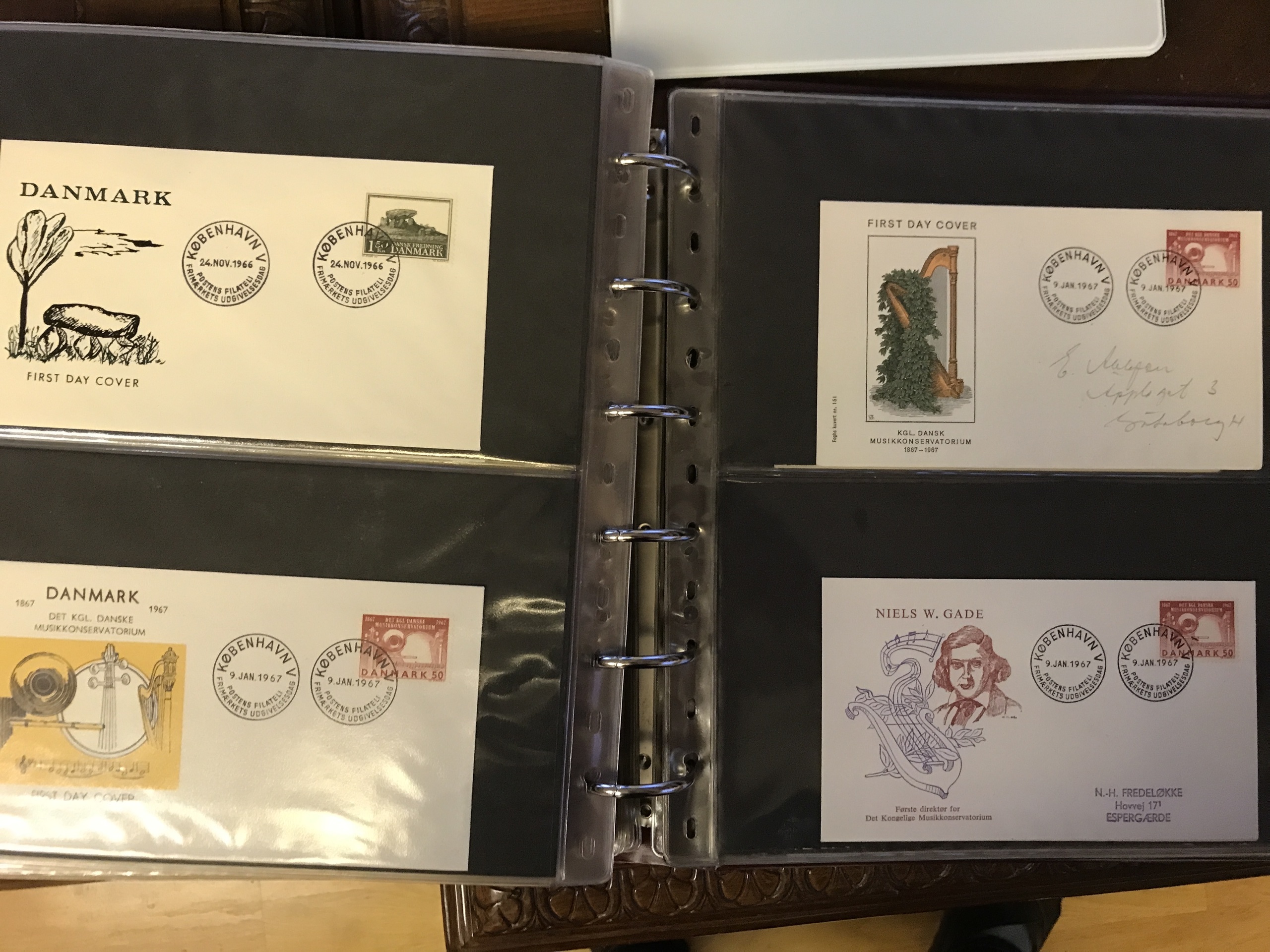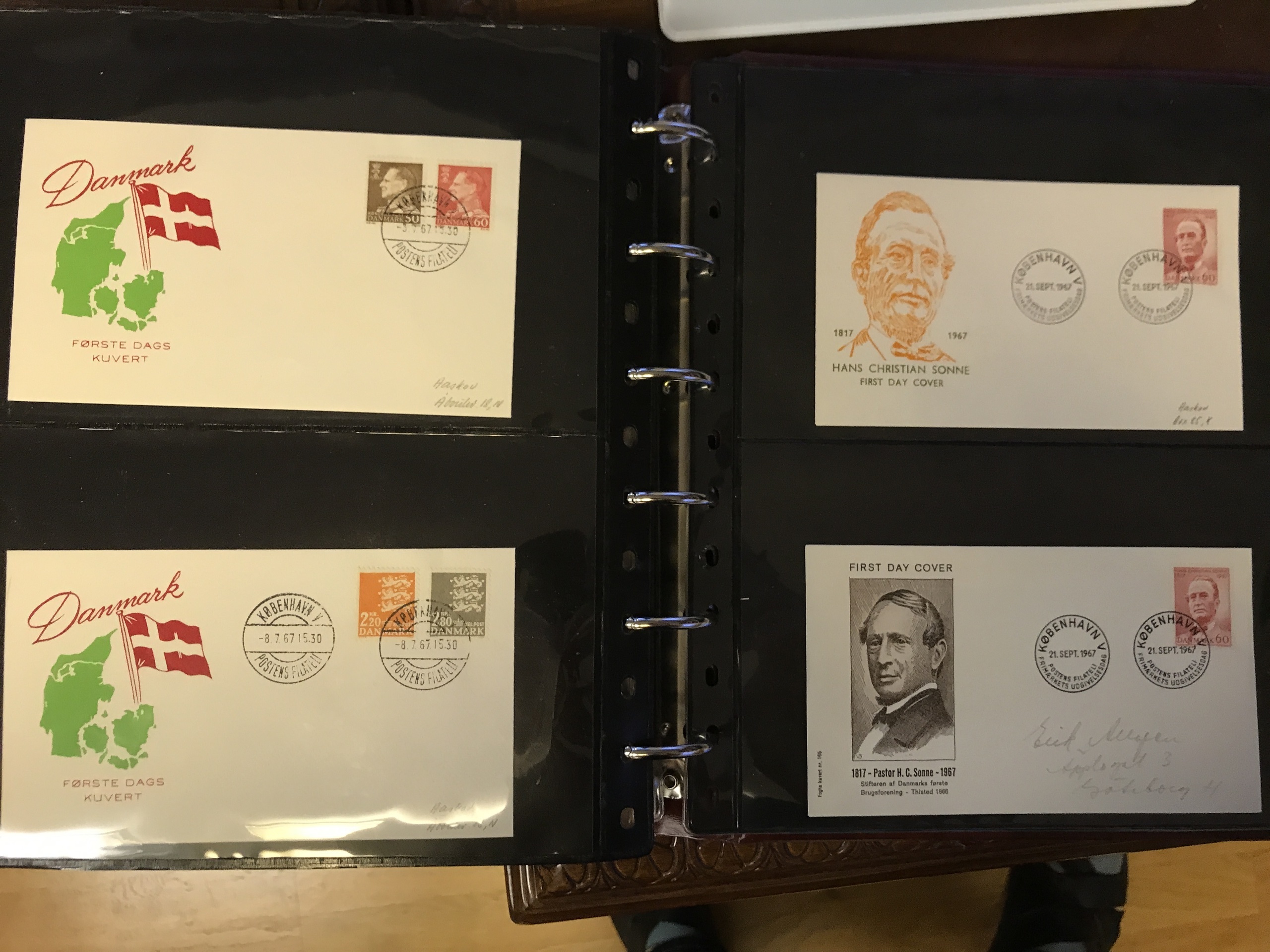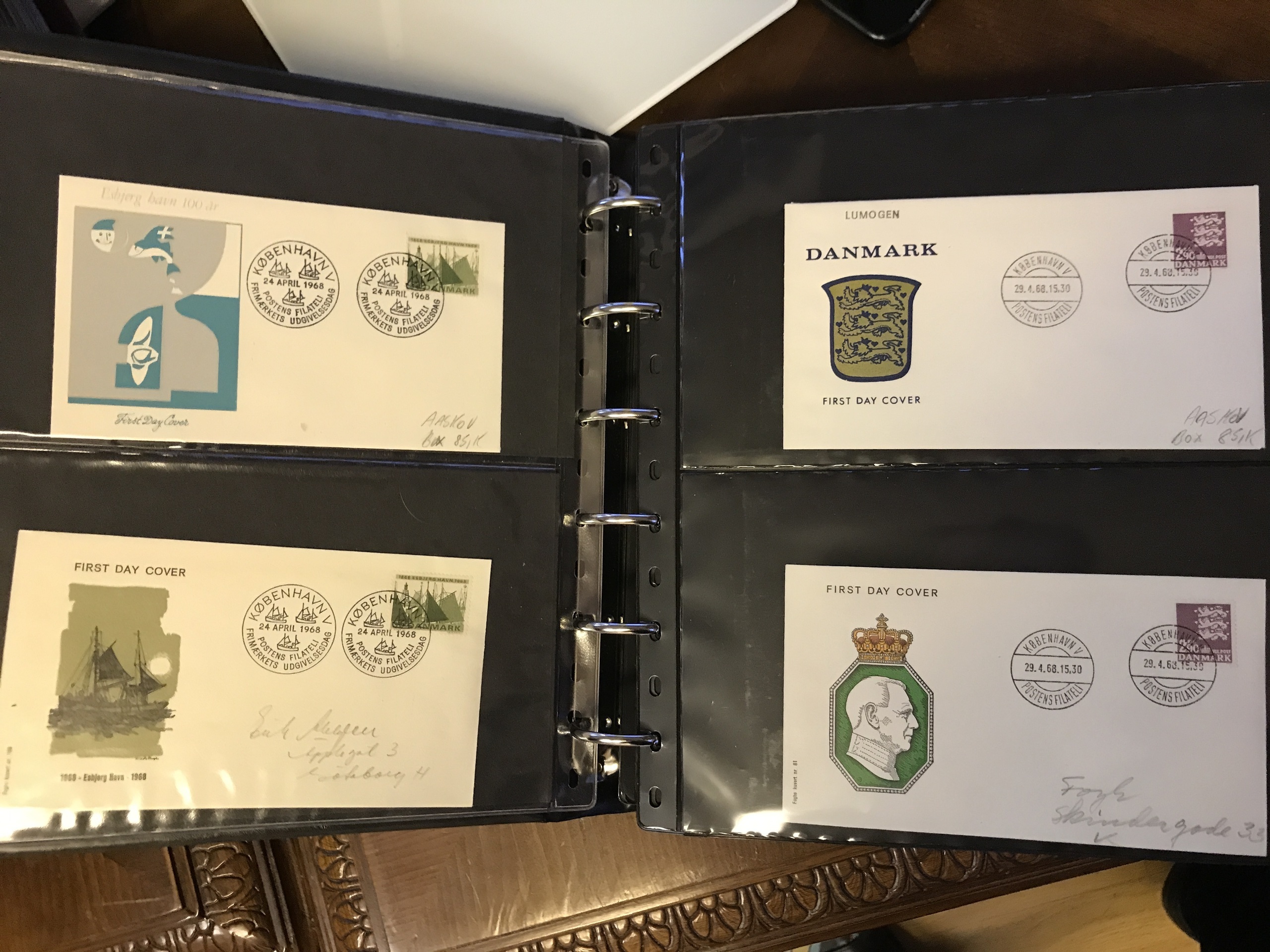 Denmark. FDCs. Collection 1940s–1997 in eight binders incl. several different vignettes, etc. Also 1000s of mainly used stamps in envelopes + binder with various Christmas stamps, etc. Please see a selection of scans at www.philea.se. Approx. 24 kg.