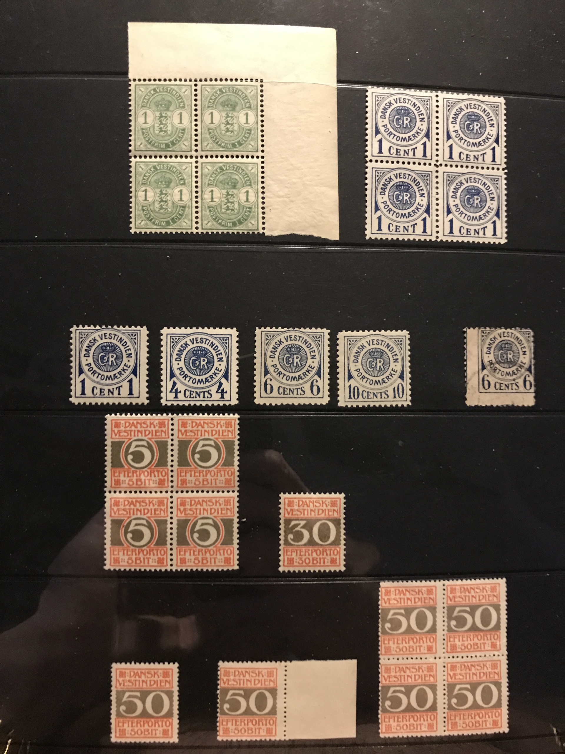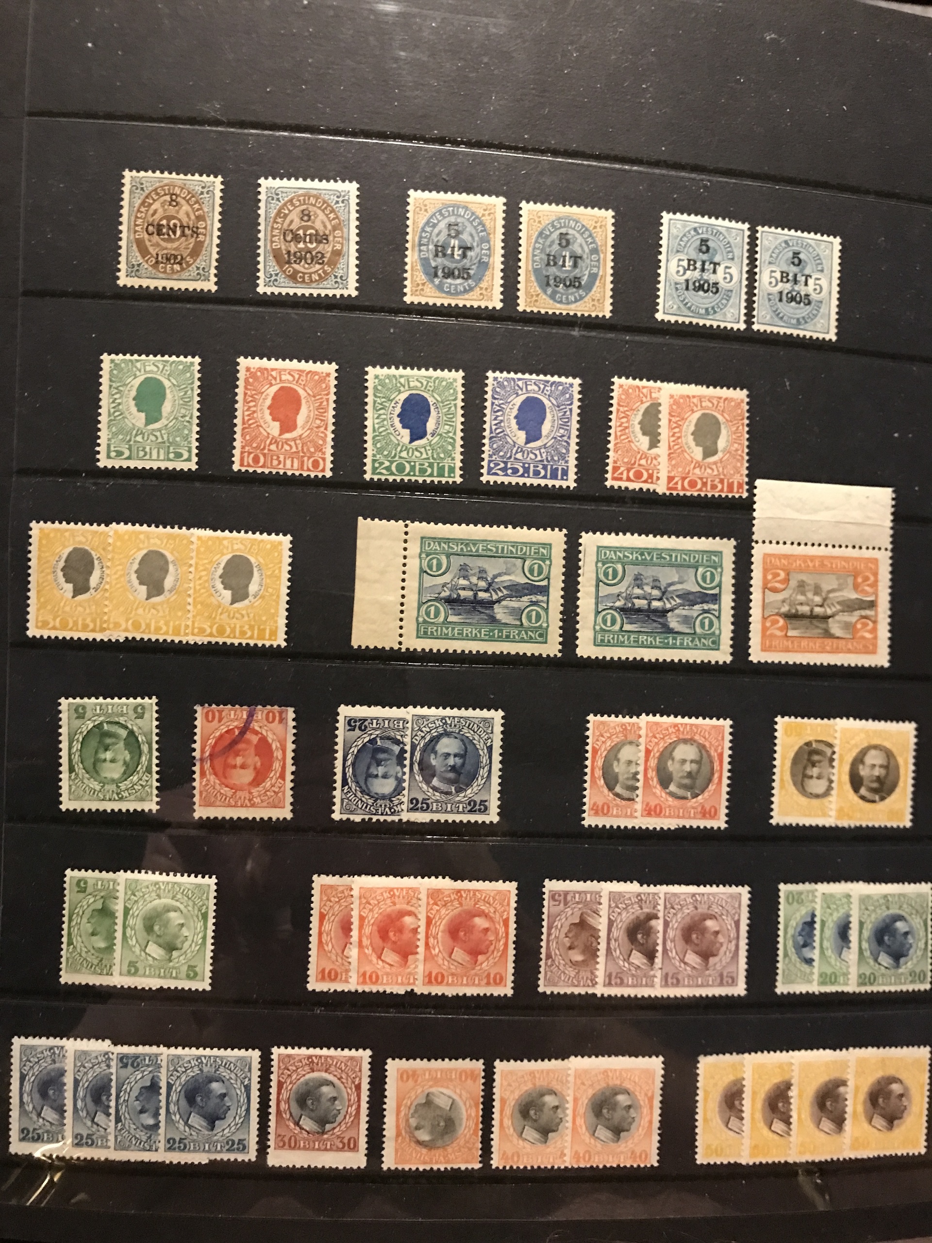 Danish West Indies. Mostly ★★. Collection 1866–1916 incl. dupl. and some shades. Containing e.g. F2, 8–9, 17, 38–39 and L1-4 **, some blocks-of four, etc. The entire lot is presented at www.philea.se.