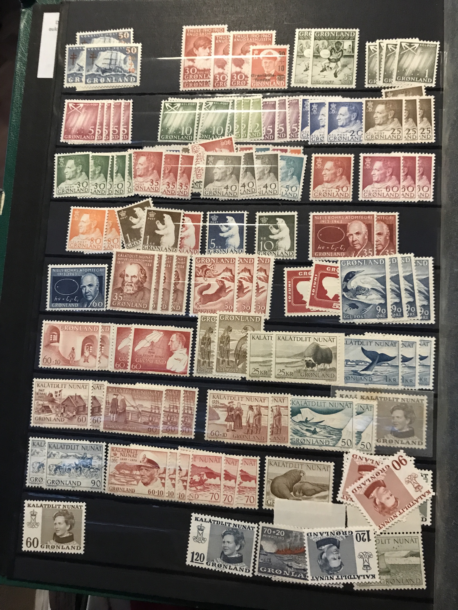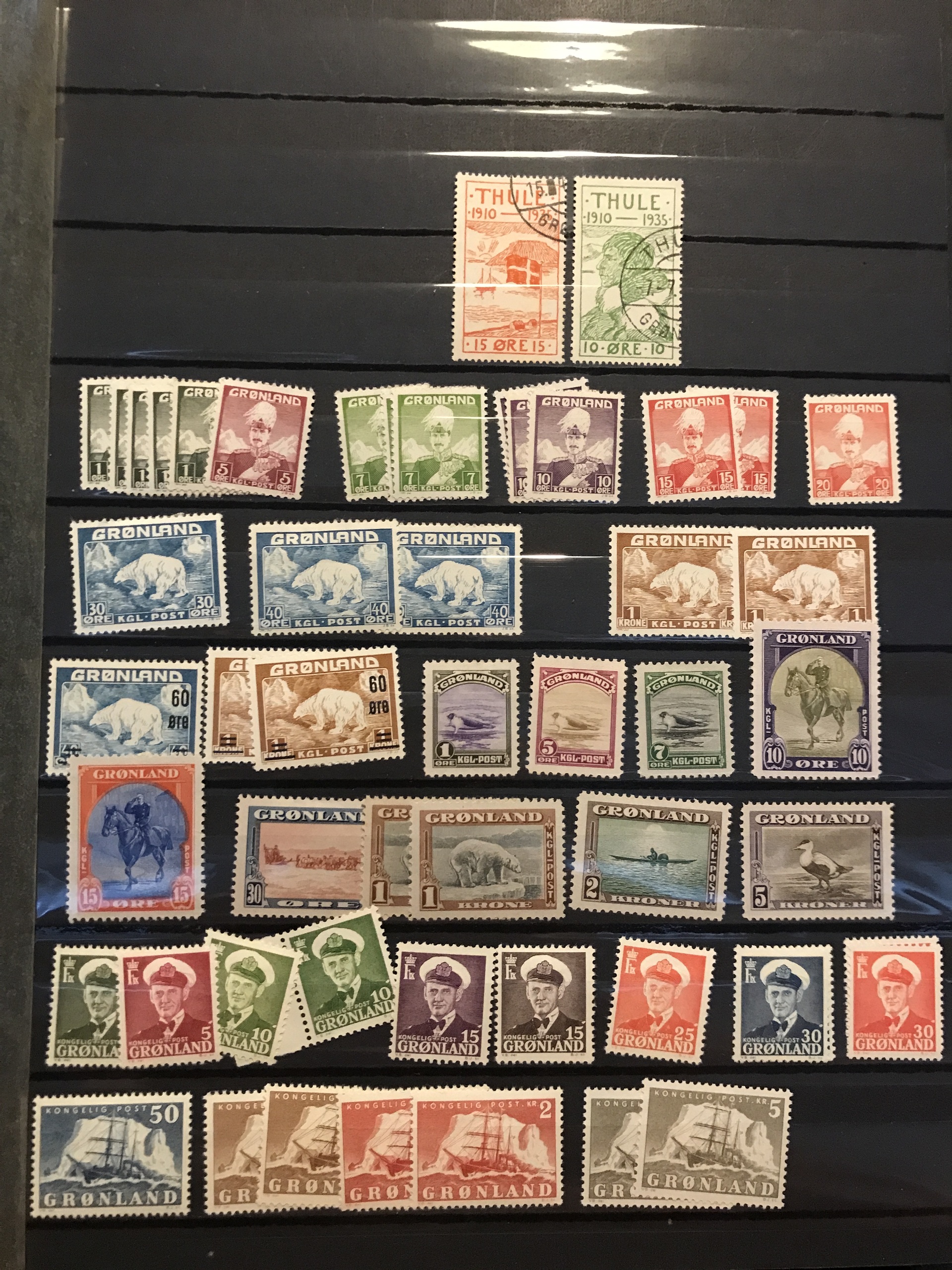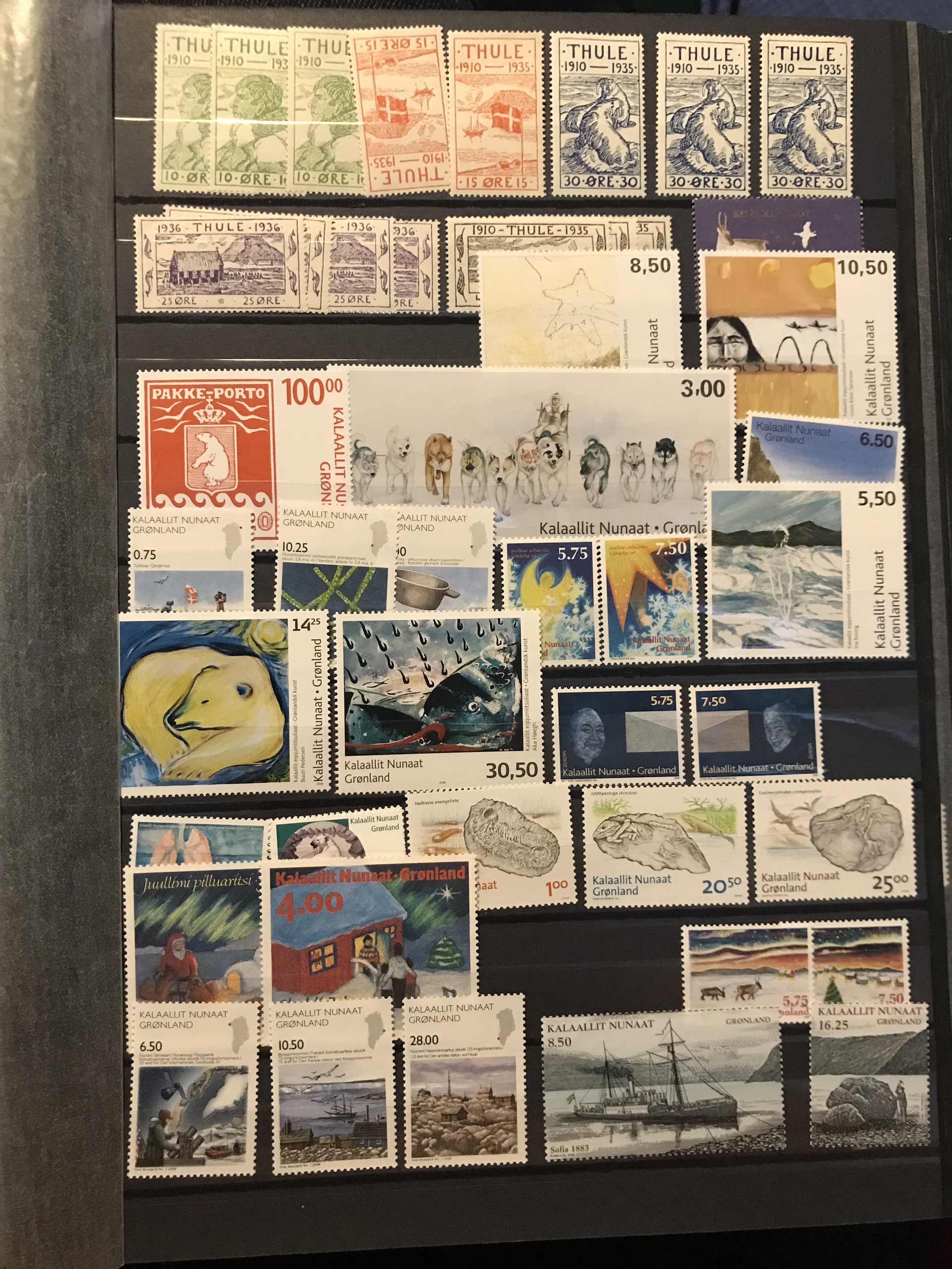 Greenland. ★★/★/⊙. Used collection 1915–2010 in Schaubek album with slip case + leaves and **/* 1939–2021. Containing e.g. 39 parcel stamps incl. P4–8 used, P5 *, three P6, P12 **, F22 used, Thule incl. dupl and also a good section DWI, etc. Please see a selection of scans at www.philea.se.
