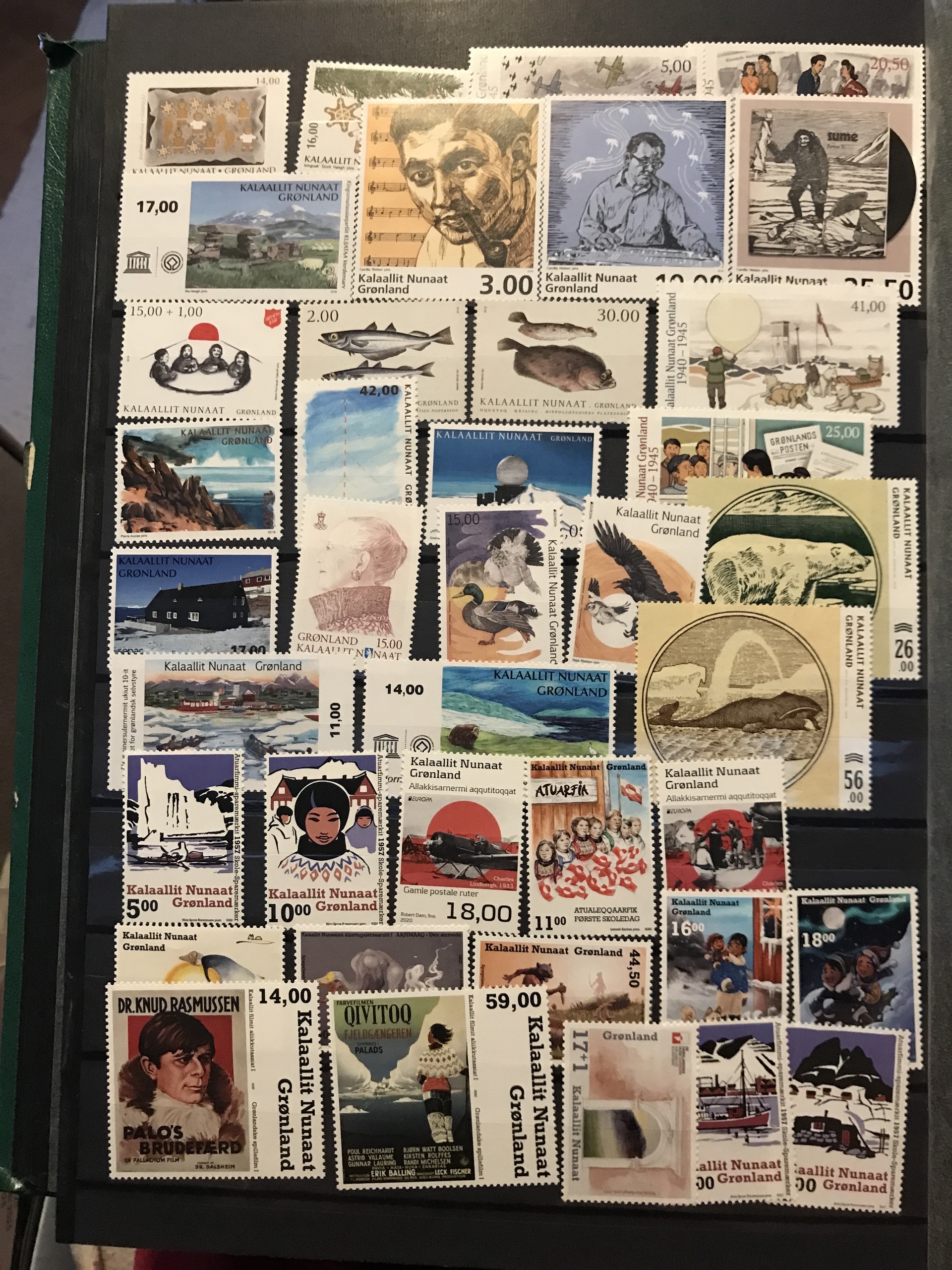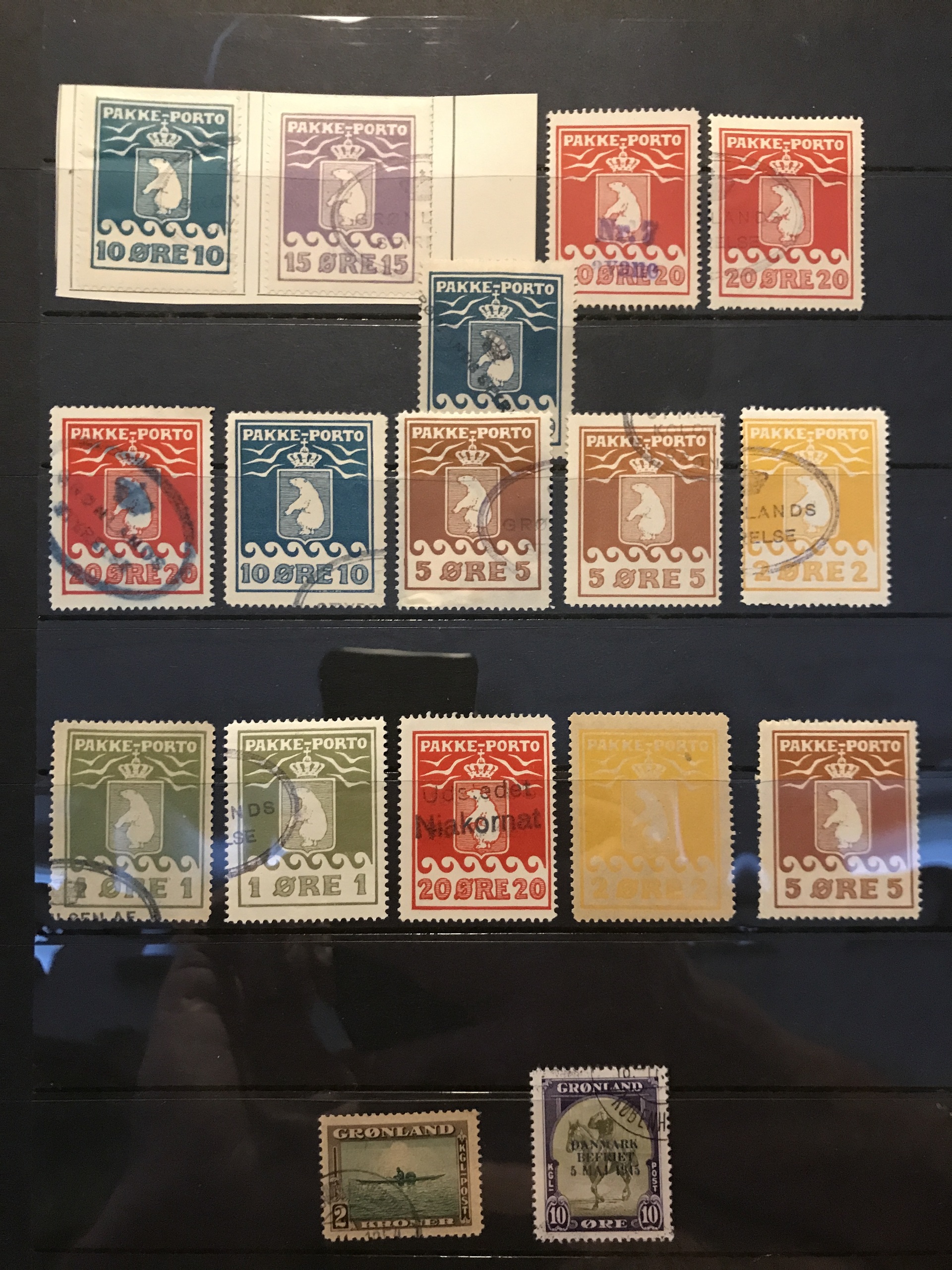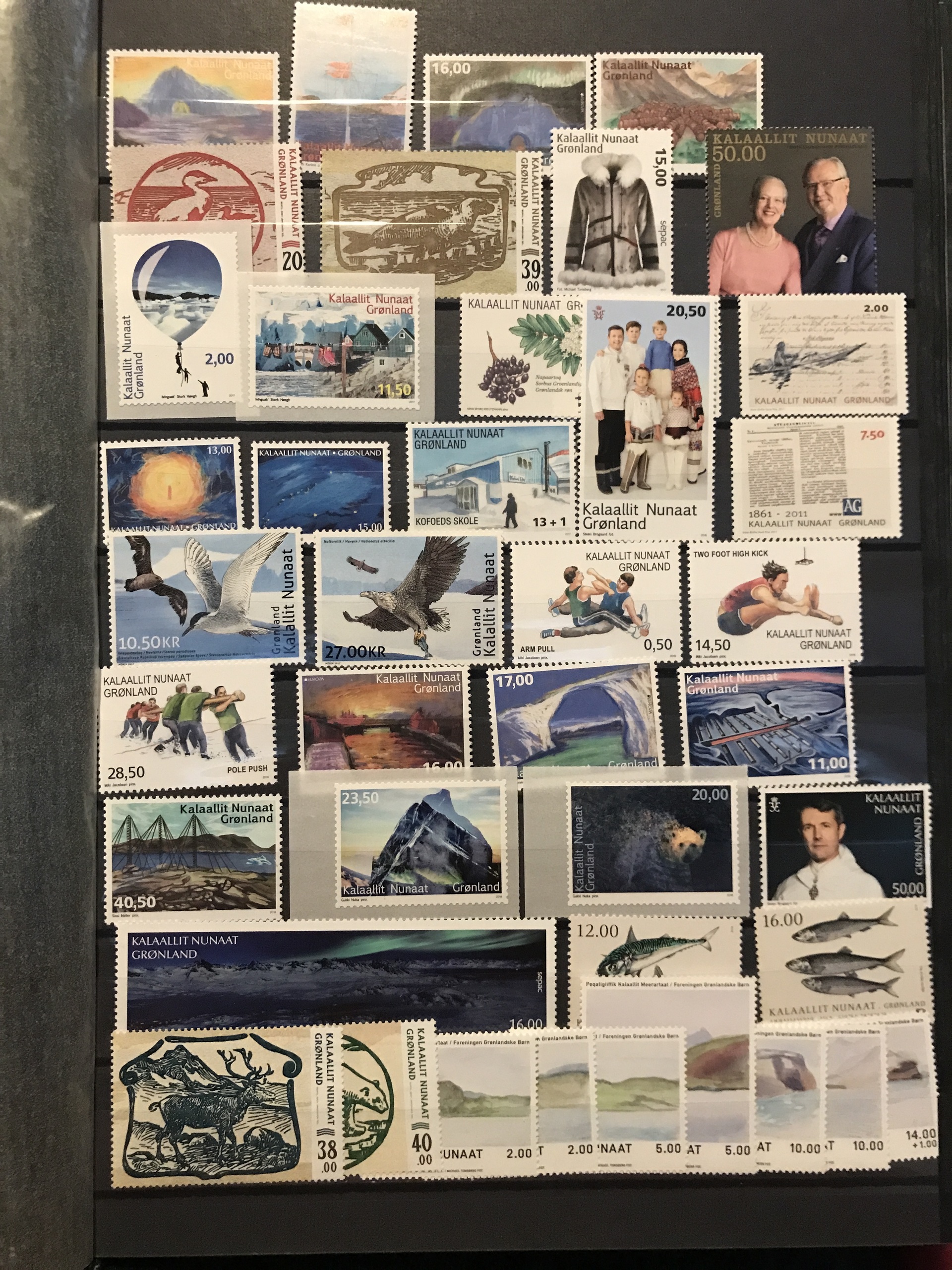 Greenland. ★★/★/⊙. Used collection 1915–2010 in Schaubek album with slip case + leaves and **/* 1939–2021. Containing e.g. 39 parcel stamps incl. P4–8 used, P5 *, three P6, P12 **, F22 used, Thule incl. dupl and also a good section DWI, etc. Please see a selection of scans at www.philea.se.