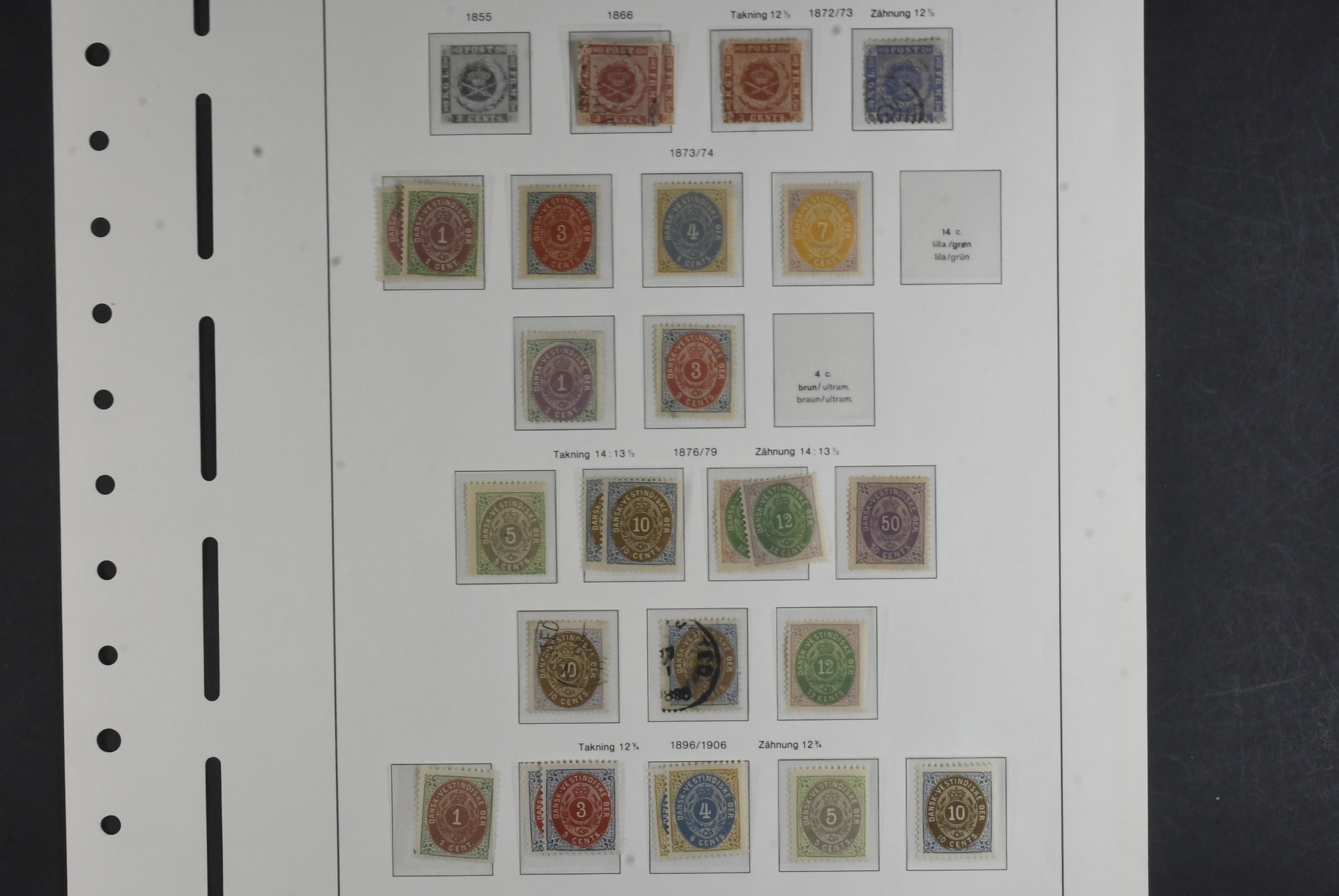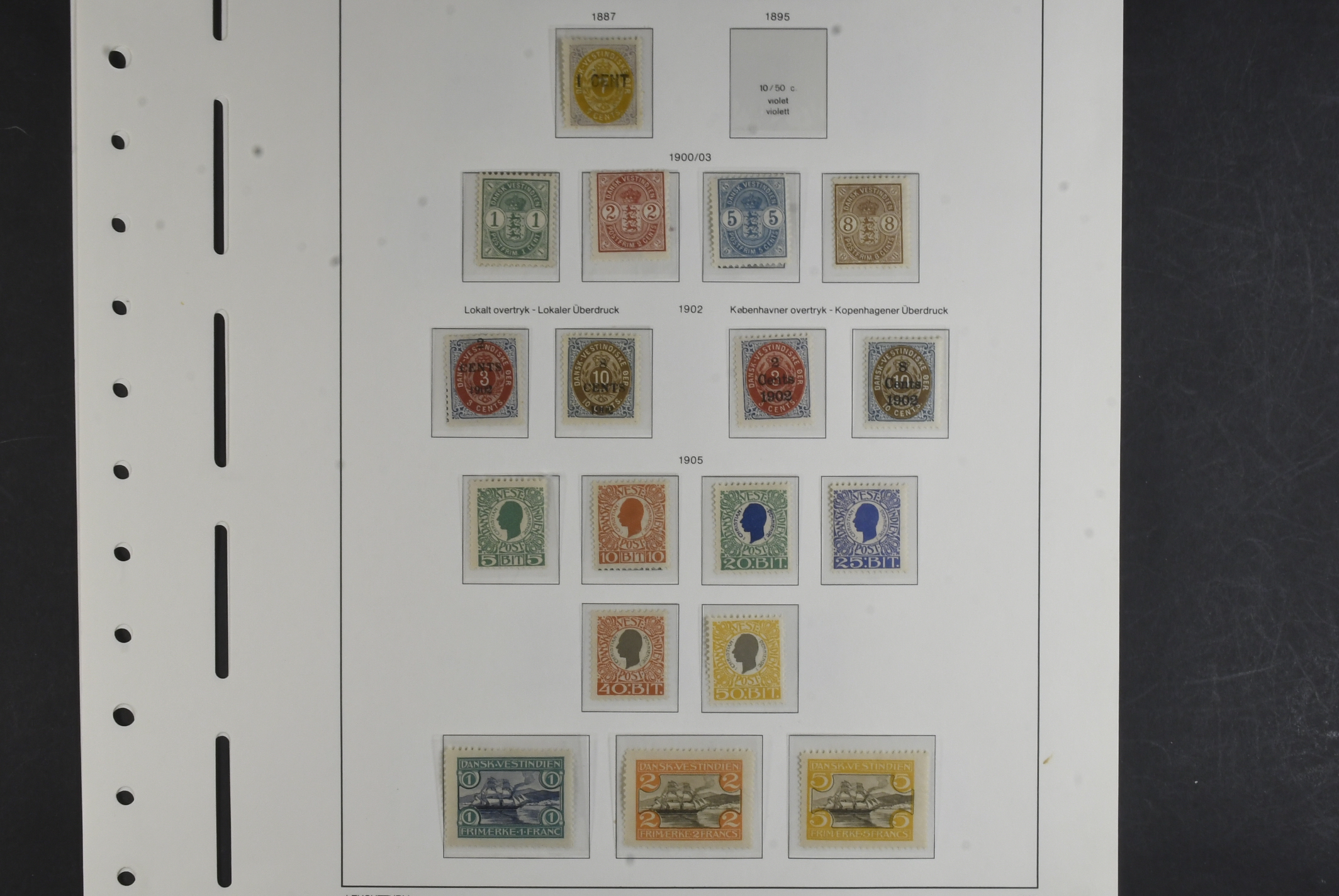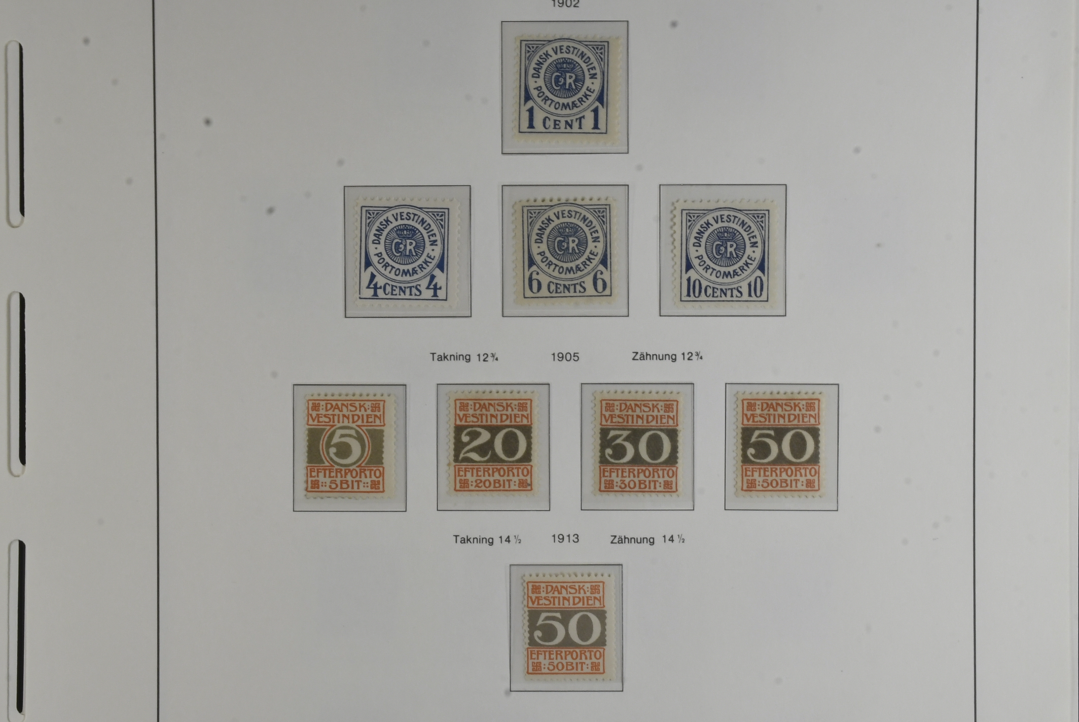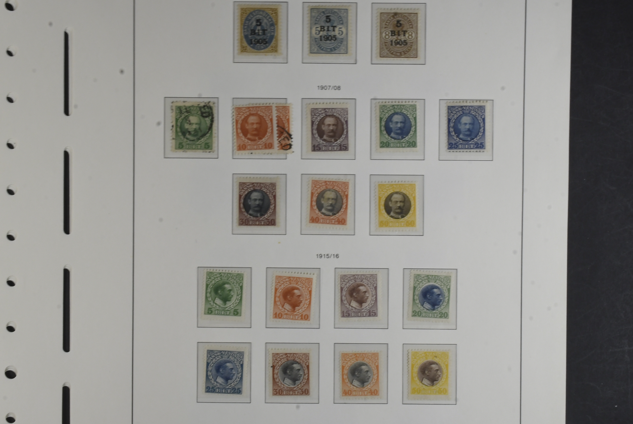 Danish West Indies. Collection ★★/★/⊙ 1866–1916 on leaves with stamp mounts. Mostly mint incl. some NH, F2 ¤, F3 no gum, F4 ¤ faults, Bi-coloured incl. F8 ** and 11 ** (2) and some shades, F13 no gum. F18 *, F2 * complete mint from 1900 with a few stamps NH, included is also 3 GB stamps cancelled St Thomas. Mostly good quality. (77)