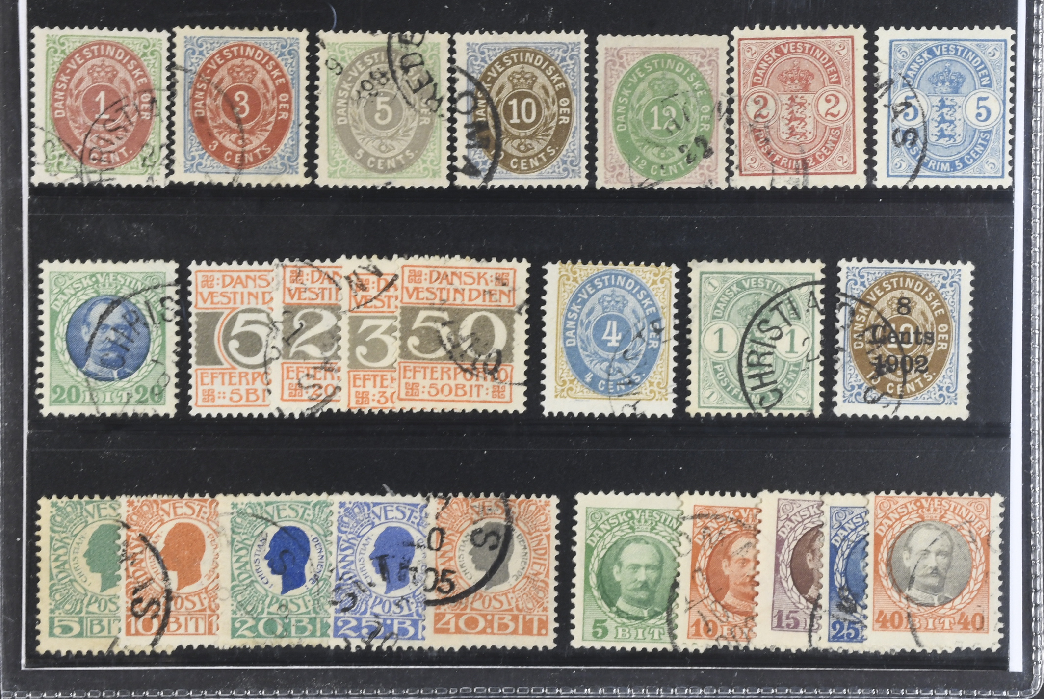 Danish West Indies. Used 1873–1916. All different, e.g. F 5–6, 8, 10–11, 20–21, 44, L8. Mostly good quality. F SEK 5574 (25)