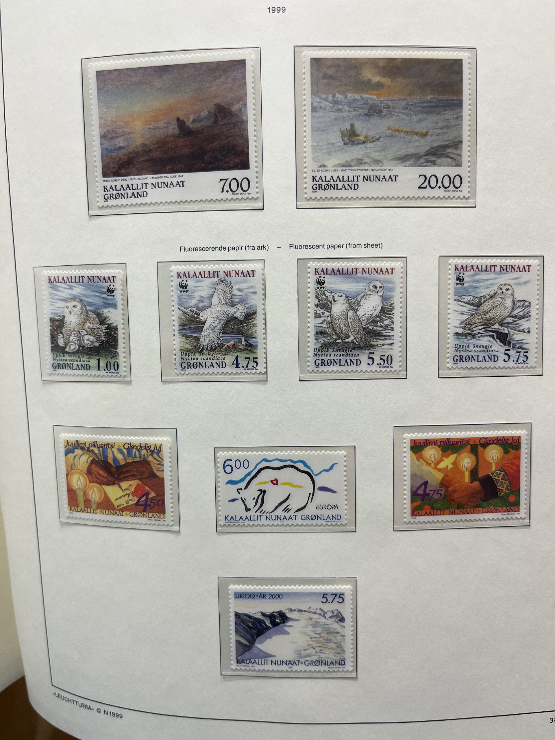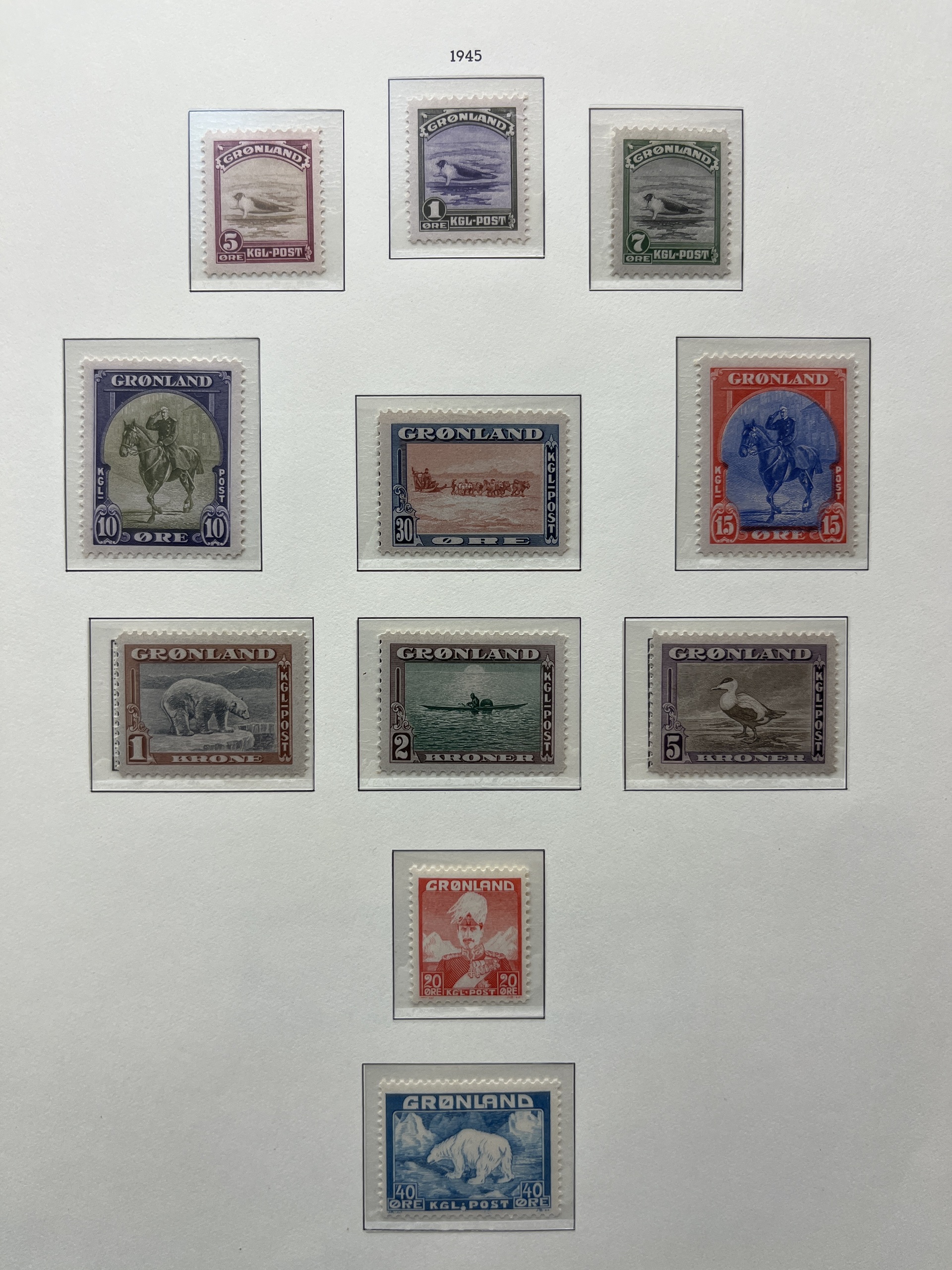 Greenland. Collection ★★ 1935–2002 in Leuchtturm album with stamp mounts. Only some missing, blocks and overprint 1945.