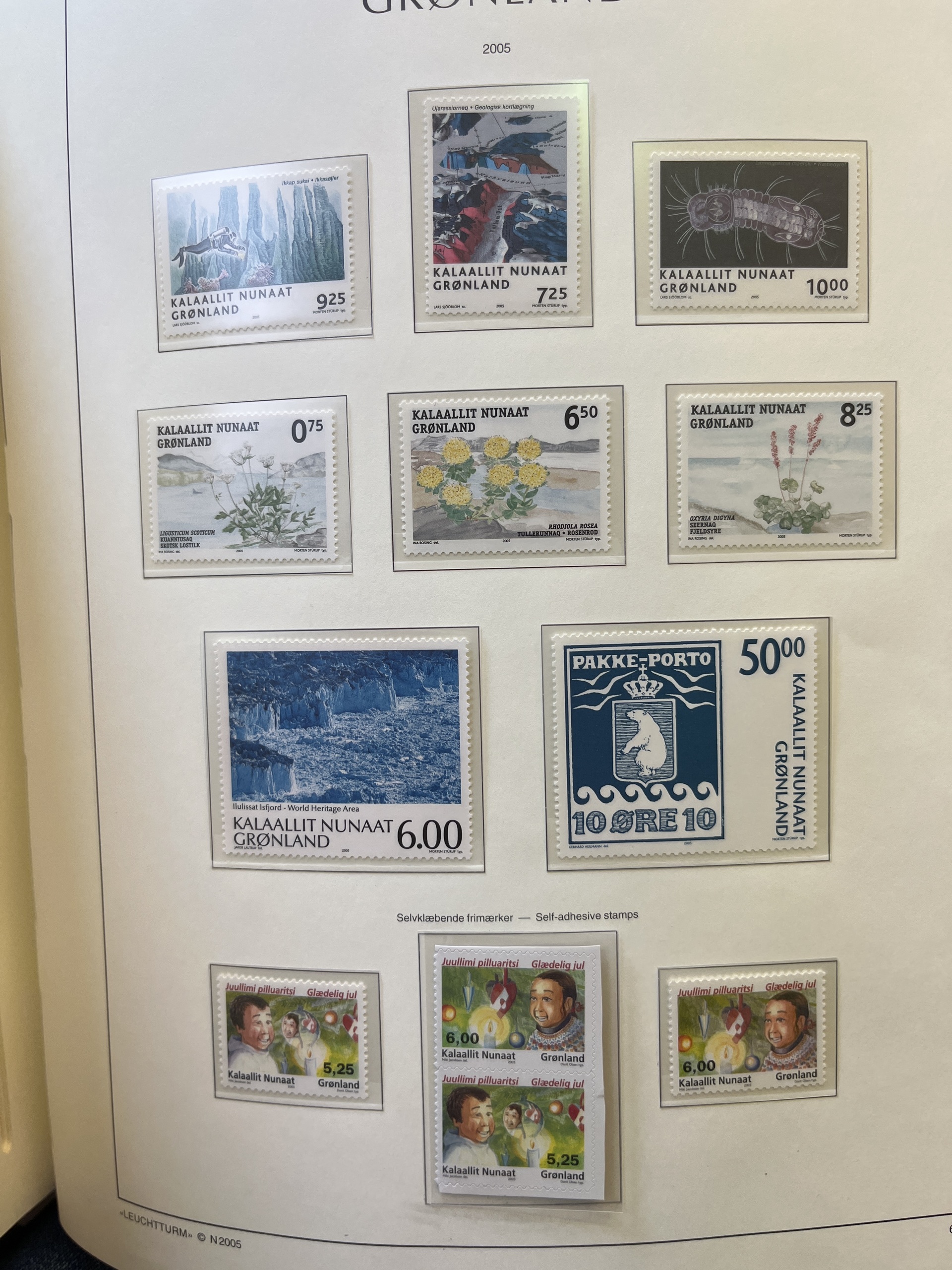 Greenland. Collection ★★ 1935– in Leuchtturm album without stamp mounts. In Leuchtturm album without stamp mounts, compl. 1950–2005 and many booklets and blocks in stockbook. Fine quality.