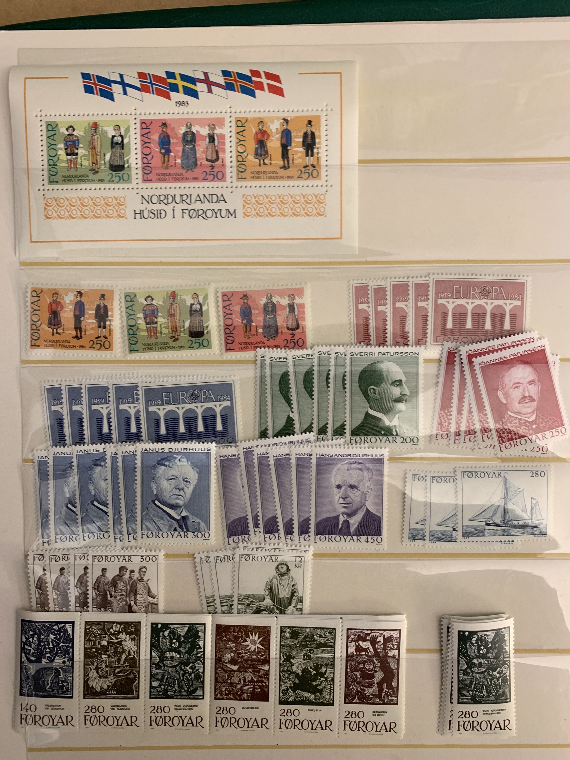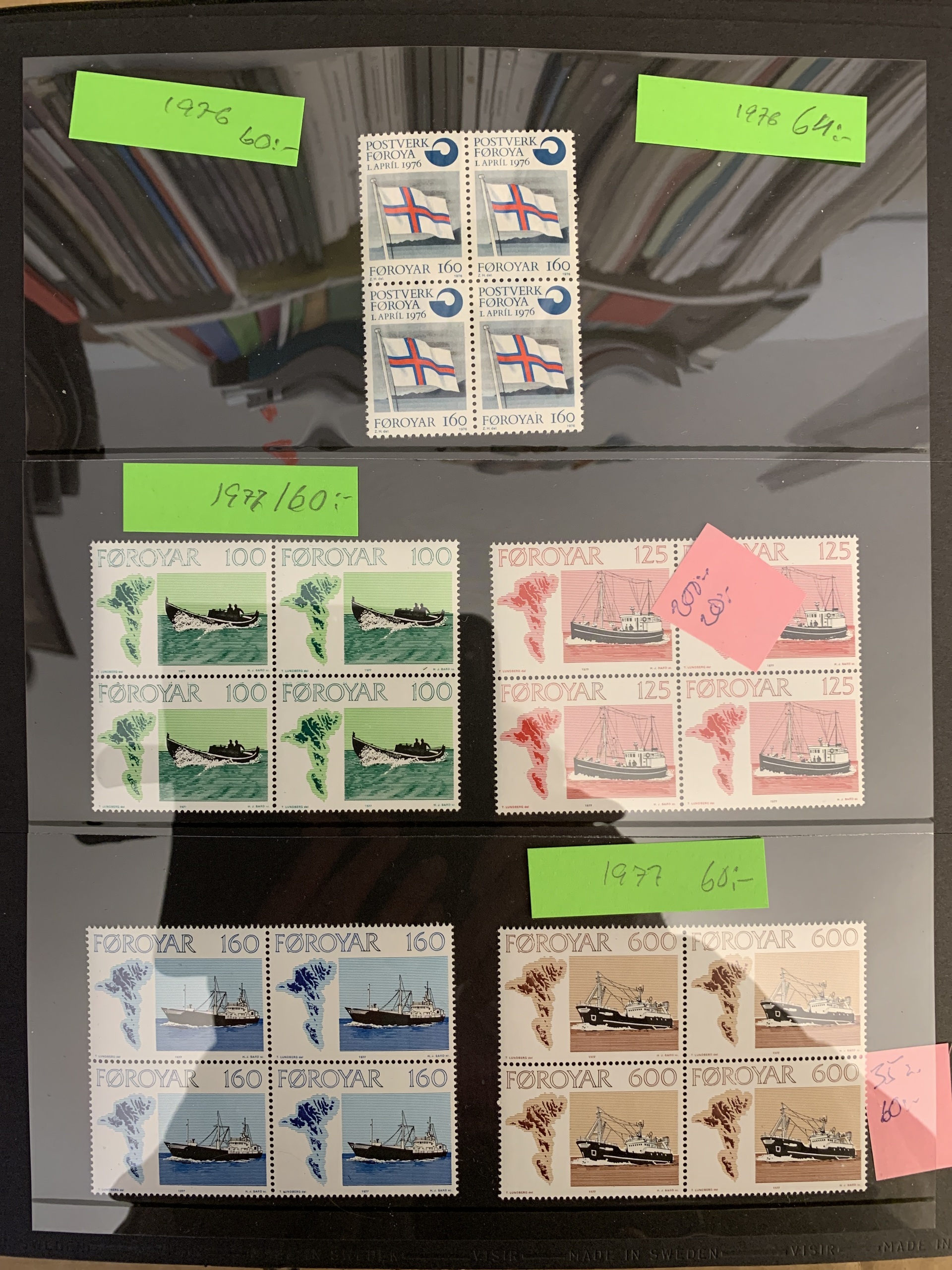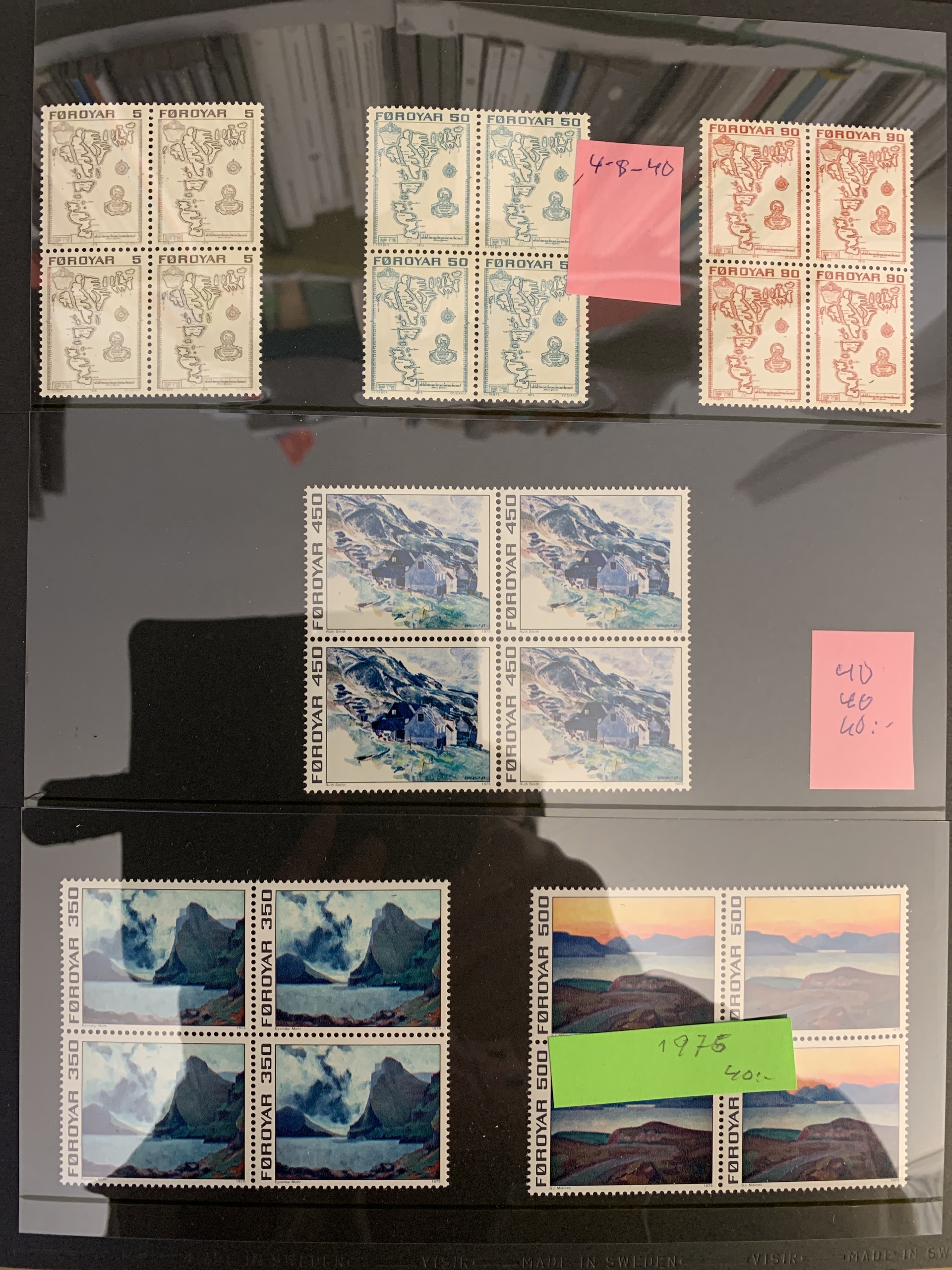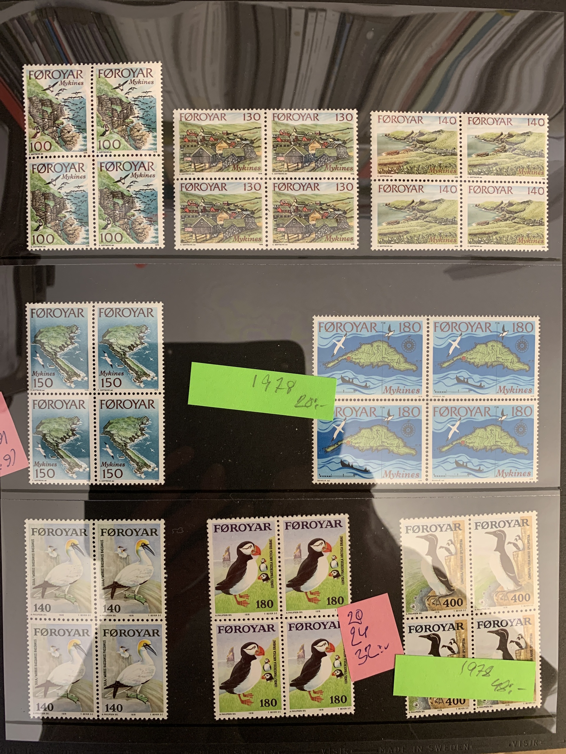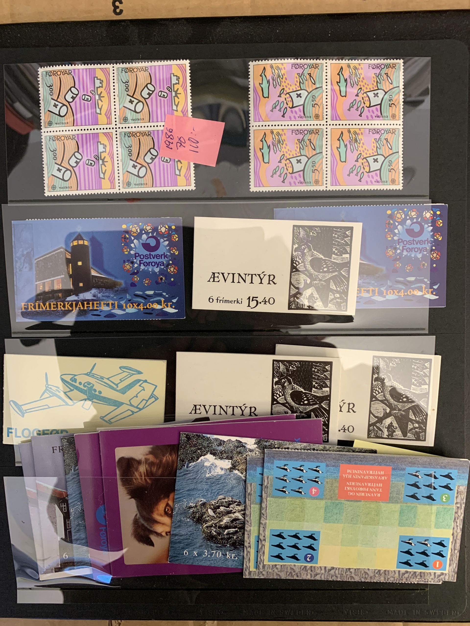 The Faroes. Collection/accumulation ★★ 1975–forwards in two visir albums. Also several blocks of four from 1984–2005 and some booklets. Please see a selection of scans at www.philea.se.