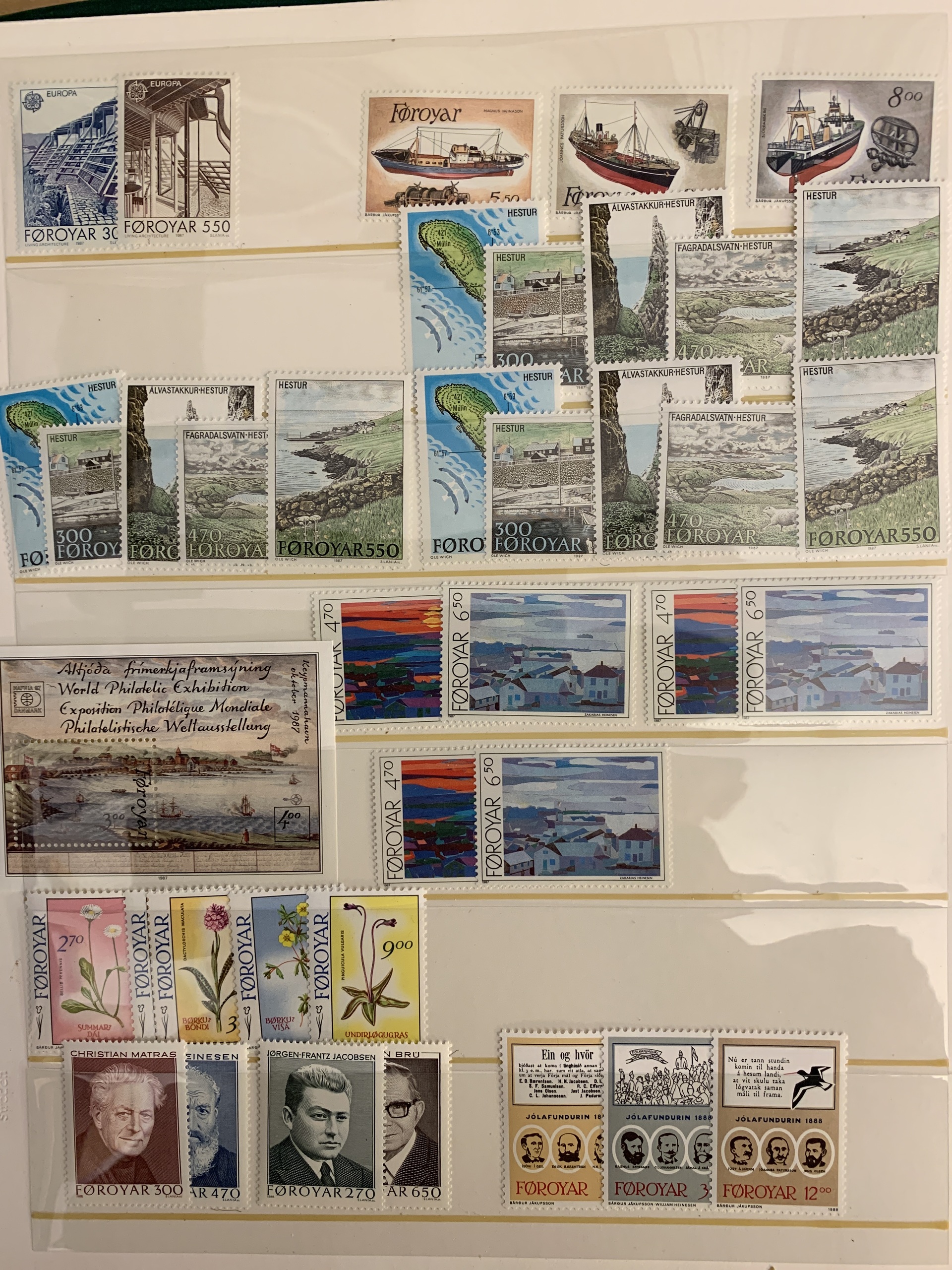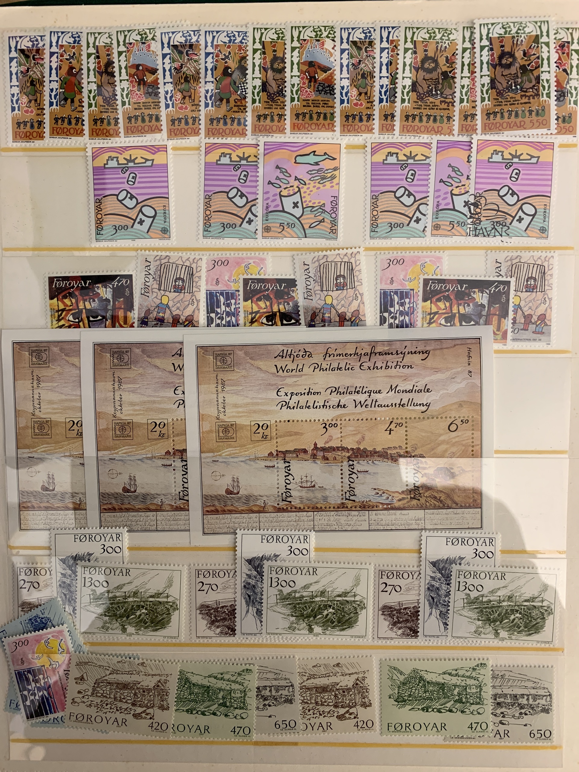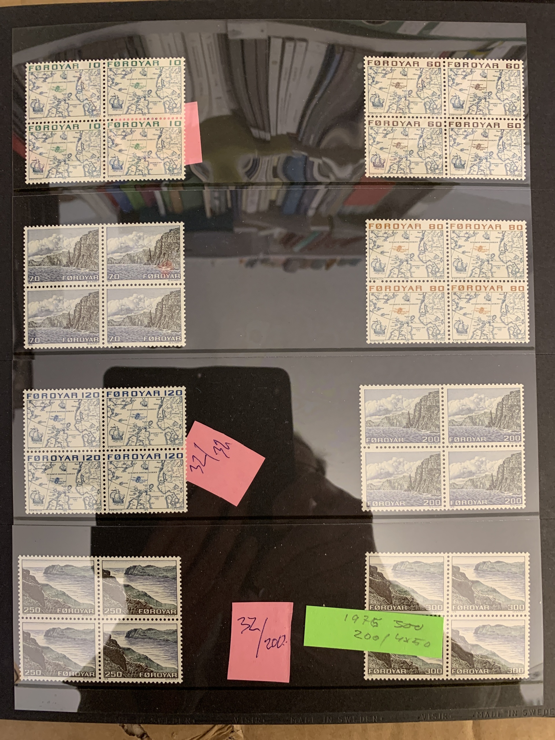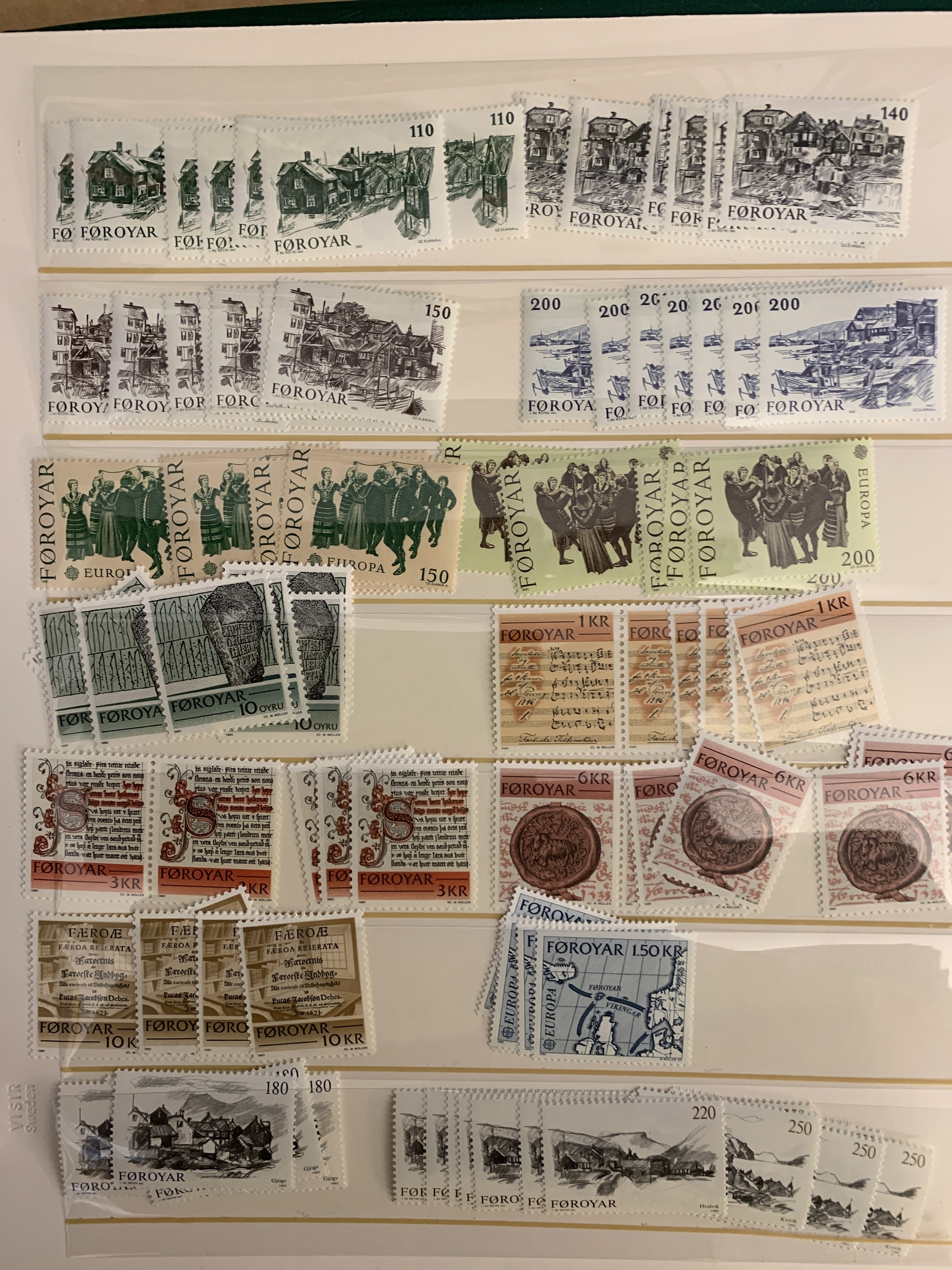 The Faroes. Collection/accumulation ★★ 1975–forwards in two visir albums. Also several blocks of four from 1984–2005 and some booklets. Please see a selection of scans at www.philea.se.