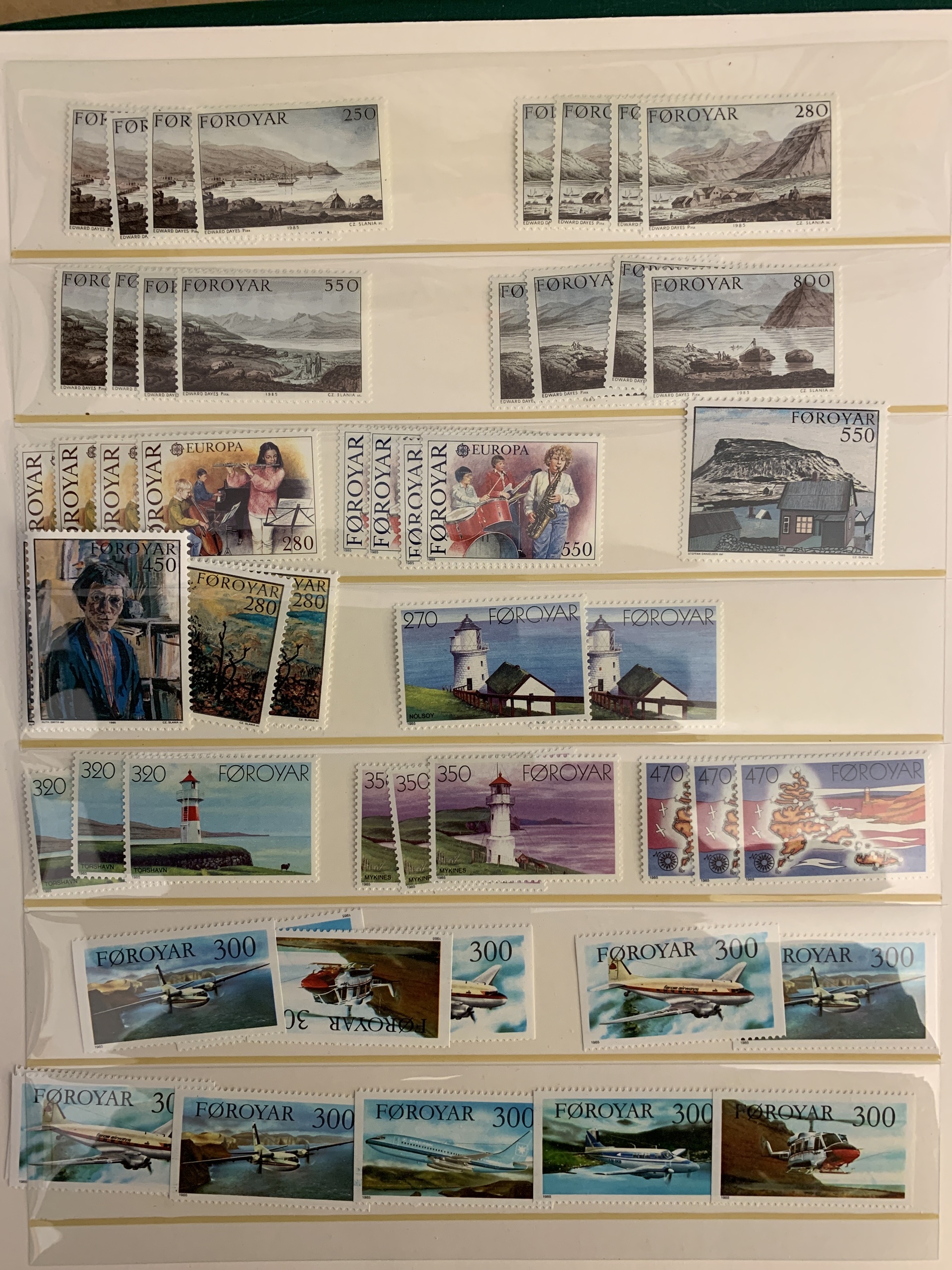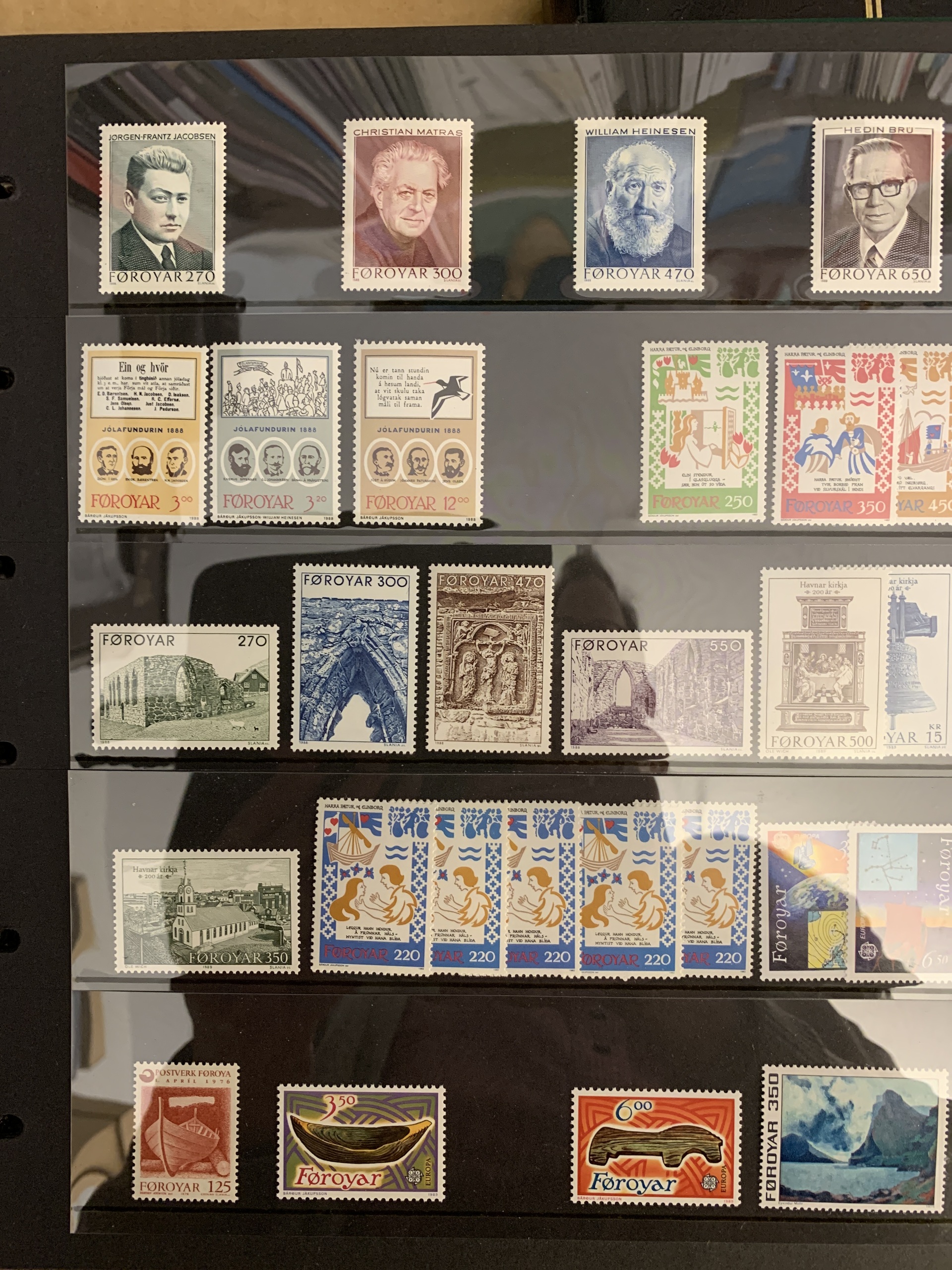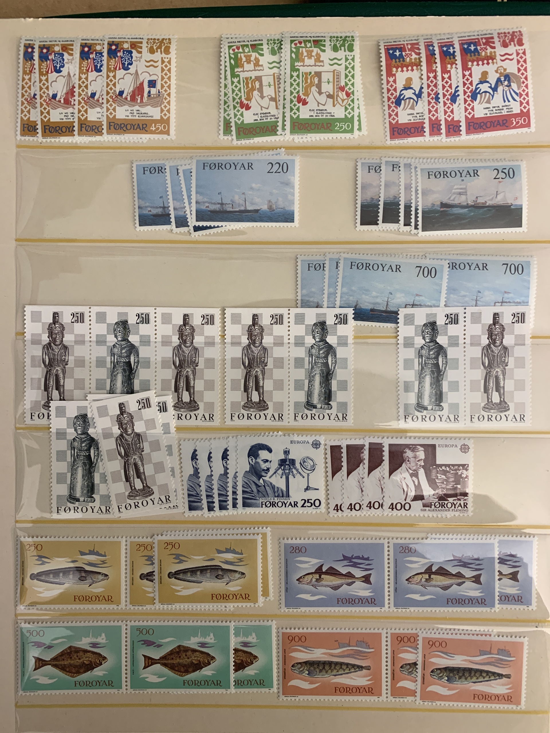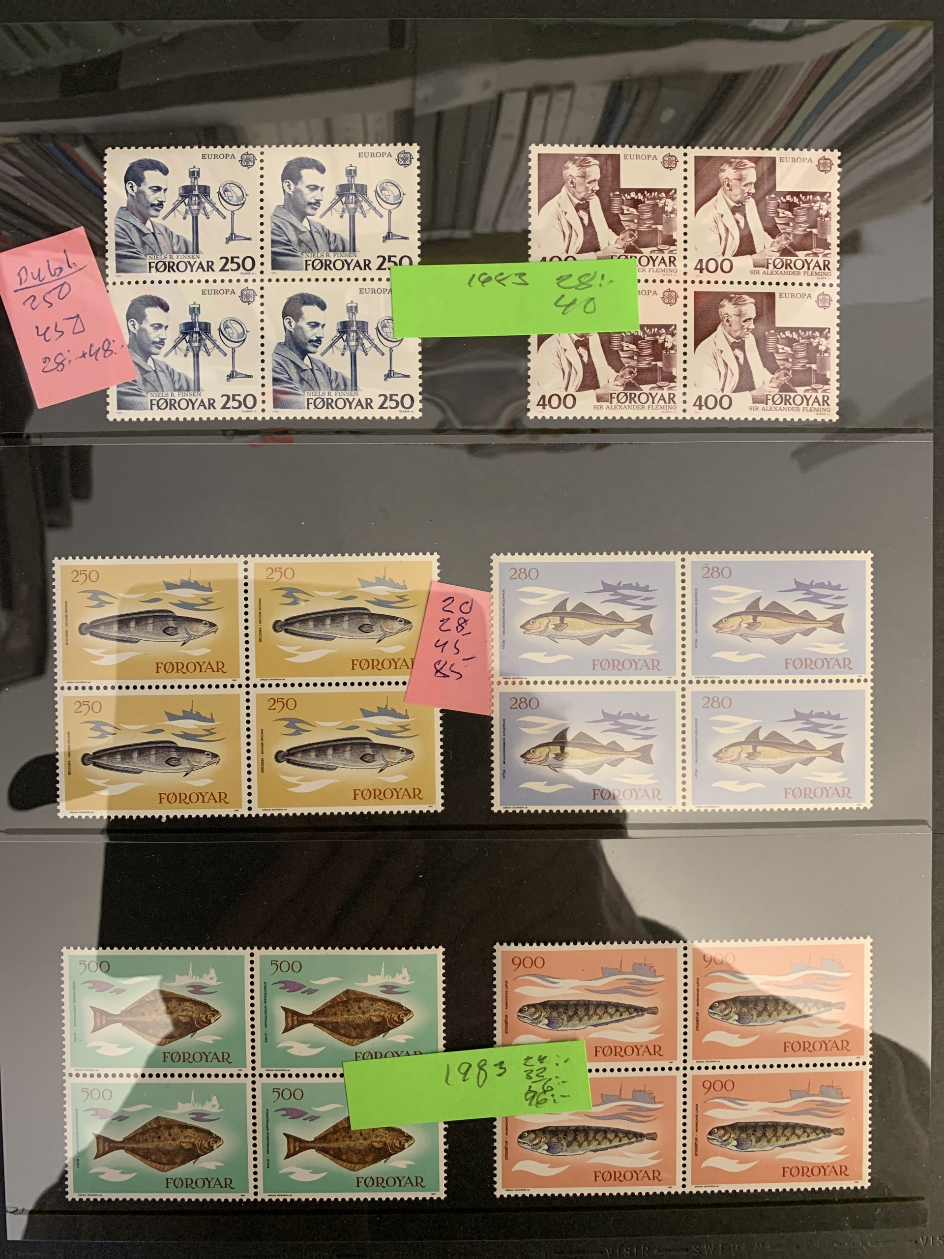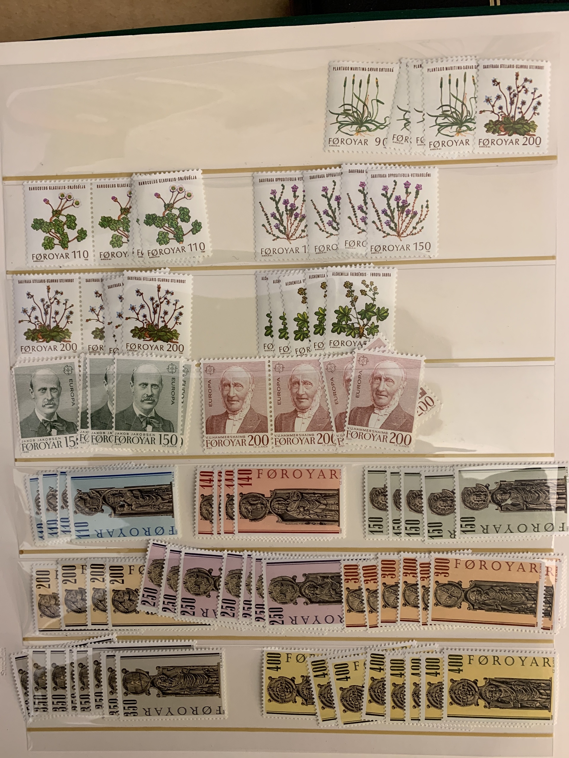 The Faroes. Collection/accumulation ★★ 1975–forwards in two visir albums. Also several blocks of four from 1984–2005 and some booklets. Please see a selection of scans at www.philea.se.