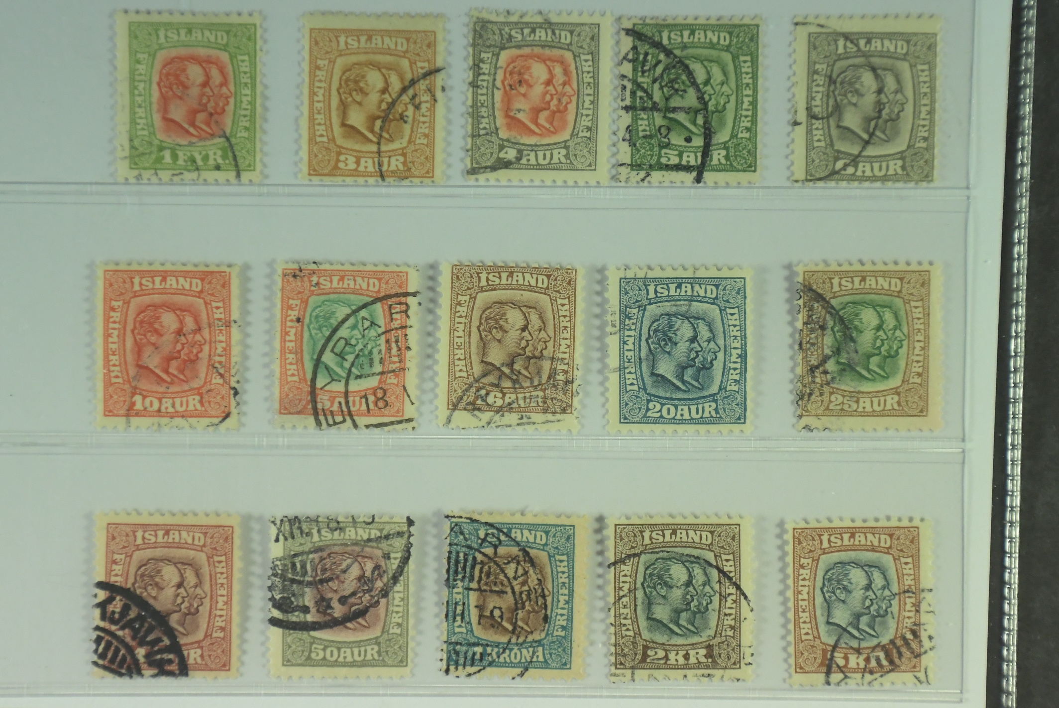 Iceland. Facit 76–90 used, 1907 Two Kings SET watermark crown (15). SEK 4800