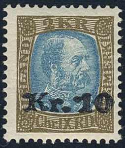 Iceland. Facit 103 ★★, 1929 Surcharge on Christian IX 10 Kr / 2 Kr blue/olive-brown. Good centering. SEK 2500