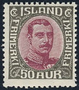 Iceland. Facit 141 ★★, 1920 King Christian X 50 aur lilac/brown-grey thin, broken lines. Good centering. SEK 8500