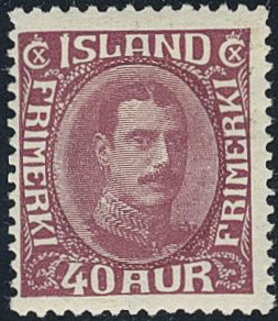 Iceland. Facit 154 ★, 1932 King Christian X 40 aur lilac close, unbroken lines. SEK 2000