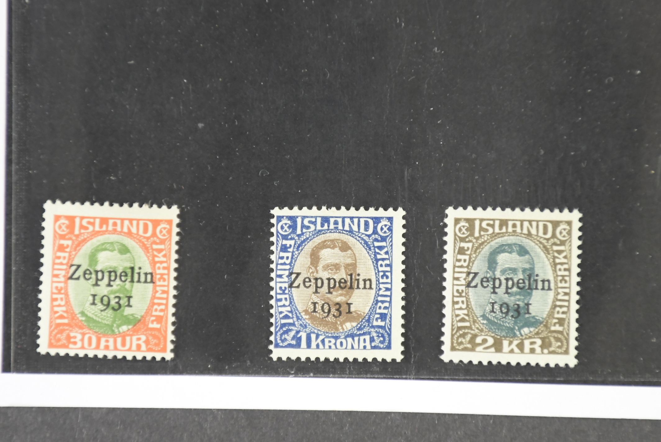 Iceland. Facit 162–64 ★★, 1931 "Zeppelin 1931" overprint SET (3). SEK 2500