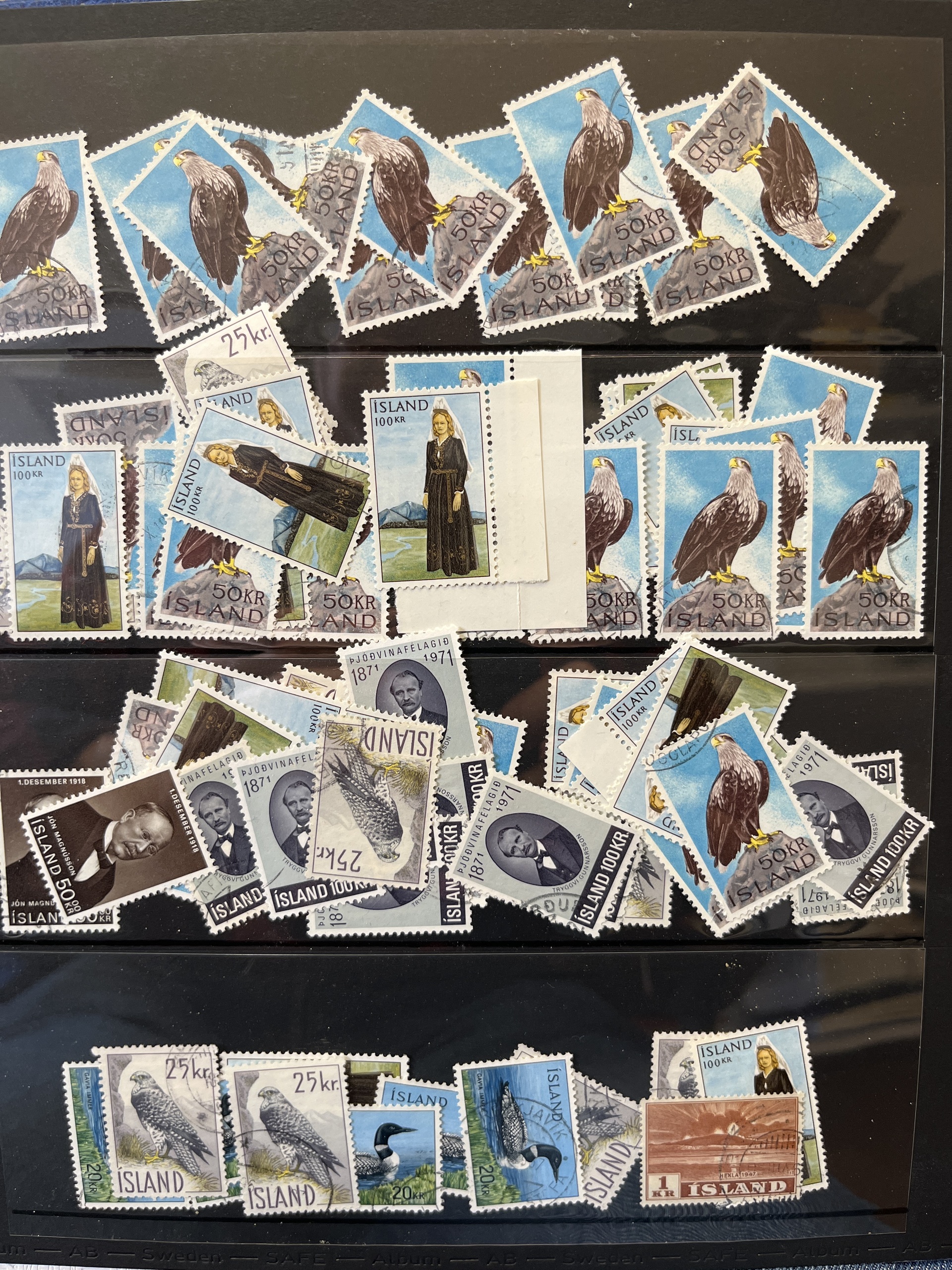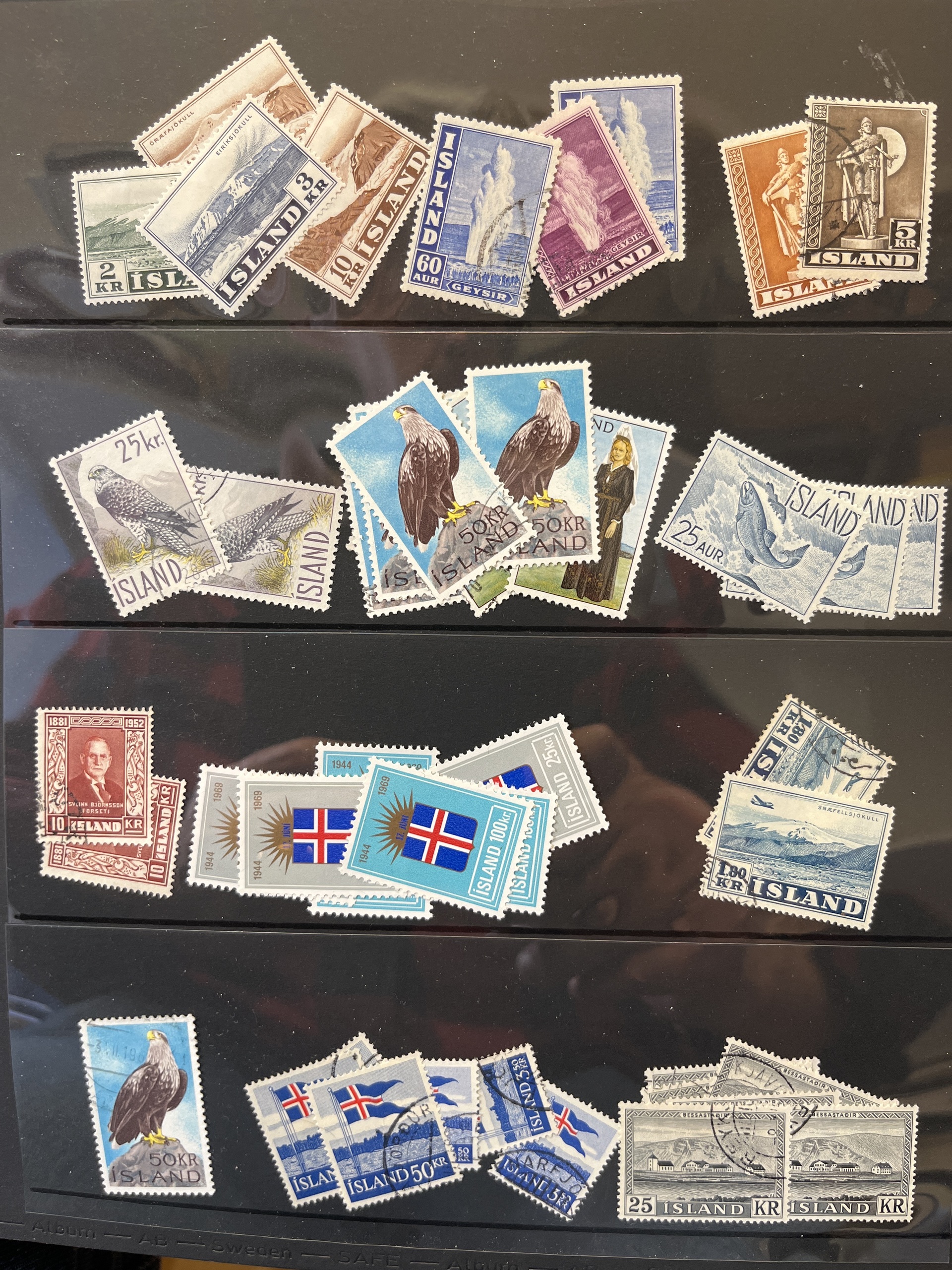 Iceland. Accumulation mostly used ca. 1930–1985 in visir album with 35 leaves. Please see a selection of scans at www.philea.se.