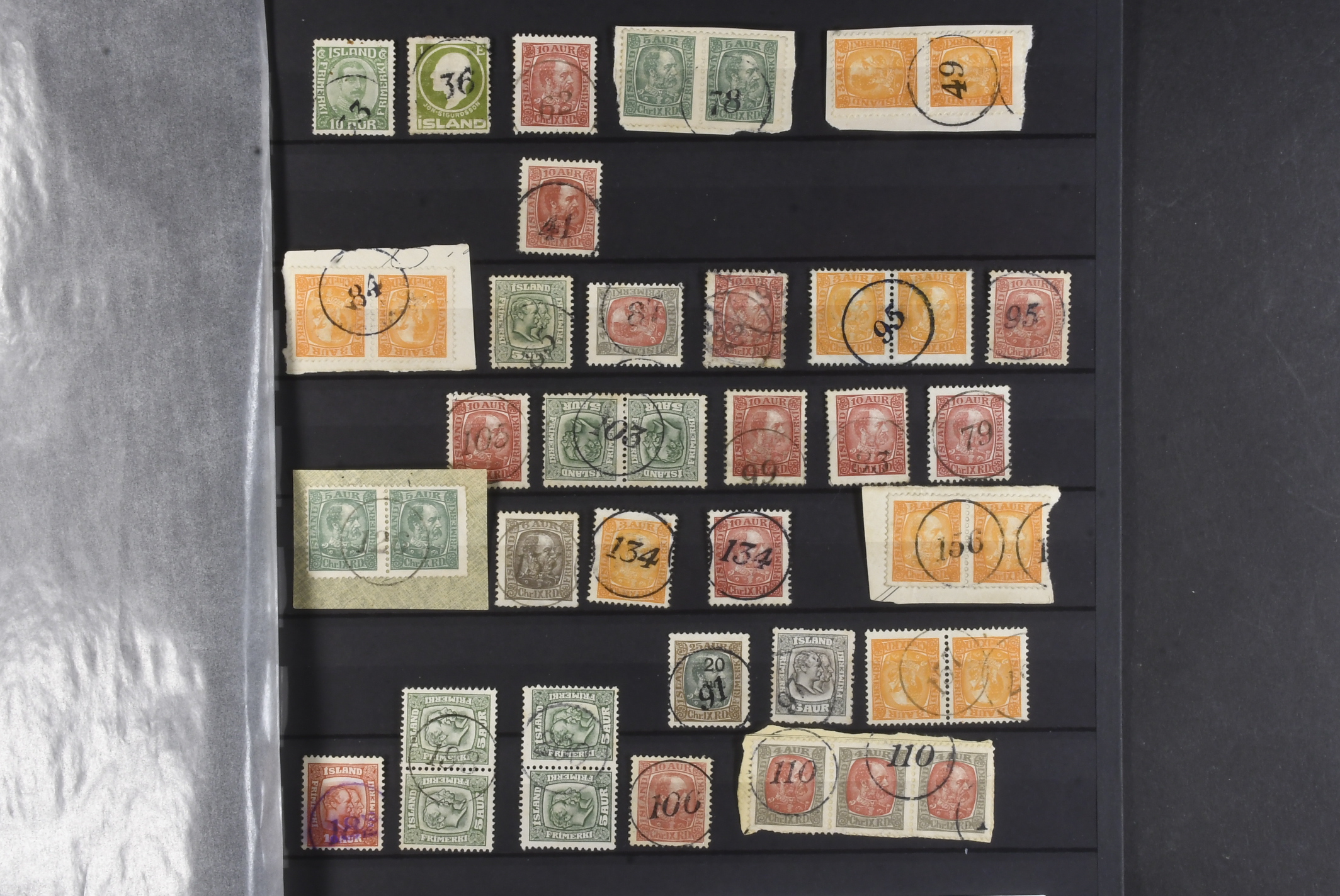 Iceland. Used. Small lot of 42 numeral cancels, some in pairs and strip of three.