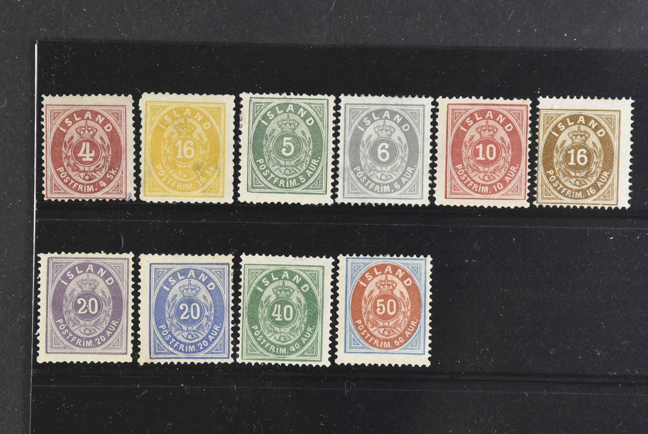 Iceland. ★ 1873–1901. All different, e.g. F 2, 7, 9, 11, 12 (*), 13–14, 15 (*), 16, 18. Mostly good quality. F SEK 10200 (10)