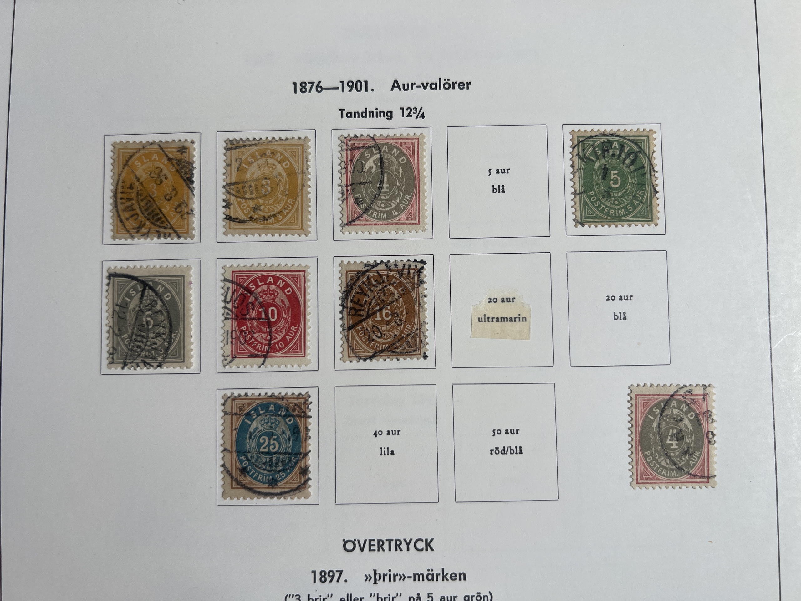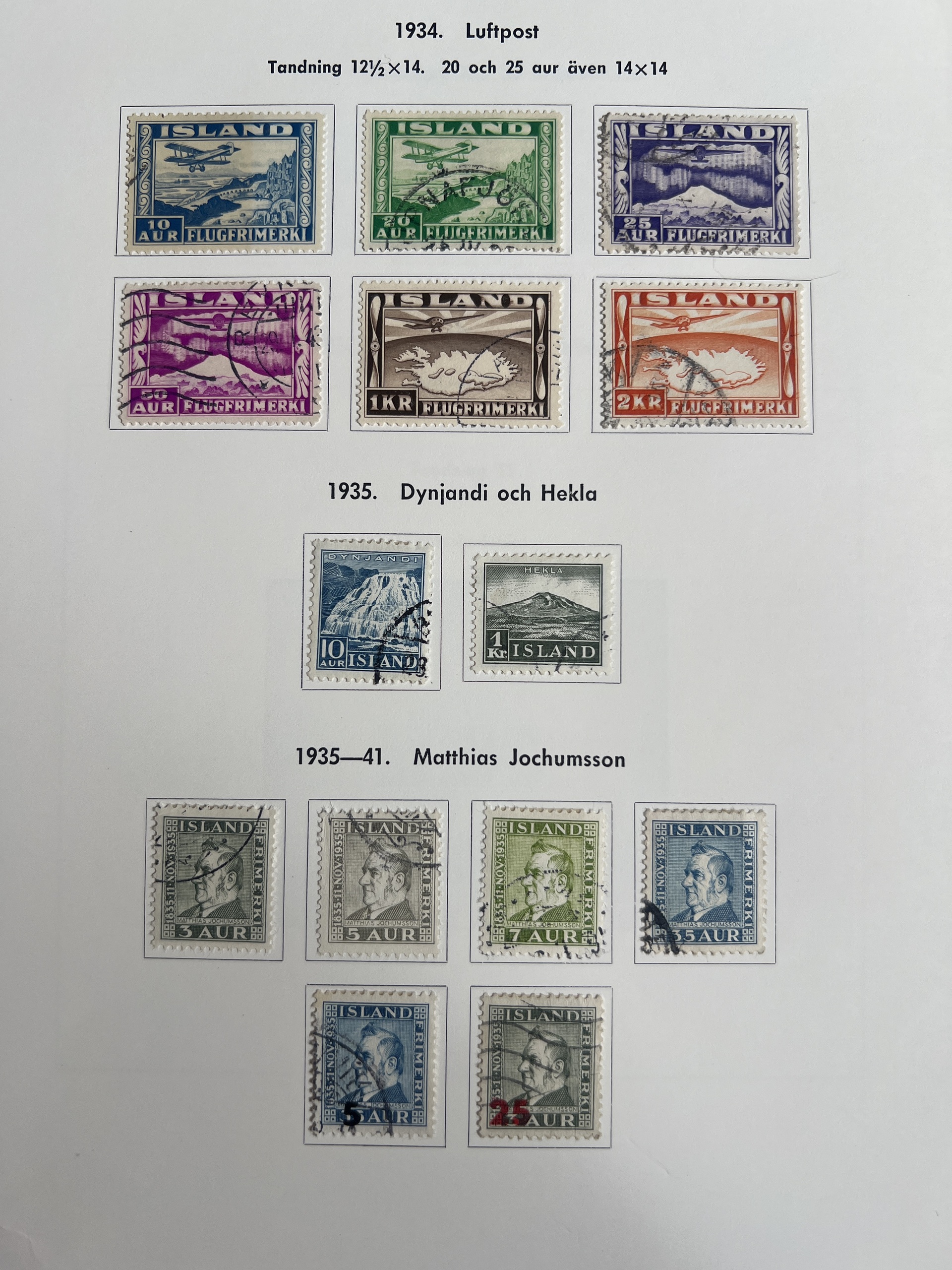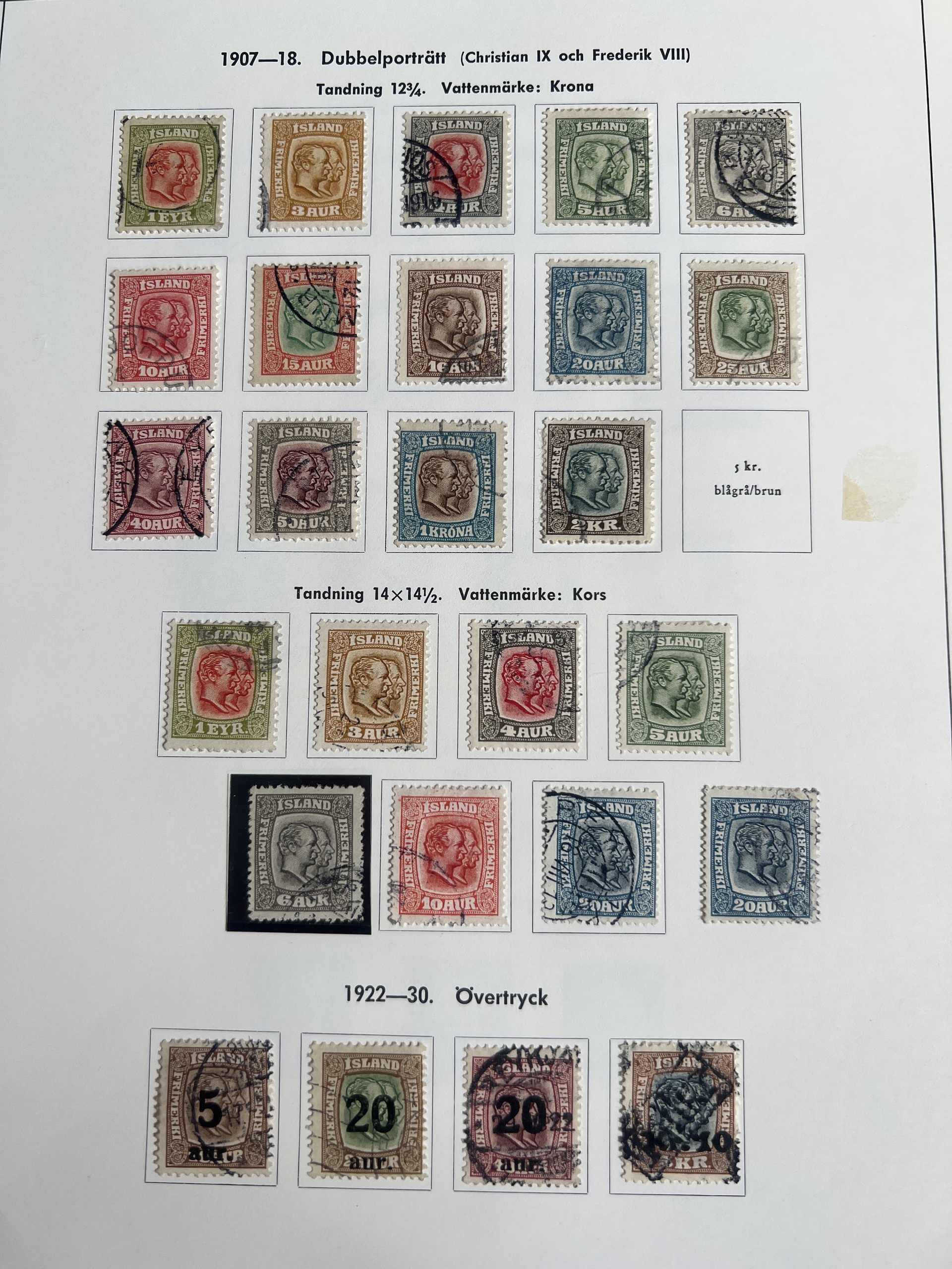Iceland. Collection used 1876–1956 on leaves. Aur values some Kings and some other interesting stamps incl back of the book. Please see a selection of scans at www.philea.se. Mostly fine quality. (250+)