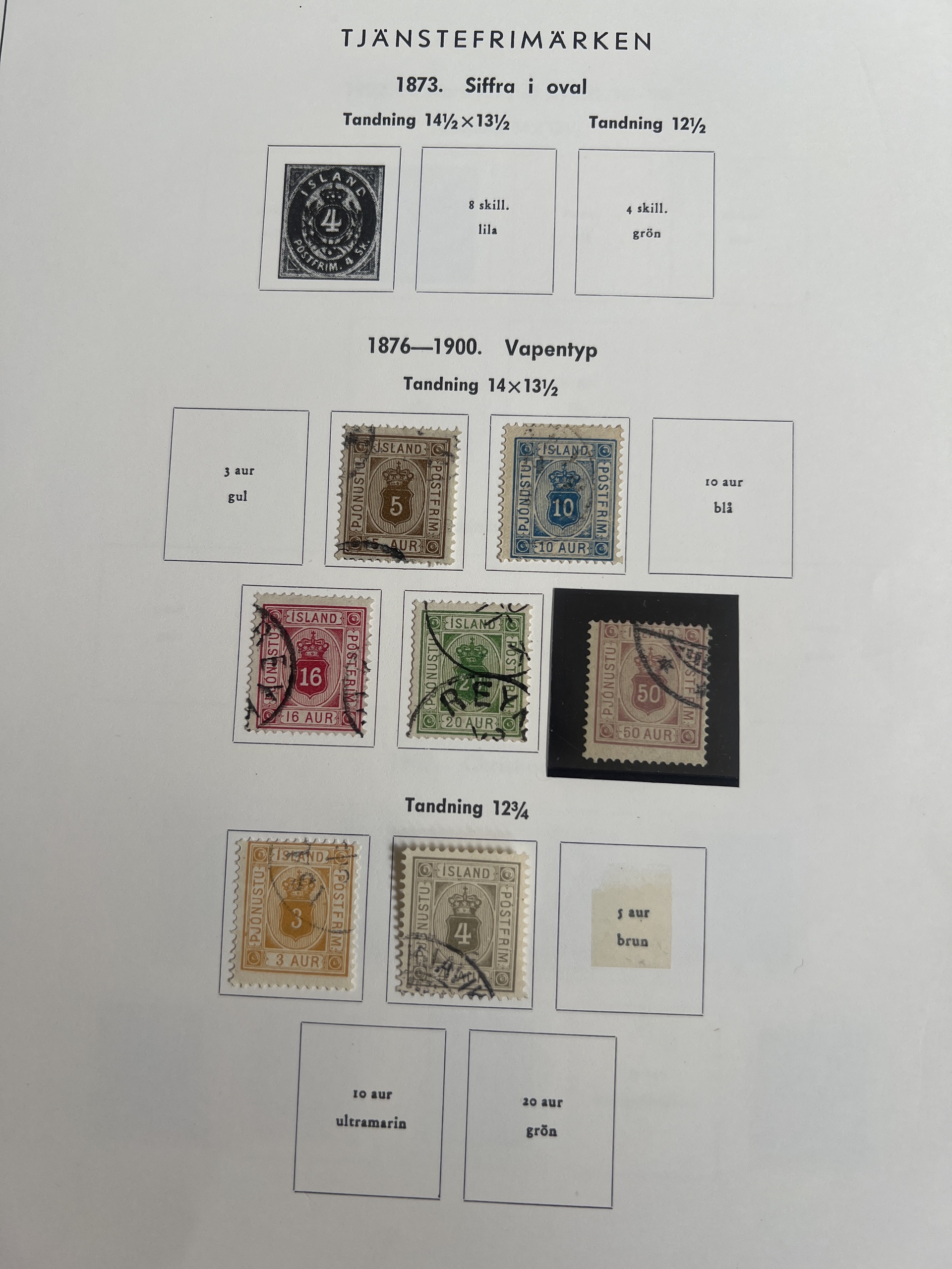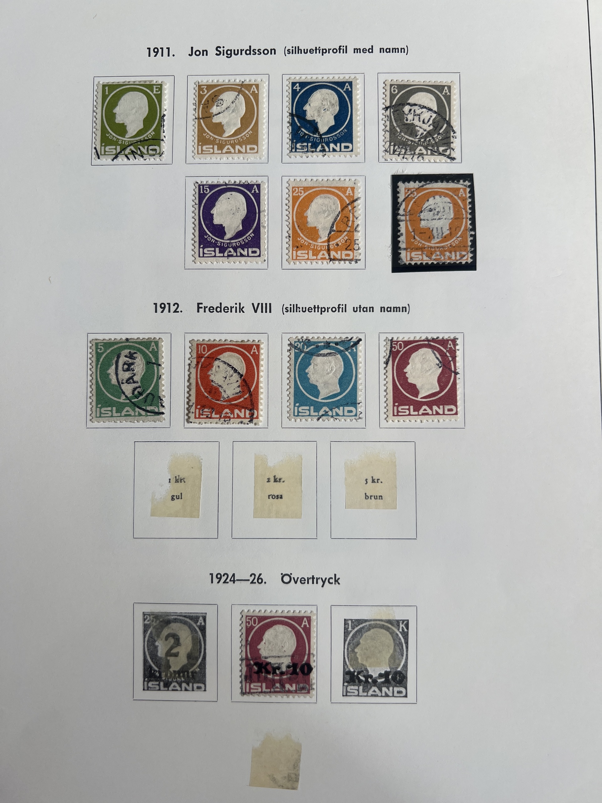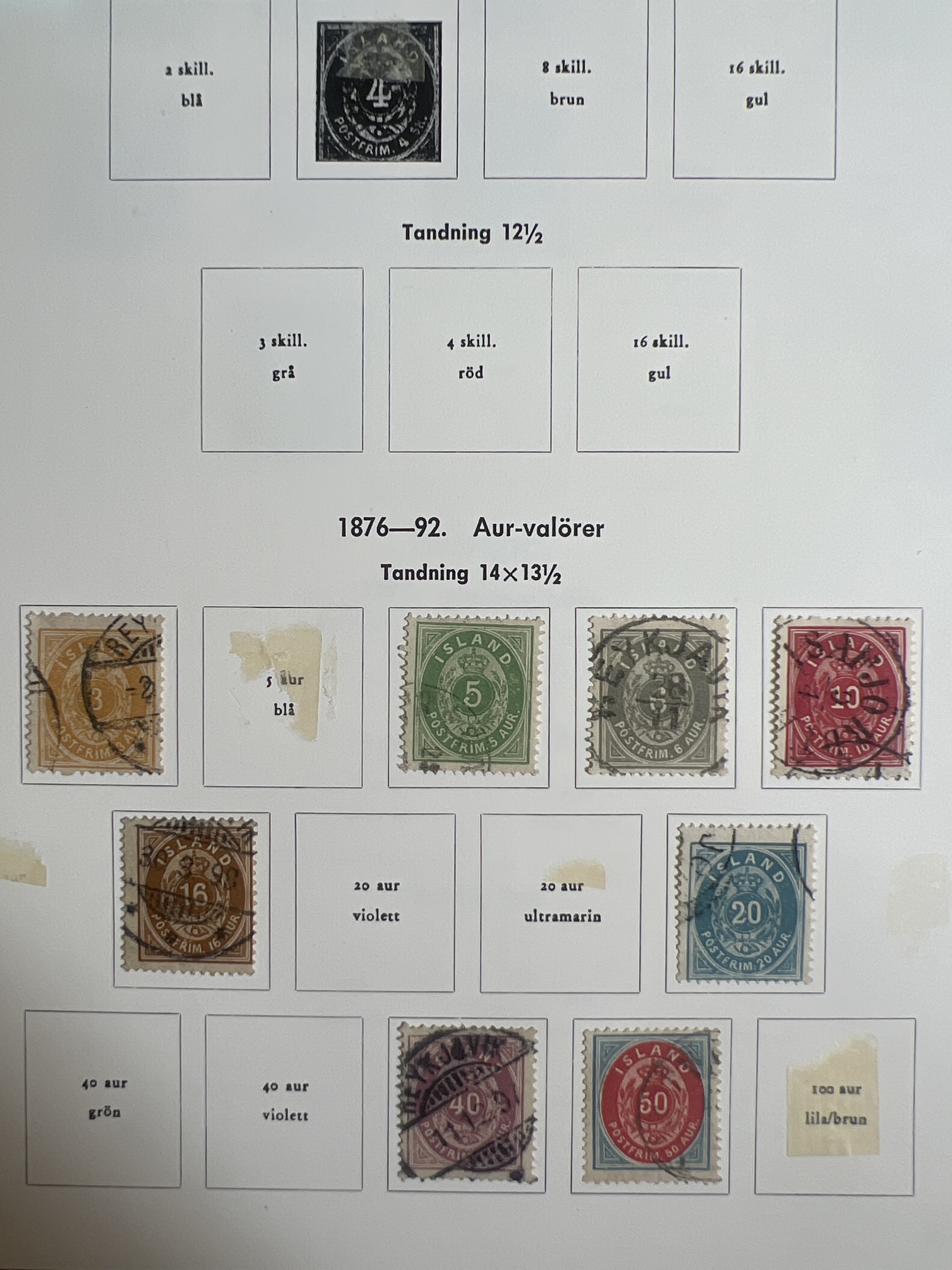 Iceland. Collection used 1876–1956 on leaves. Aur values some Kings and some other interesting stamps incl back of the book. Please see a selection of scans at www.philea.se. Mostly fine quality. (250+)
