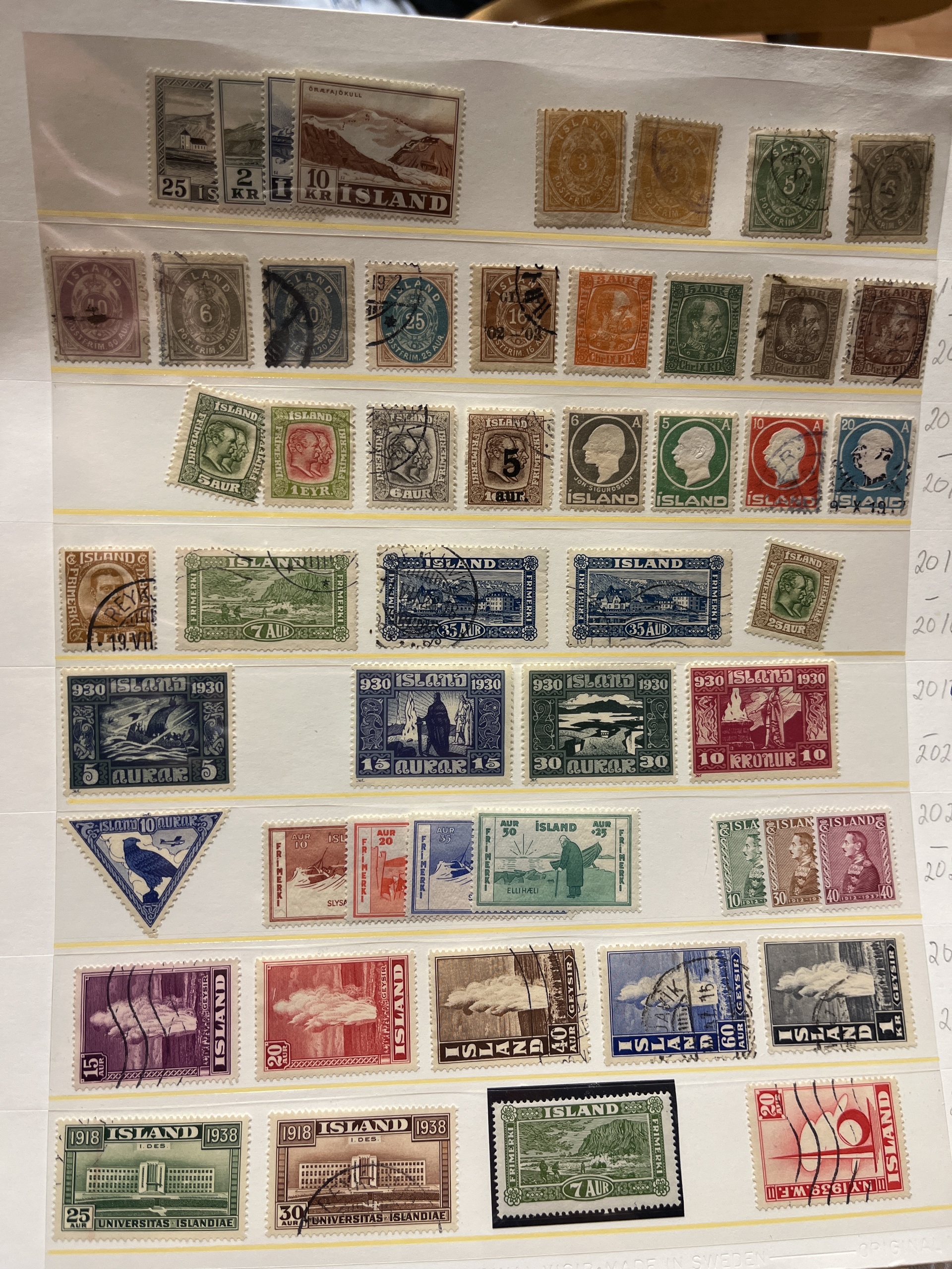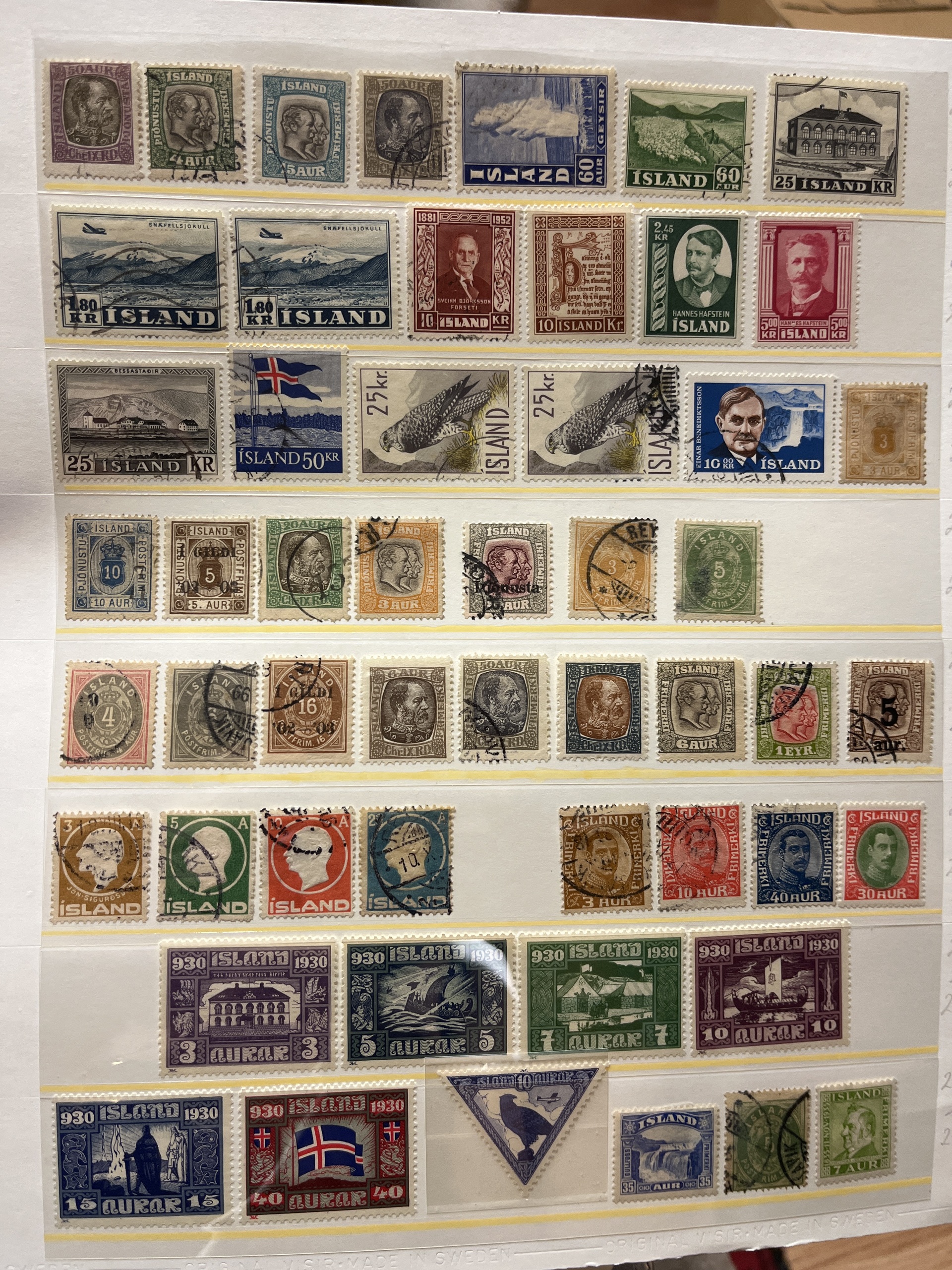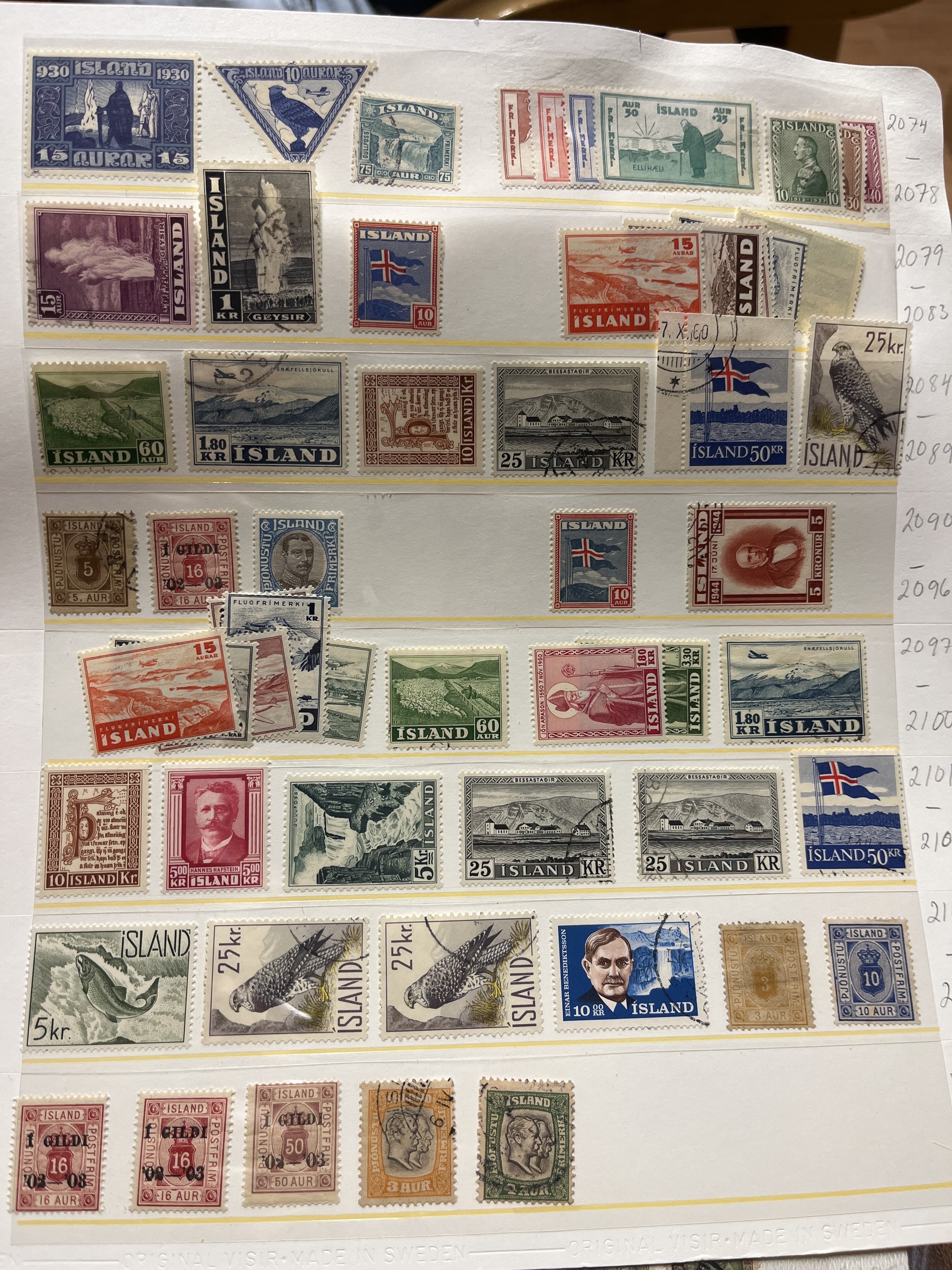 Iceland. Accumulation ★★/★/⊙ 1876–1960 on seven visir leaves. With several Aur values, and some other better stamps. Please see a selection of scans at www.philea.se. Somewhat mixed quality. (250+)