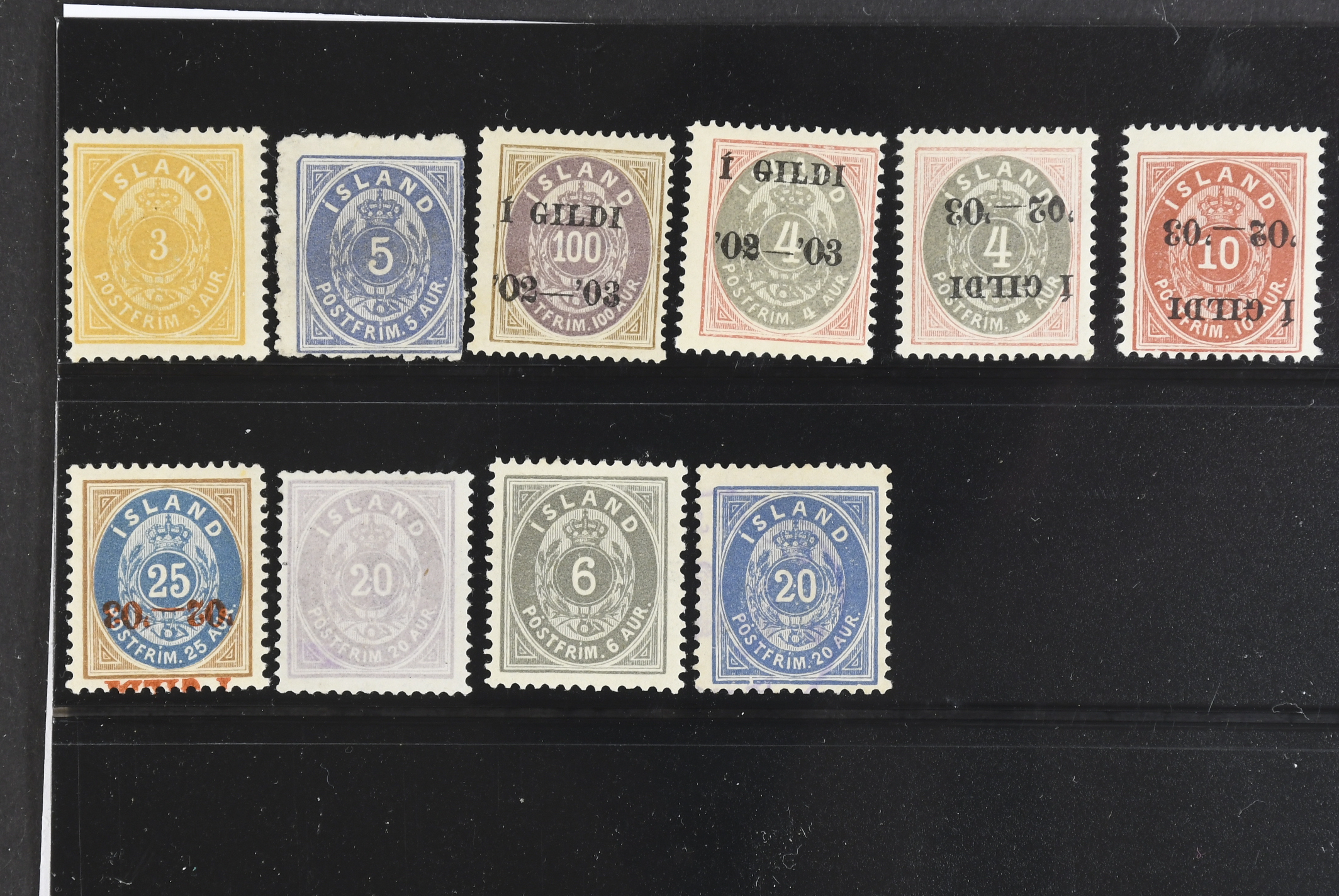 Iceland. ★ 1876–1901. All different, e.g. F 20, 23 (*), 44, 50, 50v1, 53v2, 62v1. Mostly good quality. F SEK 6350 (10)