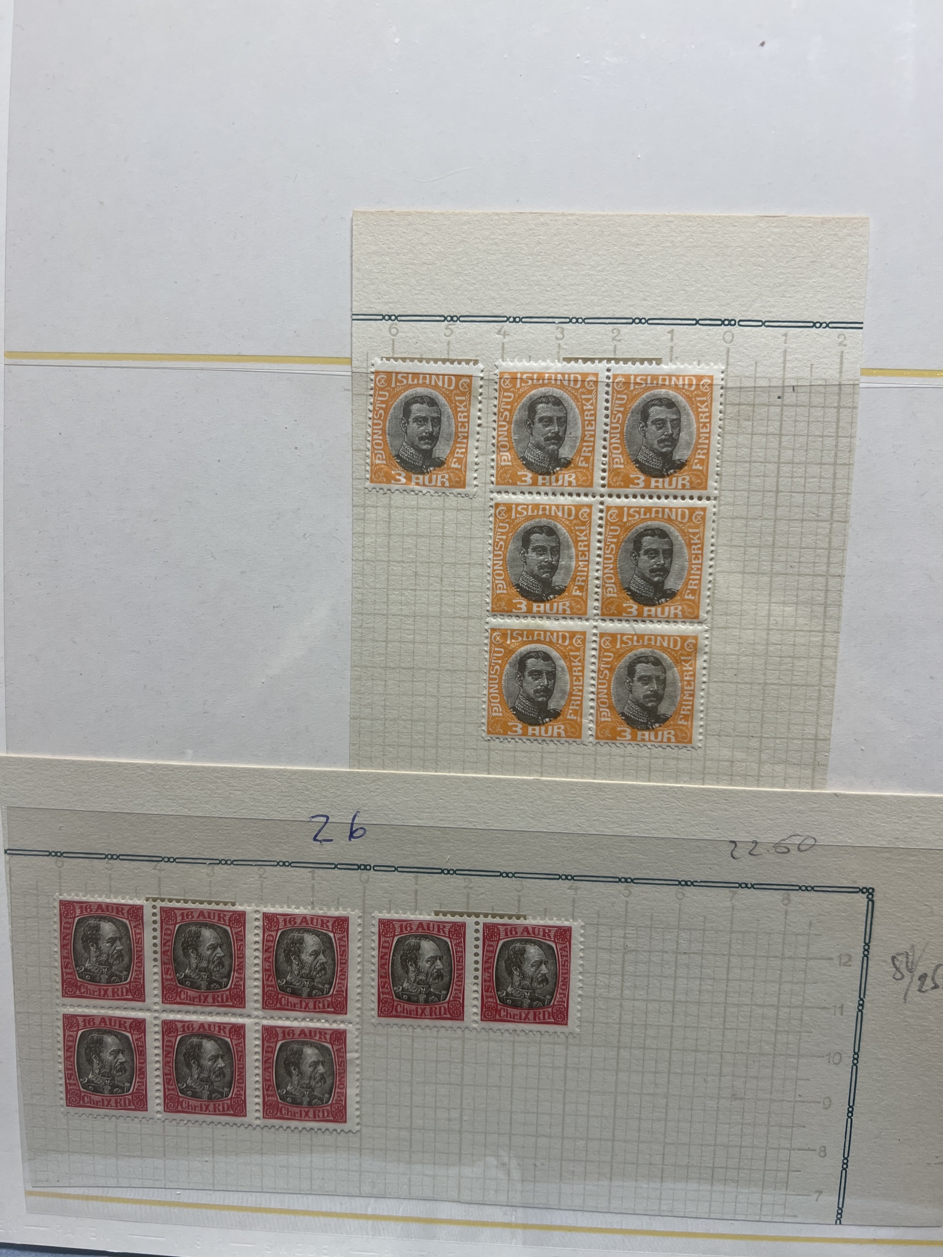 Iceland. Lot ★ 1902–1920 on leaves. Kings in multiples incl. some officials. Good quality. (160)